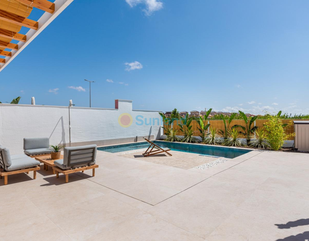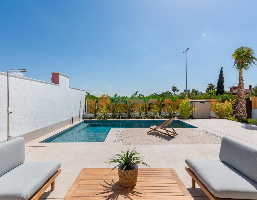 VILLAS DE OBRA NUEVA EN BENIJOFAR Residencial de obra nueva de villas en Benijofar. Villas de obra nueva de estilo moderno con cocina americana y sala de estar, 3 dormitorios, 2 baños, parcela privada con terraza, plaza de aparcamiento y piscina privada, jardín y un solarium maravilloso con vistas increíbles. Benijofar es un bonito pueblo con una encantadora iglesia y una atractiva plaza situada en el interior de la Costa Blanca Sur, cerca de los centros turísticos de Guardamar del Segura y Torrevieja. Benijofar es también un lugar popular para alojarse durante las vacaciones de verano, ya que está lo suficientemente cerca de los centros turísticos costeros, pero lo suficientemente tranquilo como para ser capaz de alejarse de todo. Hay varios campos de golf cerca, así como parques acuáticos en las cercanas Rojales y Torrevieja. Las playas más cercanas y mejores de Benijofar están a unos quince minutos en coche y son algunas de las mejores playas de la Costa Blanca Sur, en Guardamar del Segura y Torrevieja. También hay servicios regulares de autobús desde Benijofar a Guardamar del Segura y Torrevieja con fácil acceso a las playas. A 20 minutos en coche del aeropuerto de Alicante con vuelos regulares a toda Europa.