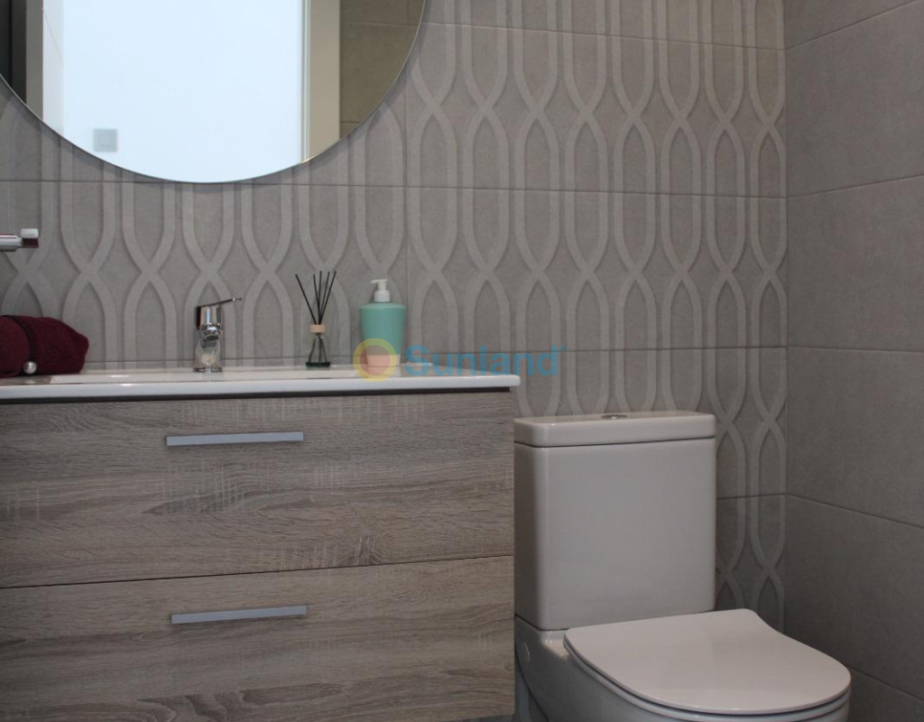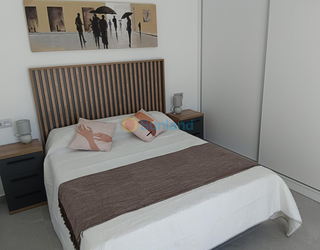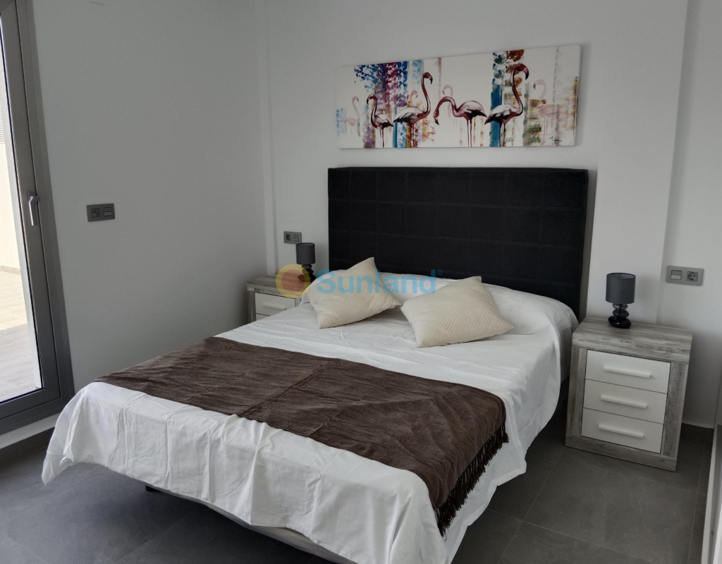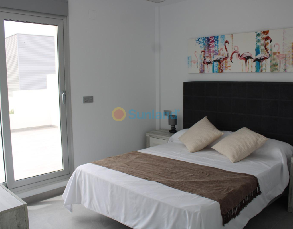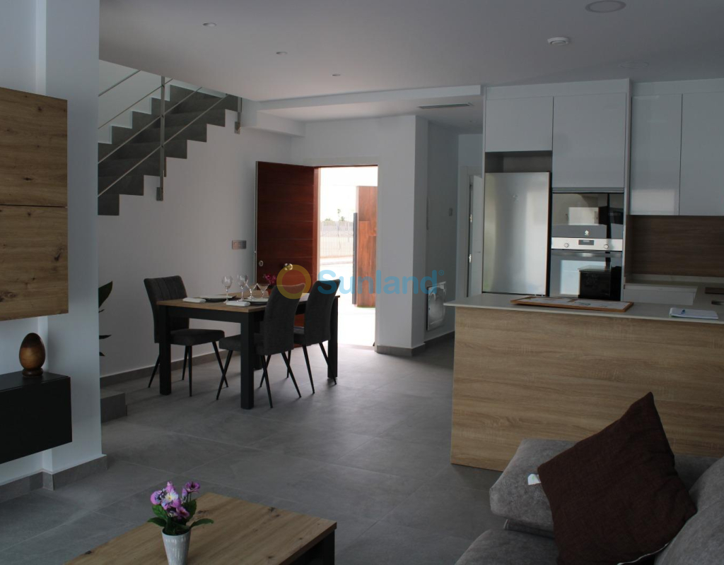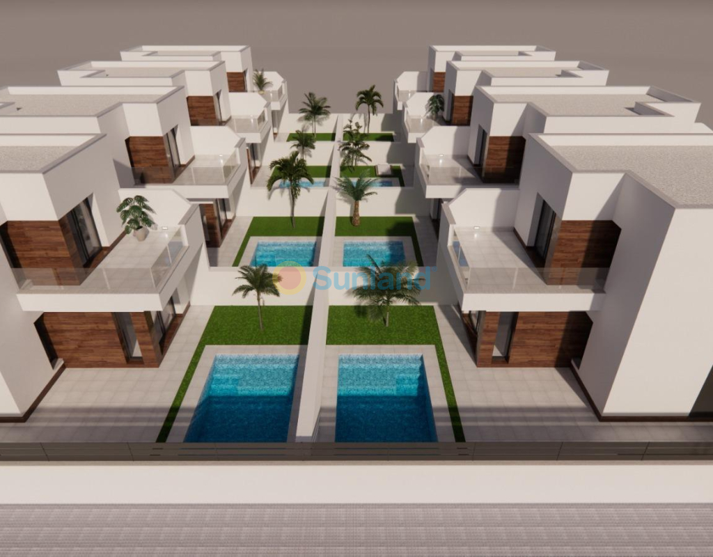 VILLAS DE OBRA NUEVA EN SAN FULGENCIO Villas independientes de nueva construcción situados en la localidad de San Fulgencio. Villas de 130 m2 construidos en parcelas de 180 m2, dispone de 3 dormitorios, 3 baños completos, 1 aseo, cocina americana con el salón-comedor, armarios empotrados, terrazas, solarium privado, jardín con piscina privada y plaza de parking. Se encuentra a 300 metros del centro del pueblo con todos los servicios, tiendas, restaurantes, ayuntamiento, banco. El pueblo de San Fulgencio está situado a unos 30 minutos del aeropuerto de Alicante-Elche, a 6km del campo de golf más cercano y a sólo 7km de la playa más cercana.