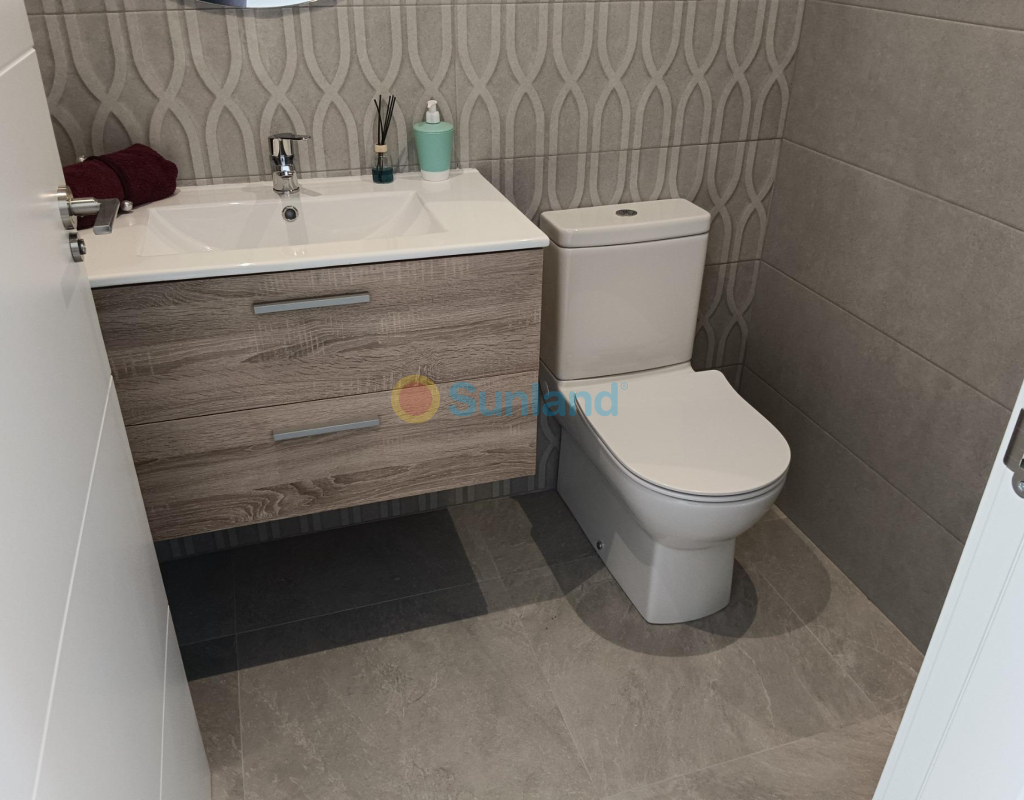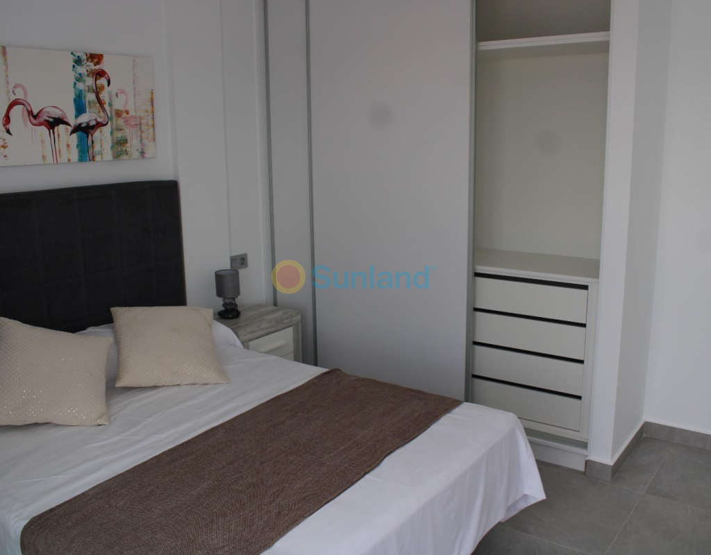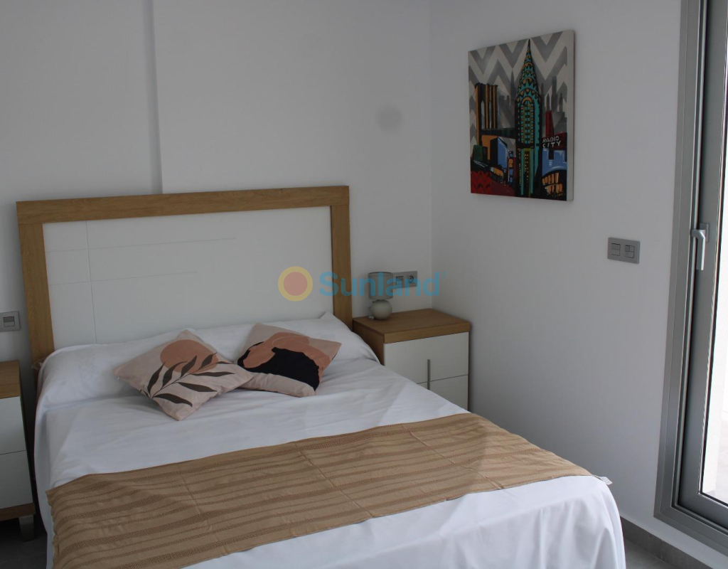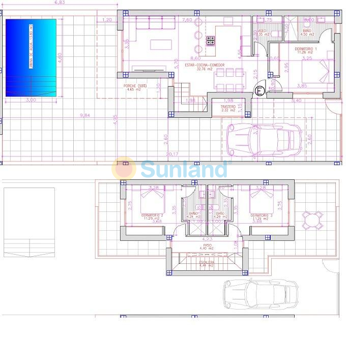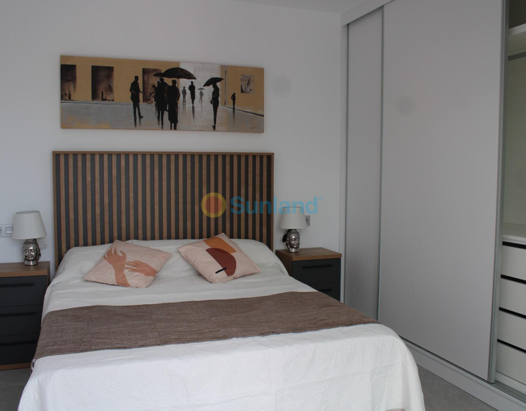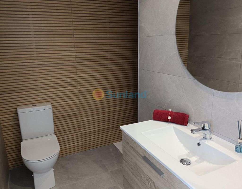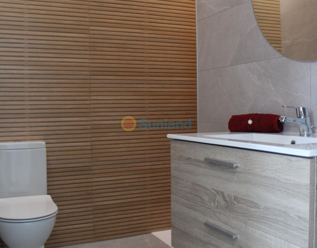 VILLAS DE OBRA NUEVA EN SAN FULGENCIO Villas independientes de nueva construcción situados en la localidad de San Fulgencio. Villas de 130 m2 construidos en parcelas de 180 m2, dispone de 3 dormitorios, 3 baños completos, 1 aseo, cocina americana con el salón-comedor, armarios empotrados, terrazas, solarium privado, jardín con piscina privada y plaza de parking. Se encuentra a 300 metros del centro del pueblo con todos los servicios, tiendas, restaurantes, ayuntamiento, banco. El pueblo de San Fulgencio está situado a unos 30 minutos del aeropuerto de Alicante-Elche, a 6km del campo de golf más cercano y a sólo 7km de la playa más cercana.