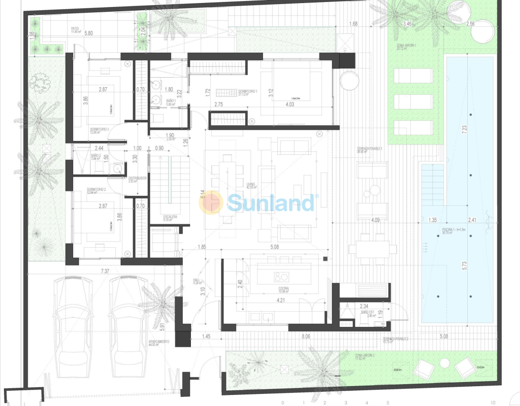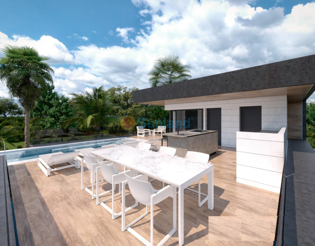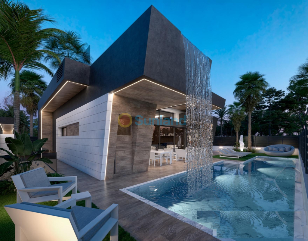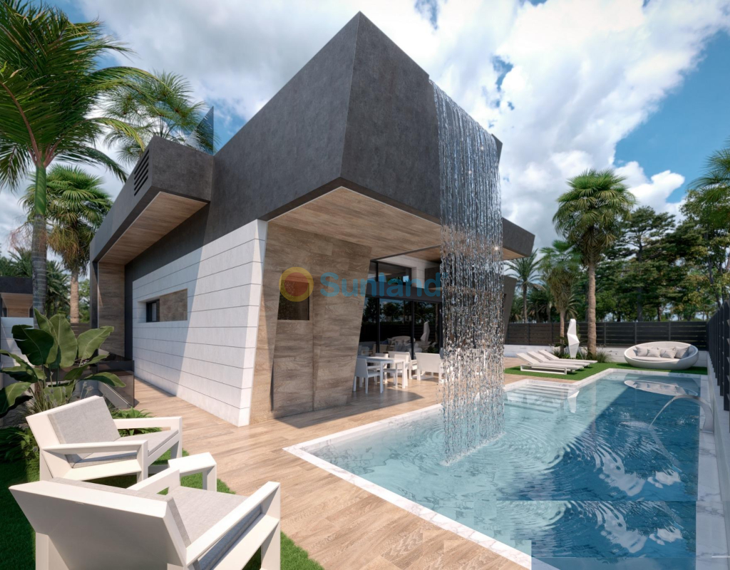 VILLAS DE OBRA NUEVA EN COMPLEJO PRIVADO EN LA PROVINCIA DE MURCIA Chalets de obra nueva en urbanización privada en la región de Murcia, rodeados de excelentes campos de golf y a tan sólo 10 minutos de las playas del Mar Menor. Villas de 2 plantas con 3 dormitorios, 3 baños, cocina americana y salón-comedor, armarios empotrados, sótano, terraza, solarium privado con piscina y jardín privado con piscina, plaza de garaje para 2 coches. Situado en un complejo cerrado privado, con una entrada de acceso principal y seguridad las 24 horas. El complejo está diseñado en torno a una impresionante zona verde de 126.000 m2. Consta de senderos para caminar y montar en bicicleta, instalaciones deportivas, pistas de paddle y tenis, un campo de mini-golf, jardines, parques para perros, zonas de ocio, casa club.... También en la zona central se encuentra la joya del complejo, un lago artificial de aguas cristalinas de casi 17.000m2 de superficie acuática, rodeado de playas de arena blanca y palmeras, trayendo un trozo del Caribe a la Región de Murcia. Hay 2 islas en el lago, una de ellas tiene su propio bar, también hay "Chiringuitos de playa" repartidos por el lago. El complejo está estratégicamente situado a menos de 4 km de la playa y de la localidad de Los Alcázares, donde se pueden practicar diversos deportes náuticos, rodeado de varios campos de golf y de la ciudad de Cartagena a menos de 15 minutos en coche y a 22 km del aeropuerto de Murcia, teniendo por tanto una amplia oferta cultural, gastronómica y deportiva a su alcance.