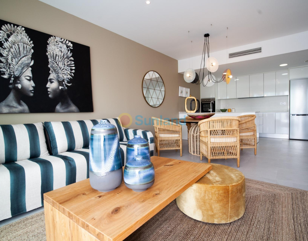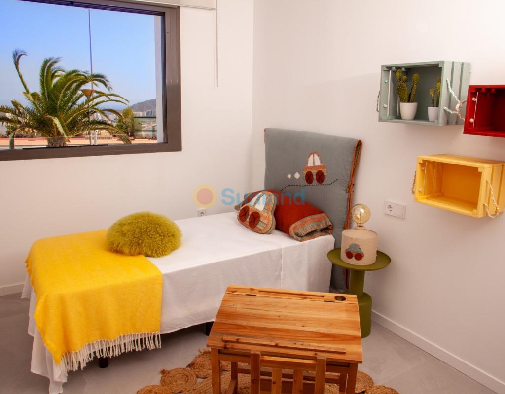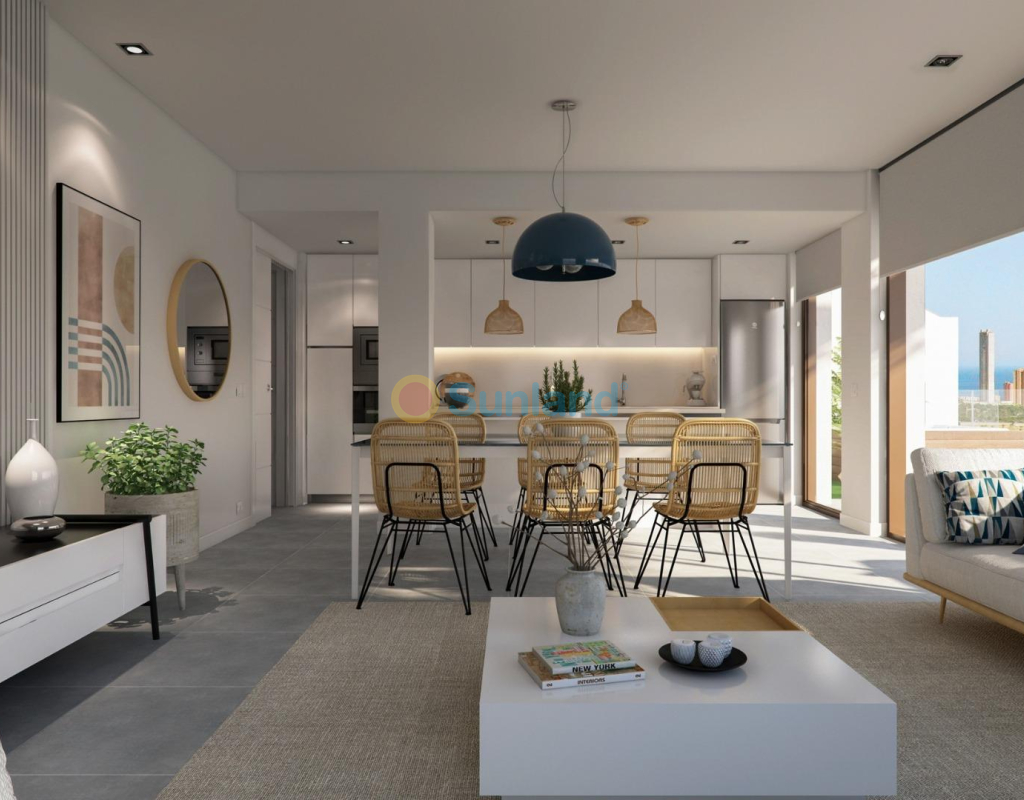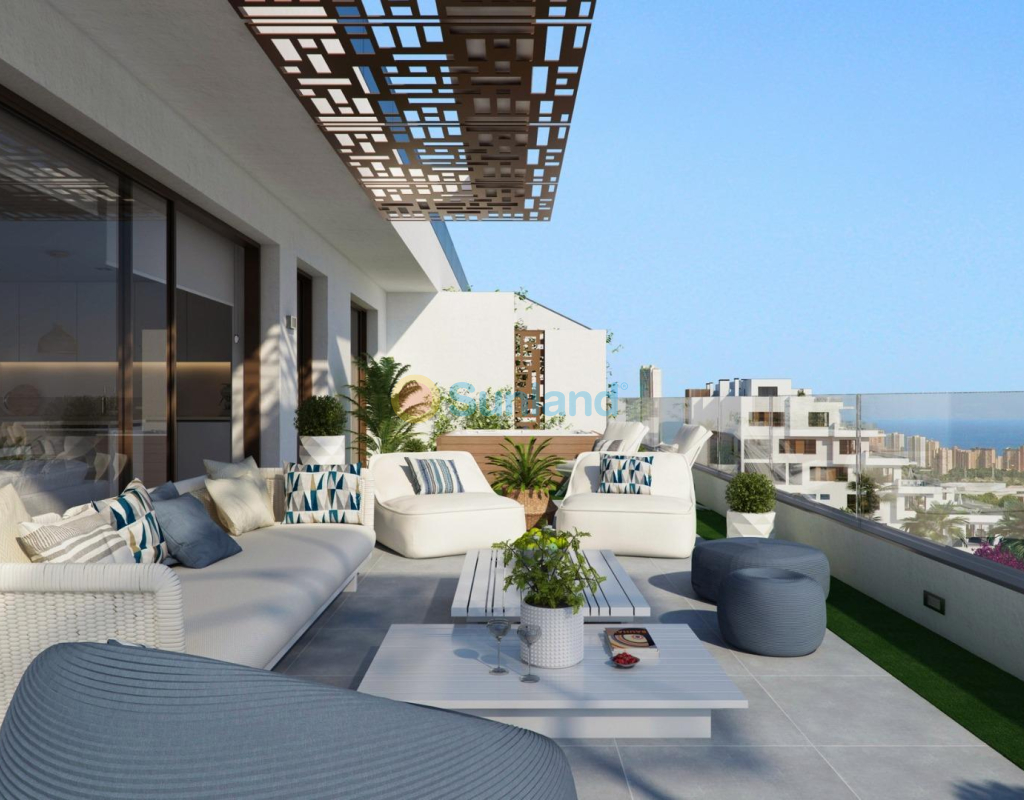 COMPLEJO RESIDENCIAL DE OBRA NUEVA EN FINESTRAT CON VISTAS AL MAR Complejo residencial de lujo de nueva construcción en Finestrat. El complejo consta de dúplex, apartamentos, áticos y villas independientes. El complejo consta de 3 bloques: 2 bloques de 7 plantas y 1 de 5. Villas individuales con piscina privada. Hermosos apartamentos de planta baja con 2 y 3 dormitorios, 2 baños, cocina abierta con el salón, armarios empotrados, sótano y jardín privado. Cada propiedad viene con plaza de aparcamiento subterráneo y trastero. Complejo cerrado de lujo con zonas comunes, vistas al mar y al skyline de Benidorm situado a pocos kilómetros de la bulliciosa vida de playa, centro comercial y playas de arena. La entrega del complejo es en abril de 2025. El complejo consta de: Piscina comunitaria de 200 m² Piscina cubierta climatizada Zona de juegos Zona deportiva Pádel Aparcamiento subterráneo Trastero Ascensor Finestrat se encuentra en la comarca de la Marina Baixa de la Costa Blanca, cerca de la vecina Benidorm y a unos 40 kilómetros de la ciudad de Alicante y del aeropuerto internacional. El pueblo está situado en la ladera del Puig Campana y ofrece hermosas vistas de las montañas, la costa y el mar Mediterráneo. Benidorm está a sólo cinco minutos en coche de las propiedades y ofrece todos los servicios que pueda necesitar, incluyendo tiendas, bares, restaurantes, supermercados, bancos, farmacias y varias escuelas privadas internacionales. Cerca de las playas de Levante, Poniente y Cala de Finestrat, con más de 6km de longitud que se encuentran entre las mejores de Europa galardonadas por la Unión Europea con Banderas Azules. Todos los servicios de ocio como los parques temáticos de Aqua Natura, Terra Mítica, Terra Natura, Aqualandia y Mundomar, los campos de Golf Sierra Cortina y Villaitana, el senderismo y la escalada en el Puig Campana un marco natural incomparable o el disfrute de los deportes náuticos.