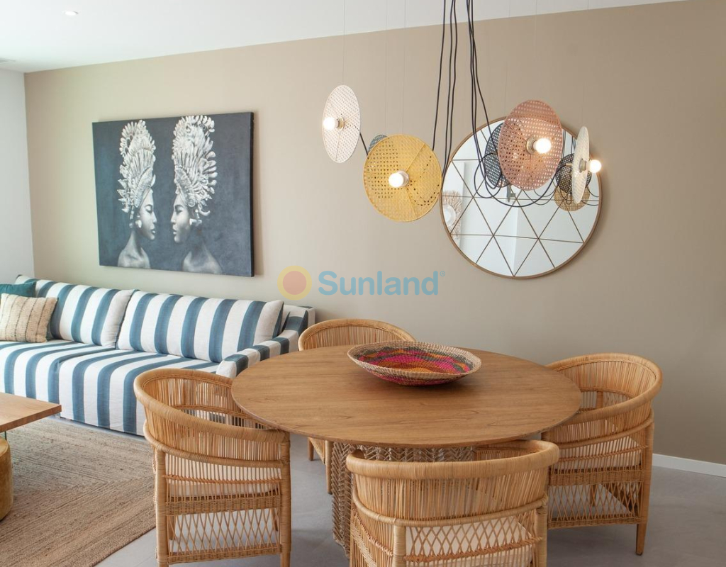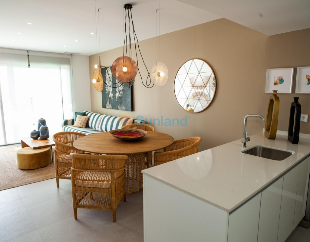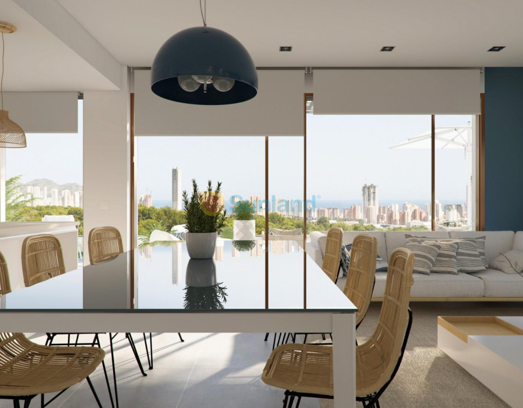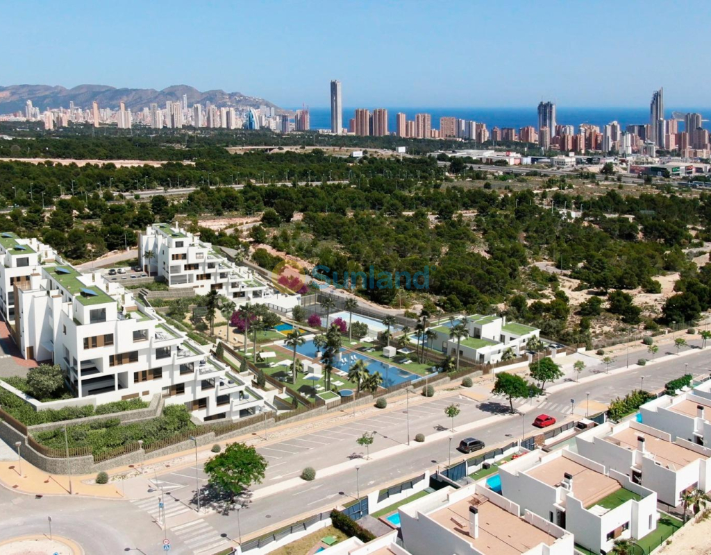 COMPLEJO RESIDENCIAL DE OBRA NUEVA EN FINESTRAT CON VISTAS AL MAR Complejo residencial de lujo de nueva construcción en Finestrat. El complejo consta de dúplex, apartamentos, áticos y villas independientes. El complejo consta de 3 bloques: 2 bloques de 7 plantas y 1 de 5. Villas individuales con piscina privada. Hermosos apartamentos de planta baja con 2 y 3 dormitorios, 2 baños, cocina abierta con el salón, armarios empotrados, sótano y jardín privado. Cada propiedad viene con plaza de aparcamiento subterráneo y trastero. Complejo cerrado de lujo con zonas comunes, vistas al mar y al skyline de Benidorm situado a pocos kilómetros de la bulliciosa vida de playa, centro comercial y playas de arena. La entrega del complejo es en abril de 2025. El complejo consta de: Piscina comunitaria de 200 m² Piscina cubierta climatizada Zona de juegos Zona deportiva Pádel Aparcamiento subterráneo Trastero Ascensor Finestrat se encuentra en la comarca de la Marina Baixa de la Costa Blanca, cerca de la vecina Benidorm y a unos 40 kilómetros de la ciudad de Alicante y del aeropuerto internacional. El pueblo está situado en la ladera del Puig Campana y ofrece hermosas vistas de las montañas, la costa y el mar Mediterráneo. Benidorm está a sólo cinco minutos en coche de las propiedades y ofrece todos los servicios que pueda necesitar, incluyendo tiendas, bares, restaurantes, supermercados, bancos, farmacias y varias escuelas privadas internacionales. Cerca de las playas de Levante, Poniente y Cala de Finestrat, con más de 6km de longitud que se encuentran entre las mejores de Europa galardonadas por la Unión Europea con Banderas Azules. Todos los servicios de ocio como los parques temáticos de Aqua Natura, Terra Mítica, Terra Natura, Aqualandia y Mundomar, los campos de Golf Sierra Cortina y Villaitana, el senderismo y la escalada en el Puig Campana un marco natural incomparable o el disfrute de los deportes náuticos.