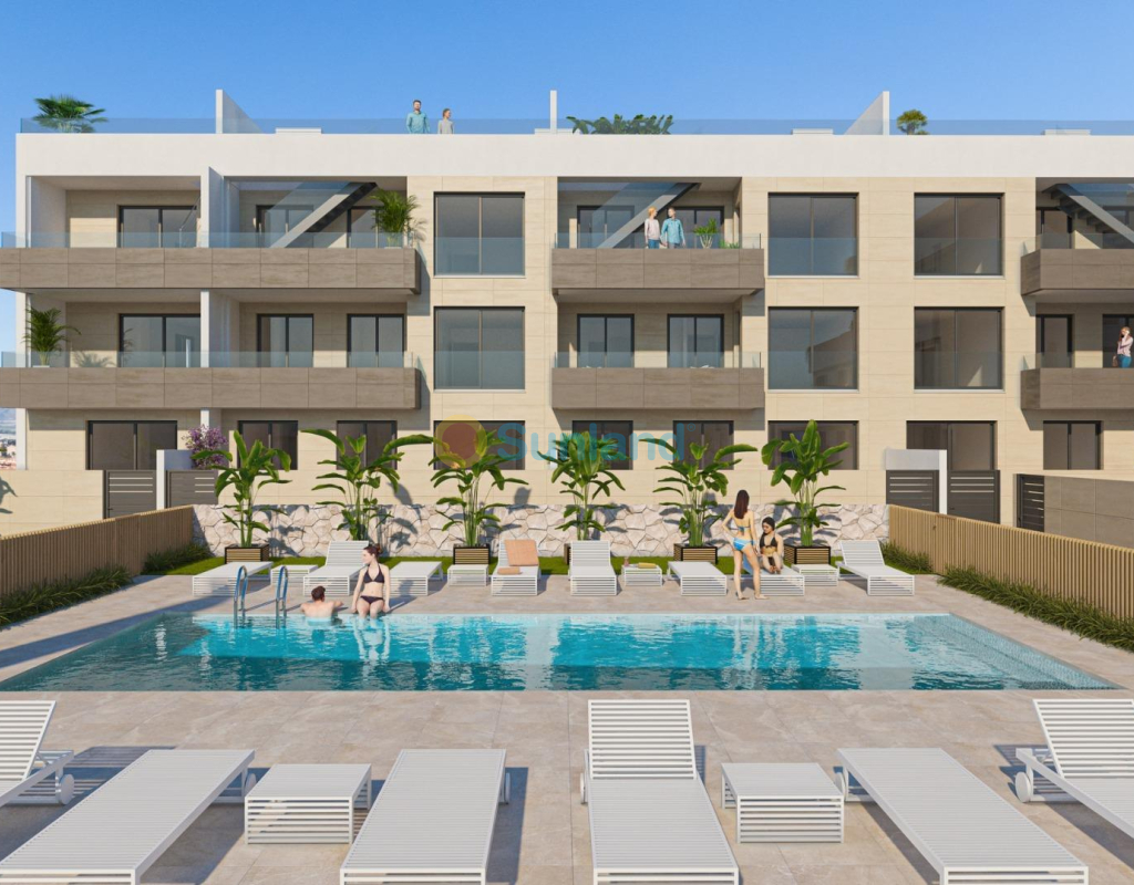 COMPLEJO RESIDENCIAL DE OBRA NUEVA EN AGUILAS Exclusivo complejo residencial de apartamentos y villas de obra nueva en Aguilas. El complejo de obra nueva consta de 36 apartamentos de 3 y 2 dormitorios distribuidos en 4 modernos bloques, dotados de 2 piscinas comunitarias y garaje comunitario con plaza de aparcamiento y trastero para cada vivienda; y 10 elegantes villas de 4 dormitorios y 3 baños, cada una con su propia piscina privada. Este complejo residencial ha sido diseñado pensando en la excelencia, ofreciendo amplias terrazas en las plantas baja y primera y solariums en las plantas superiores, donde la vista del horizonte se convierte en un lienzo de experiencias. Las viviendas disponen de cocinas y baños totalmente equipados y preinstalación de aire acondicionado por conductos. Complejo situado a 800 metros del mar, junto a un Centro Comercial. Aguilas se encuentra en una zona excepcional de la Costa Cálida a tan solo 50 minutos del nuevo aeropuerto de Murcia o Almería y a 1h30 del aeropuerto de Alicante. Águilas es una pequeña ciudad con muchos servicios, una larga playa para pasear y relajarse al sol. Es un enclave perfecto para el buceo, los deportes náuticos, el senderismo y el golf. Cuenta con 28 kilómetros de litoral en los que hay 35 playas con diferentes tipos de espesores de arena situadas en diferentes paisajes, desde calas y playas vírgenes en entornos naturales hasta las playas urbanas de la ciudad de Águilas. Su clima desértico y cálido está presente todo el año con una media anual de 22º con temperaturas suaves en invierno y muy calurosas en verano.