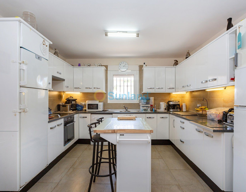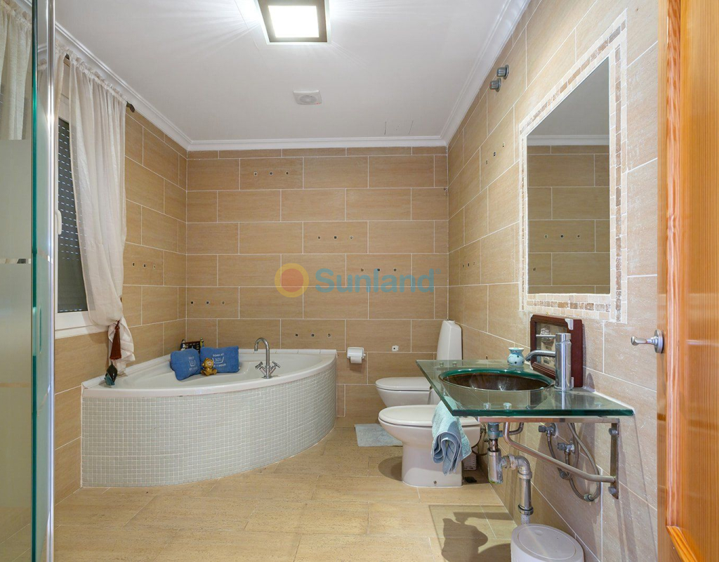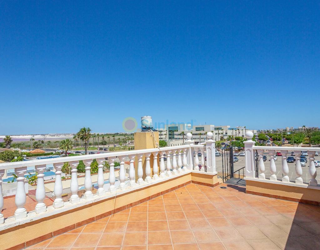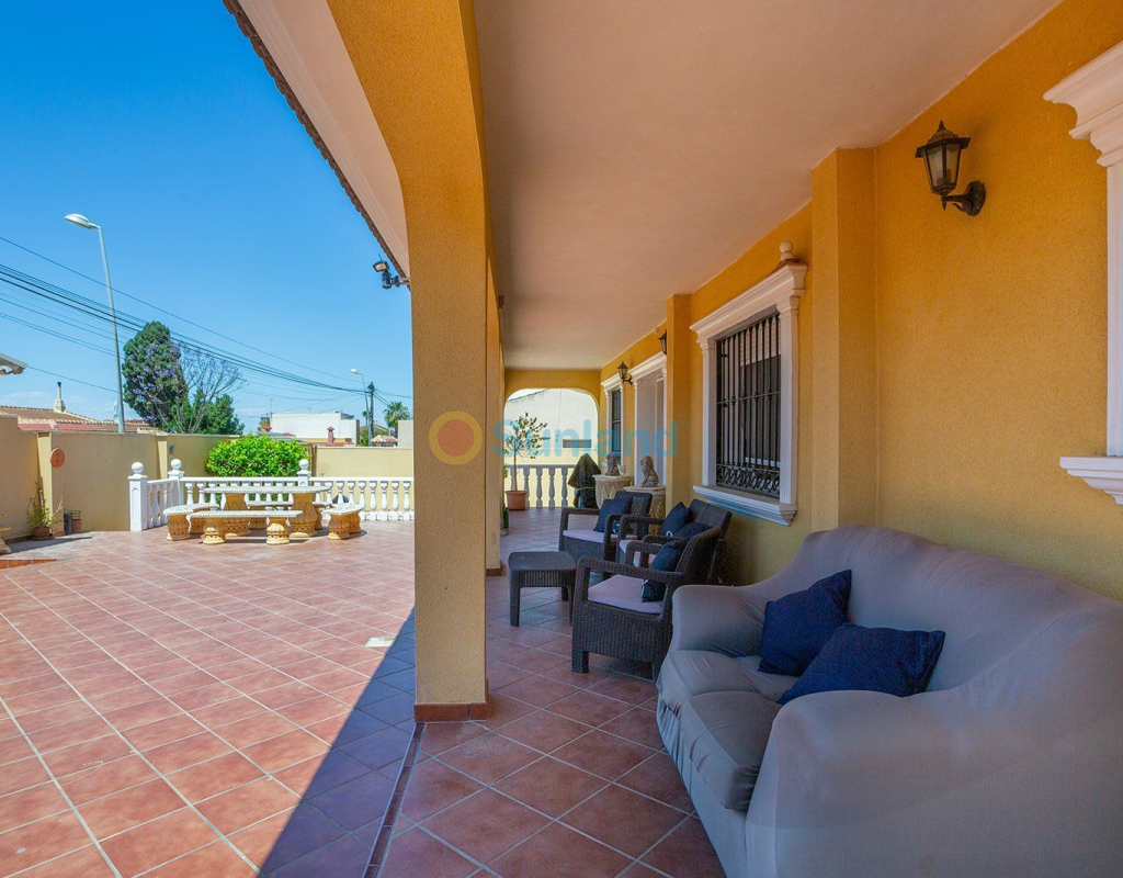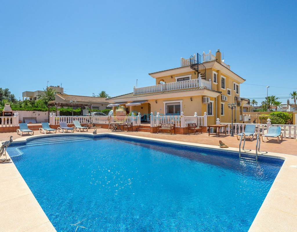 Desde Esentya te presentamos esta preciosa villa en una de las zonas más exclusivas de Torrevieja, Los Balcones. La vivienda cuenta con una parcela de 1100m2 con una amplia piscina privada. La propiedad cuenta con 340m2 construidos dividios en 2 plantas más el sótano. Al ingresar a la vivienda, encontramos un salón con chimenea, cocina-comedor independiente, 2 dormitorios con baño en suite, 1 baño y 1 trastero. En segunda planta cuenta con 2 dormitorios en-suite, amplia terraza y acceso al solárium con vistas a la laguna salada. También cuenta con un sótano habitable con amplio salón y 1 dormitorio. Punto a destacar: la primera planta cuenta con acceso privado exterior. Esto ofrece mayor privacidad y oportunidad de alquiler a los propietarios que le interese. Extras de la vivienda: Parking para 6 coches Camaras de seguridad Aire acondicionado en todas las habitaciones Portón eléctrico Doble cristal en ventanas Suelo de mármol Pide tu cita ahora para ver esta increíble propiedad.