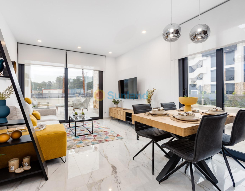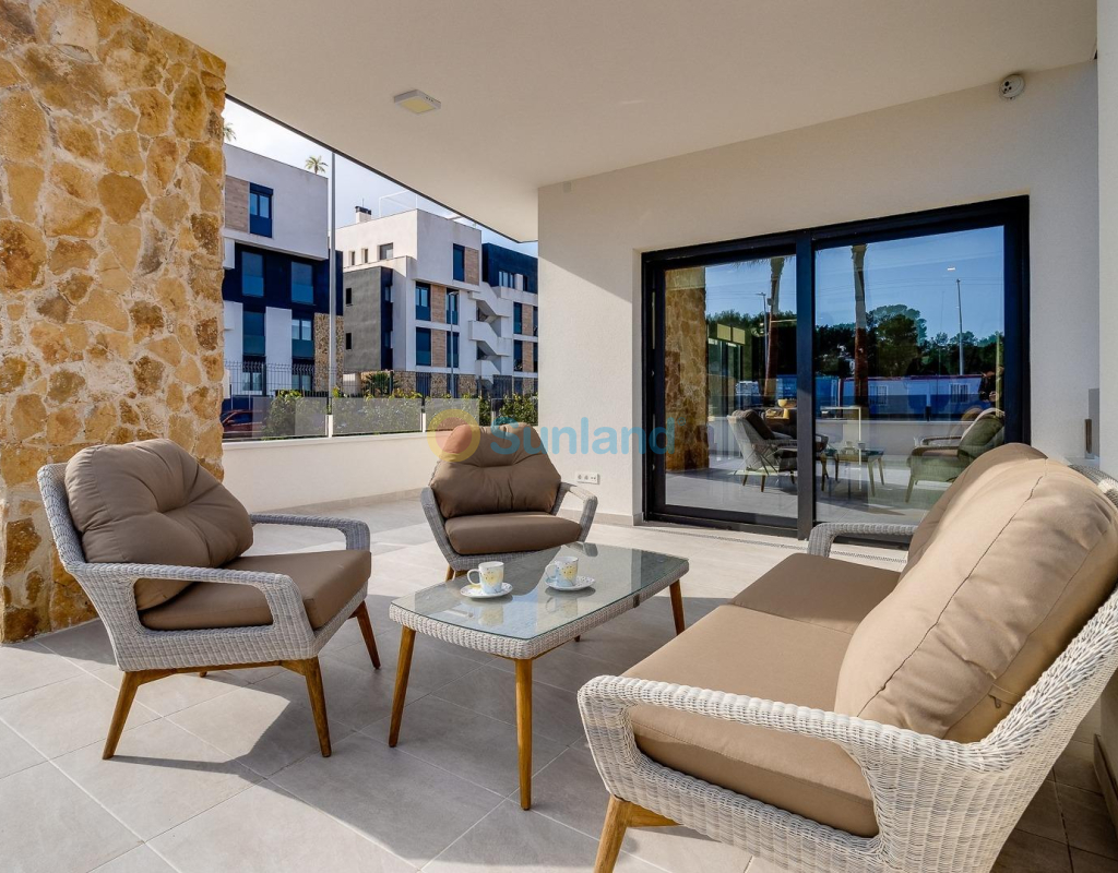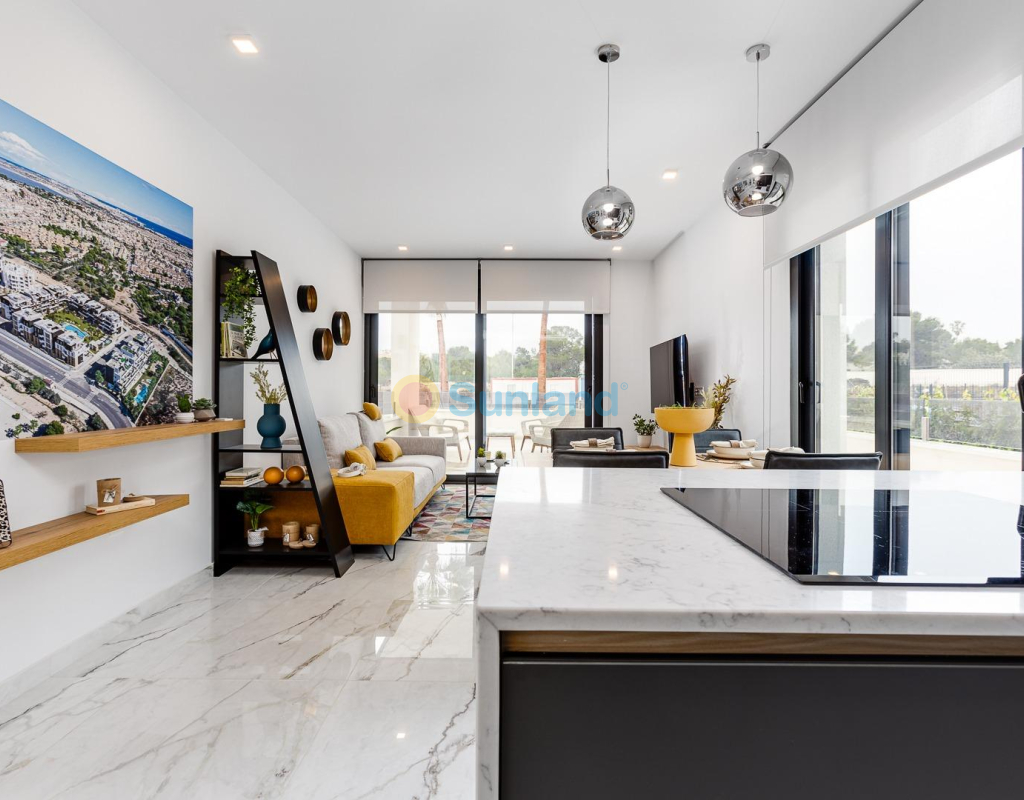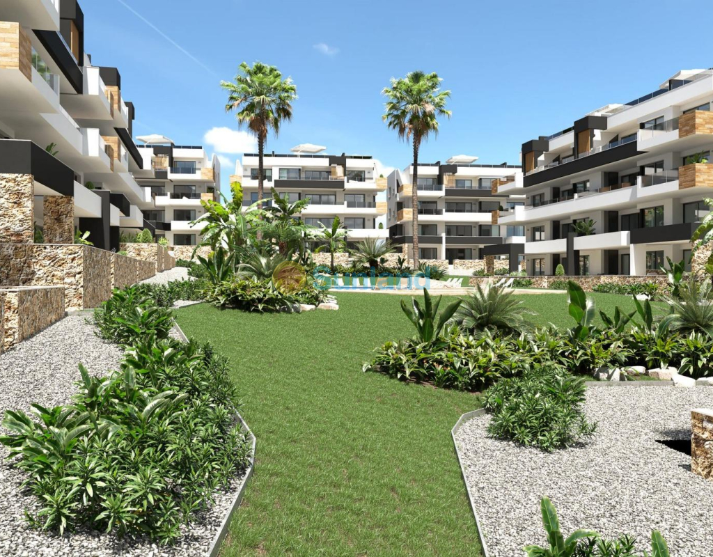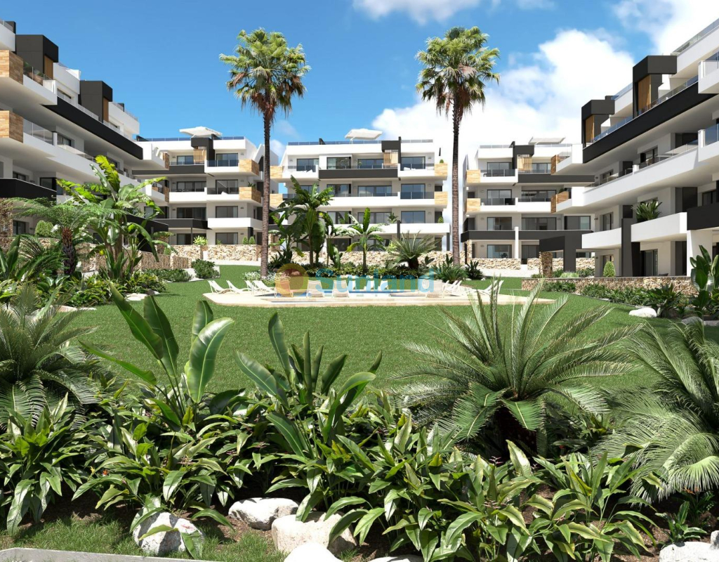 COMPLEJO RESIDENCIAL DE OBRA NUEVA EN LOS ALTOS Apartamentos y áticos modernos de nueva construcción totalmente equipados con cocina americana y salón, 2 dormitorios, 2 baños, amplias terrazas y bonitas zonas comunes en Los Altos. Puede elegir entre apartamentos en planta baja con jardín, apartamentos en planta media con acogedoras terrazas o apartamentos en planta alta con solarium privado, todos construidos con un alto estándar y muy buenas calidades. Los apartamentos se entregan con electrodomésticos, paquete de muebles, aire acondicionado instalado, mobiliario, plaza de aparcamiento y trastero. Hermosa comunidad cerrada que ofrece bonitas zonas verdes, piscina, sauna, gimnasio, jacuzzi, parque infantil y pista de petanca. Los Altos en Orihuela Costa está situado justo al sur de Torrevieja en la Costa Blanca en España. Los Altos se encuentra a sólo 10 minutos de las galardonadas playas de Orihuela Costa, el mayor centro comercial, La Zenia Boulevard o el conocido campo de golf de Villamartín. Los Altos está situado entre las capitales de las provincias de Alicante y Murcia. Los Altos está a 45 minutos del aeropuerto de Alicante y a 50 minutos del aeropuerto murciano de Corvera.