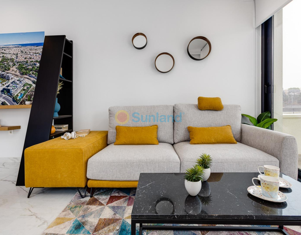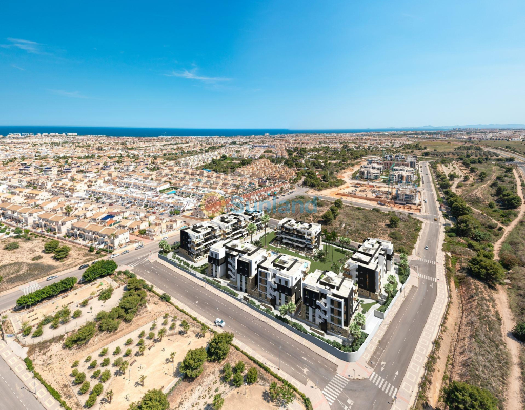 COMPLEJO RESIDENCIAL DE OBRA NUEVA EN LOS ALTOS Apartamentos y áticos modernos de nueva construcción totalmente equipados con cocina americana y salón, 2 dormitorios, 2 baños, amplias terrazas y bonitas zonas comunes en Los Altos. Puede elegir entre apartamentos en planta baja con jardín, apartamentos en planta media con acogedoras terrazas o apartamentos en planta alta con solarium privado, todos construidos con un alto estándar y muy buenas calidades. Los apartamentos se entregan con electrodomésticos, paquete de muebles, aire acondicionado instalado, mobiliario, plaza de aparcamiento y trastero. Hermosa comunidad cerrada que ofrece bonitas zonas verdes, piscina, sauna, gimnasio, jacuzzi, parque infantil y pista de petanca. Los Altos en Orihuela Costa está situado justo al sur de Torrevieja en la Costa Blanca en España. Los Altos se encuentra a sólo 10 minutos de las galardonadas playas de Orihuela Costa, el mayor centro comercial, La Zenia Boulevard o el conocido campo de golf de Villamartín. Los Altos está situado entre las capitales de las provincias de Alicante y Murcia. Los Altos está a 45 minutos del aeropuerto de Alicante y a 50 minutos del aeropuerto murciano de Corvera.