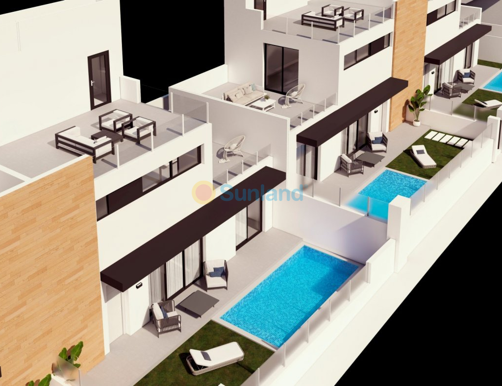 ADOSADOS DE OBRA NUEVA EN ORIHUELA COSTA Adosados de nueva construcción en Las Filipinas, Orihuela Costa. El complejo de 12 casas adosadas, cada una con 2 dormitorios, 2 baños, patios delanteros y traseros y su propia terraza en la azotea. En la planta baja hay un luminoso salón con cocina americana, un amplio dormitorio con armario empotrado y un baño. En la primera planta hay un segundo dormitorio grande con armario empotrado y un baño. Desde el dormitorio hay una salida a un balcón soleado con espacio para muebles de terraza. En la planta superior se encuentra la terraza de la azotea donde se puede colocar una cocina exterior, jacuzzi y zona chill-out. Las viviendas cuentan con preinstalación de aire acondicionado por conductos, baños equipados, sistema de agua caliente aerotérmica, interfono, paquete de iluminación LED, cocina exterior y plaza de aparcamiento. Piscina privada de 5,5 x 2,5 m. Urbanización situada cerca de tres populares campos de golf (Villamartín, Las Ramblas y Campoamor), a sólo cinco minutos de las mejores playas de Orihuela Costa. A pocos minutos a pie se encuentran todos los servicios como bares, restaurantes y tiendas, centro comercial La Fuente. Las Filipinas se encuentra a unos 10 minutos de la famosa Plaza y Campo de Golf de Villamartín, donde encontrará numerosos bares y restaurantes, supermercado, bancos, una parada de taxis y la parada de autobús local. Las doradas playas de Orihuela Costa están a sólo 5 minutos en coche, así como el nuevo centro comercial Zenia Boulevard (el mayor centro comercial de la provincia de Alicante con la mayor tienda de ropa Primark de Europa). Hay otros 3 campos de golf, todos a 5 minutos en coche. Hay pistas de tenis y entrenamiento de tenis disponibles en el cercano hotel Campoamor. Los aeropuertos de Alicante y Murcia están a 45 minutos en coche.