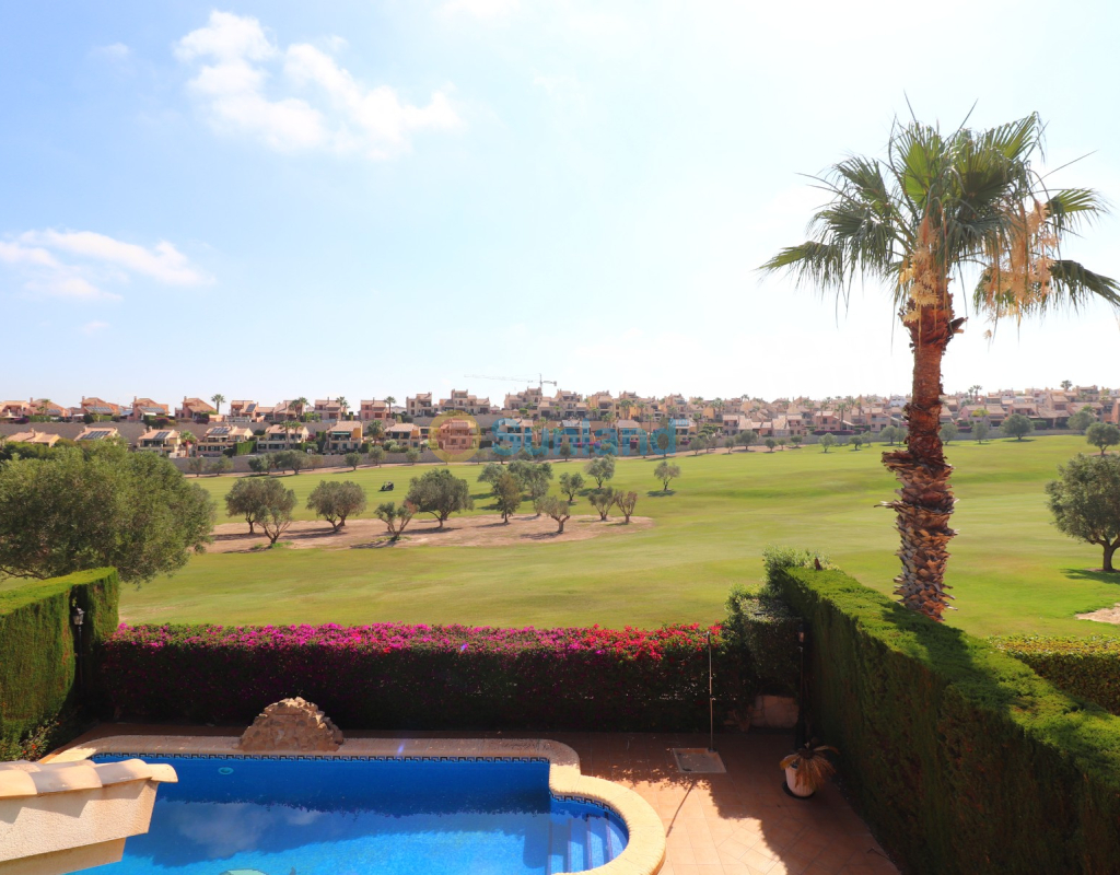 Esta villa independiente de tres dormitorios en primera línea de golf con orientación este en La Finca Golf Resort se encuentra en Algorfa, Costa Blanca Sur. Esta villa de hermoso diseño ofrece una combinación perfecta de lujo y practicidad, lo que la convierte en una casa ideal para familias o aquellos que buscan un retiro relajante. Con tres amplios dormitorios, un baño con ducha y un baño, esta villa ofrece un amplio espacio para mayor comodidad y privacidad. La propiedad está equipada con un sistema de alarma para mayor seguridad y aire acondicionado en todas partes, lo que garantiza un ambiente de vida cómodo durante todo el año. Los armarios empotrados en los dormitorios ofrecen mucho espacio de almacenamiento, y un lavadero contiguo se suma a la comodidad de la casa. La sala de estar de planta abierta incluye una chimenea de gas, lo que crea un ambiente cálido y acogedor. La cocina de estilo americano, completa con gas natural, es moderna y funcional, perfecta para los entusiastas culinarios. Un solárium ofrece un espacio sereno para disfrutar del clima soleado y las impresionantes vistas. La villa cuenta con un hermoso jardín de baldosas y dos terrazas, perfectas para cenar y entretenerse al aire libre. Una piscina privada ofrece una escapada refrescante, mientras que la posición de primera línea de golf de la propiedad ofrece impresionantes vistas al campo de golf. Ubicada dentro de una comunidad cerrada segura con estacionamiento, esta villa también incluye almacenamiento debajo de la casa, lo que mejora su practicidad. La ubicación es increíblemente conveniente, con restaurantes, bares y una panadería a solo 15 minutos a pie o dos minutos en automóvil, y un supermercado al que se puede llegar en solo cinco minutos en automóvil. Esta propiedad excepcional en La Finca Golf Resort ofrece una vida de lujo en el hermoso y tranquilo entorno de Algorfa, Costa Blanca Sur.
