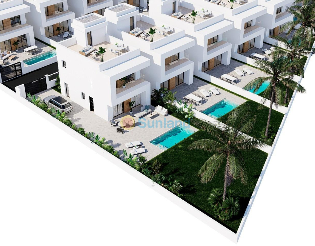 Residencial de obra nueva de villas independientes y pareados en La Zenia, Orihuela Costa. Viviendas modernas construidas en 2 plantas, dispone de 3 dormitorios, 2 baños, cocina americana con salón, armarios empotrados, Aire Acondicionado por conductos, solárium, jardín privado con la piscina y plaza de aparcamiento. La Zenia se encuentra en la Costa Blanca Sur, justo al sur de la importante ciudad de Torrevieja. Este tramo de la costa es conocida como la Costa de Orihuela. La Zenia es un pequeño pero concurrido complejo turístico de playa. Tiene muchos restaurantes, bares, tiendas y buenas instalaciones debido al gran número de personas que viven aquí durante todo el año. Hay muchos bares irlandeses incluyendo el conocido Paddy's. La mayoría de los bares muestran Sky Sports y es fácil encontrar un buen desayuno inglés durante todo el día en uno de los muchos cafés y restaurantes. Centro Comercial La Zenia Boulevard podrá disfrutar de moda, ocio y restauración en un mismo lugar. Complejo situado a 40 minutos del aeropuerto de Alicante y a 1 hora del aeropuerto de Murcia - Corvera.