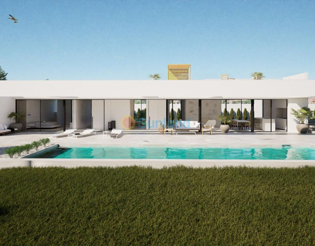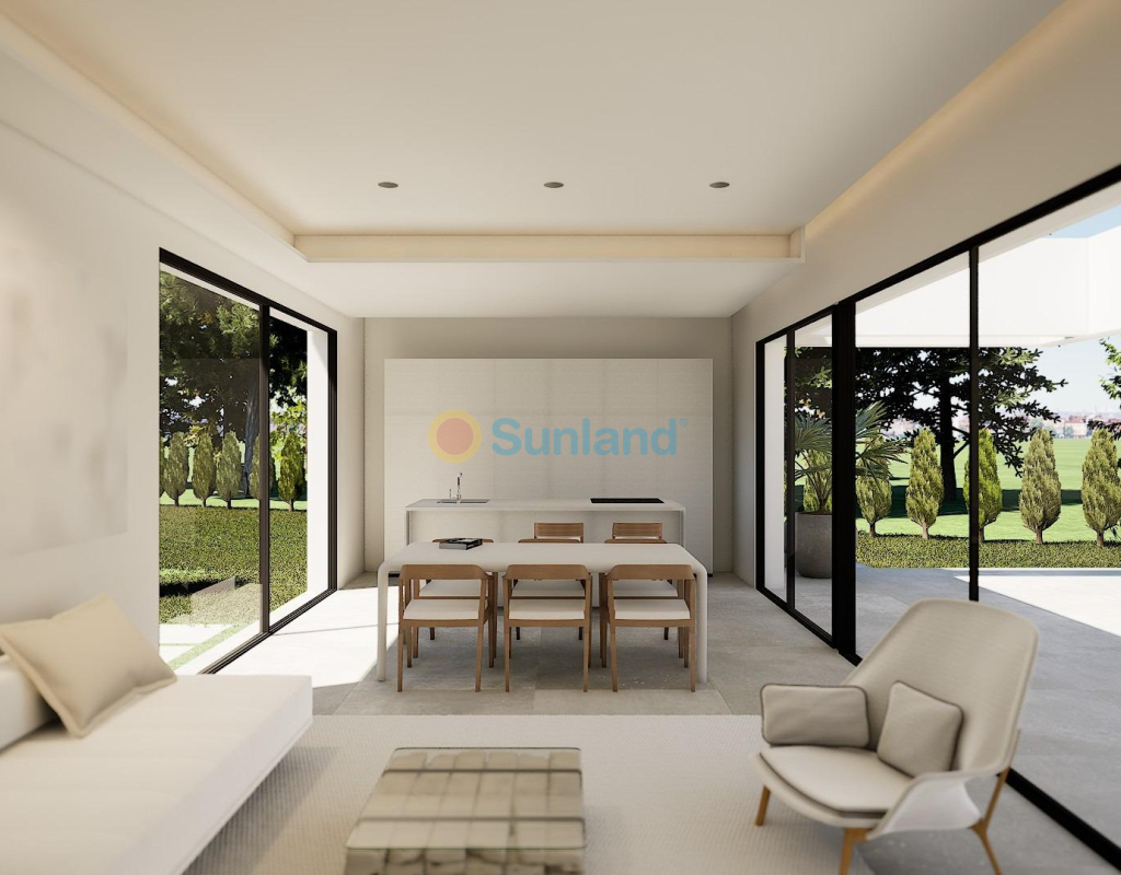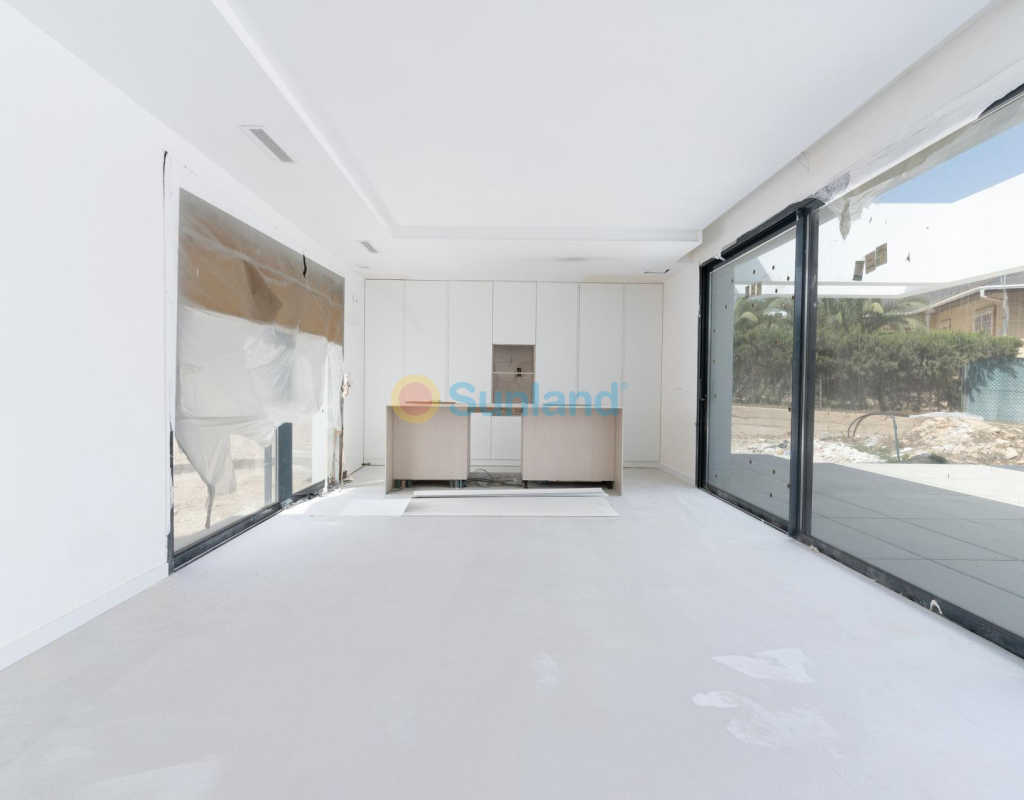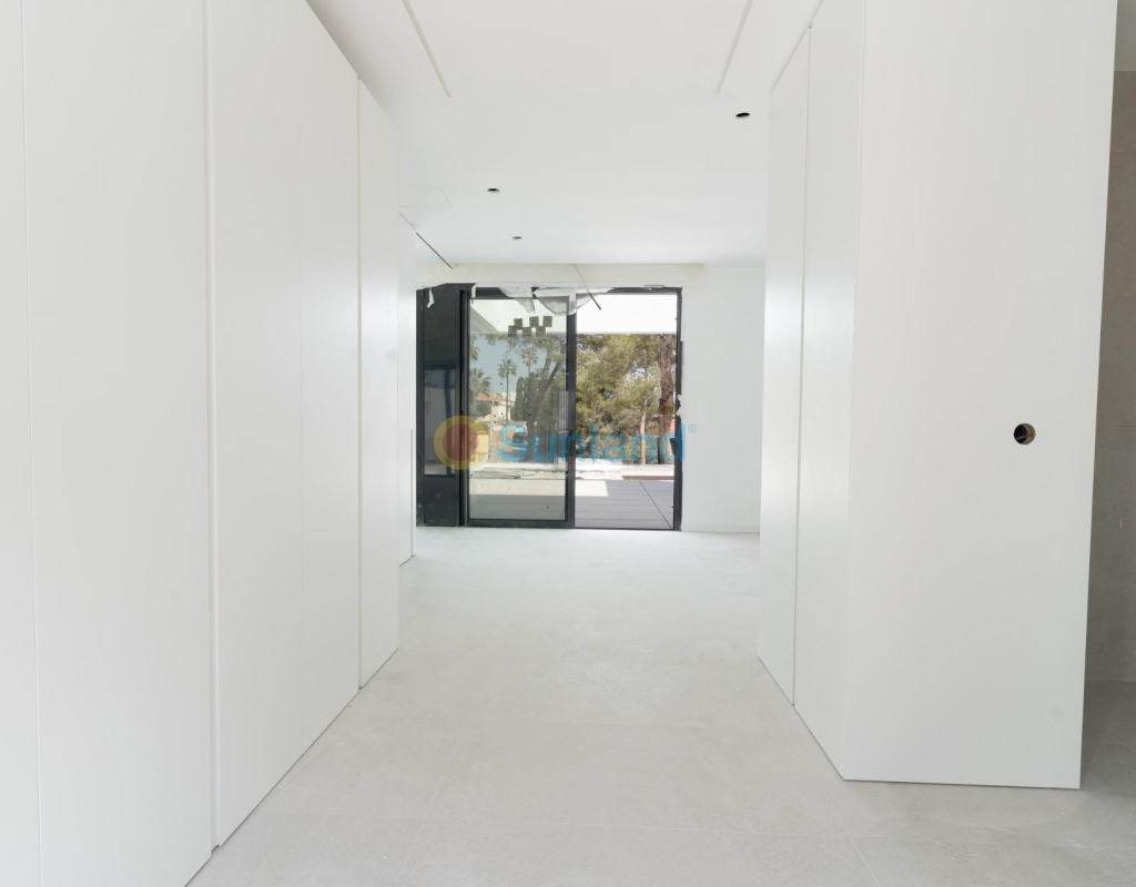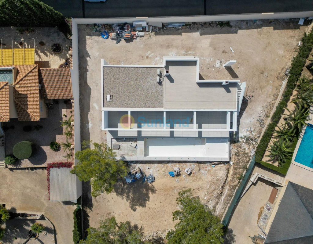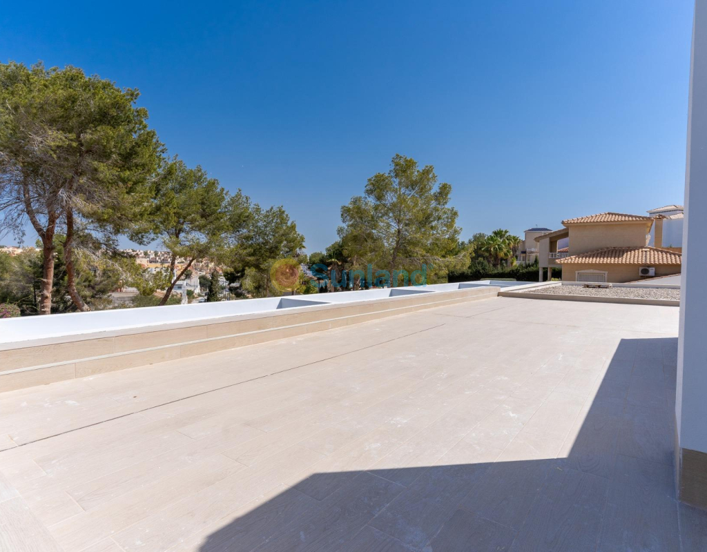 VILLA DE OBRA NUEVA EN LAS FILIPINAS Espectacular villa de lujo de obra nueva construido en una sola planta sobre una parcela de 1765m2, dispone de terraza, solarium privado, gran jardín con la piscina y plaza de parking exterior. La parcela tiene una inclinación que permite situar la casa en la parte superior para proporcionar una sensación de amplitud espectacular y unas vistas despejadas desde todas sus estancias. Esta villa dispone de 3 dormitorios dobles, uno de ellos con baño en suite y los otros 2 con terraza trasera cubierta. En las zonas comunes encontramos un baño completo, un aseo, una zona de lavandería y un amplio salón-comedor con cocina abierta. Todas las estancias están orientadas hacia la terraza delantera (85m2) que cuenta con una gran piscina desbordante de 56m2 con dos zonas, una zona de baño estándar con una profundidad máxima de 1,29m2 y una zona de aguas para los más pequeños de la familia. Adicionalmente, la casa ha sido dotada de un solarium de 70m2 en el que disfrutar de unas vistas más elevadas sobre la parcela y poder colocar una zona Chill Out en la que disfrutar de las cálidas noches de verano en un espacio más privado. Por último, en la parte trasera encontramos una segunda terraza cubierta ideal para un comedor más recogido. En esta zona también dispondremos de una zona de aparcamiento con capacidad para 5 coches. El diseño de esta villa se basa en un concepto mediterráneo y minimalista, dando especial importancia a la luz gracias a sus grandes ventanales y a sus estancias exteriores que conectan perfectamente la casa con su gran jardín a través de la extensa terraza y su piscina infinita. En cuanto a la tipología de la vivienda, cabe destacar que se ha construido en una sola planta baja para dotar de mayor confort y mayor armonía a sus estancias. Es una vivienda pensada para una familia que prioriza la comunidad y el disfrute de los espacios. Exterior ya que toda la fachada del chalet cuenta con grandes ventanales. La ubicación estratégica destaca en primer lugar por la orientación norte de la parcela que le permite tener luz durante gran parte del día. En cuanto a la ubicación, se encuentra en la urbanización Filipinas en Orihuela Costa y cuenta con todos los servicios necesarios a escasos metros como farmacias, tiendas, restaurantes, además se encuentra a menos de 20 minutos del Hospital Universitario de Torrvieja, a 45 min. Del Aeropuerto de Alicante y a menos de 1 hora del centro de la ciudad de Alicante. También hay que destacar que la playa de Torrevieja se encuentra a 15 minutos en coche y que en los alrededores de la villa se encuentran los 4 mejores campos de golf de toda la provincia de Alicante, como son Villamartín Golf, Campoamor Golf, Las Ramblas Golf y el prestigioso Campo de Golf Las Colinas, considerado uno de los mejores campos de golf de España. En definitiva, esta propiedad reúne todas las características ideales para ser considerada una propiedad exclusiva, cómoda y funcional, además de estar ubicada en un lugar estratégico.