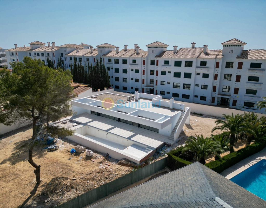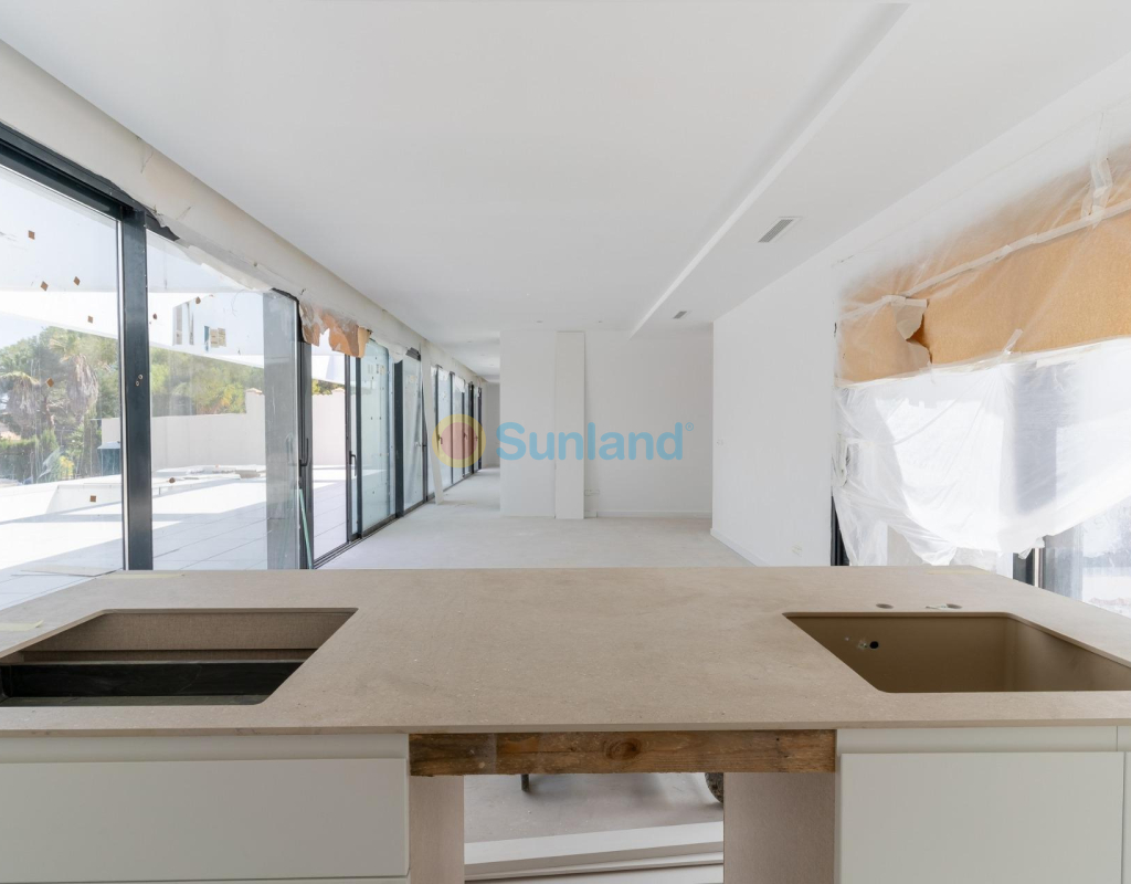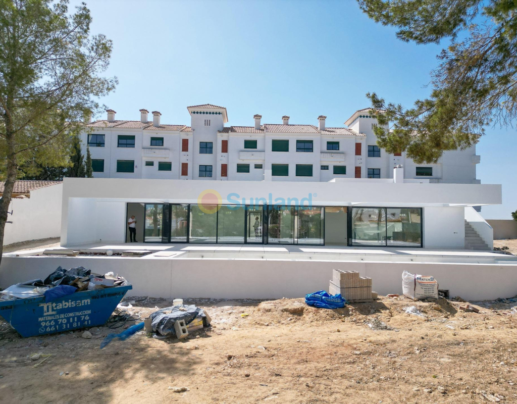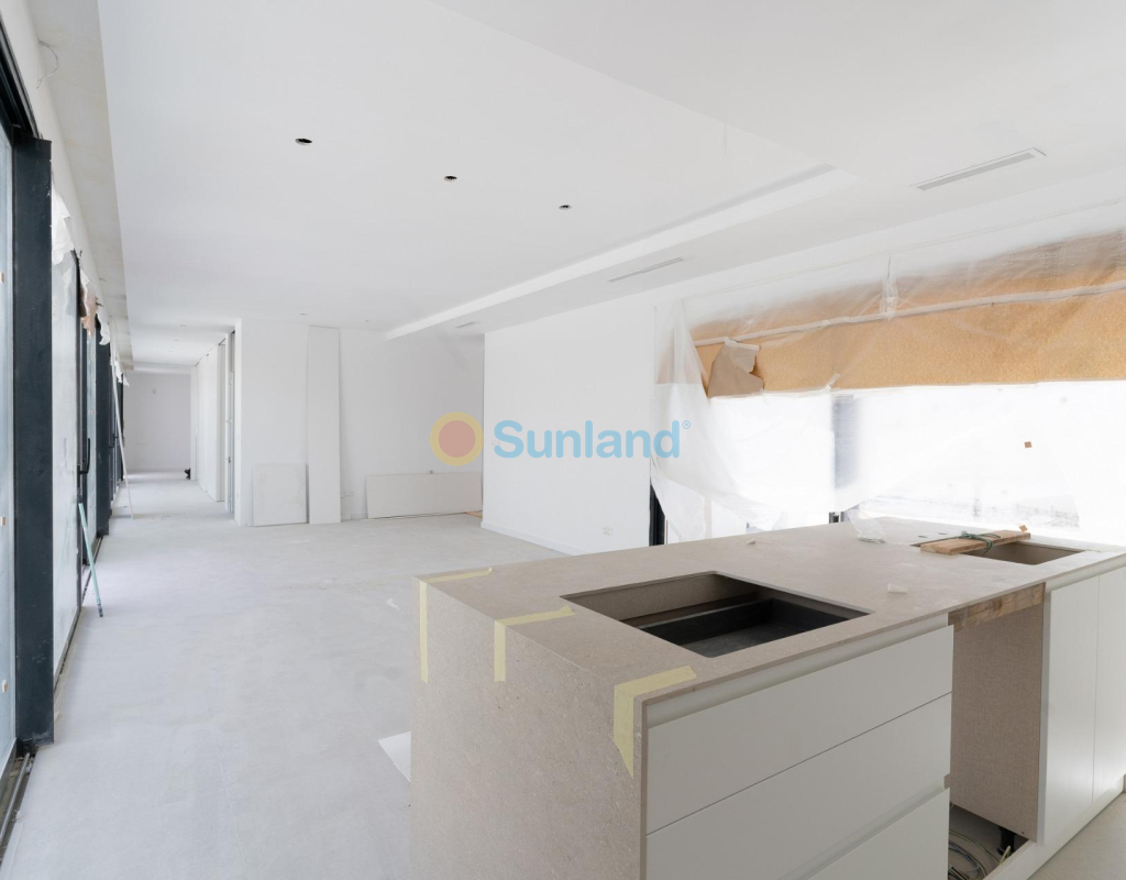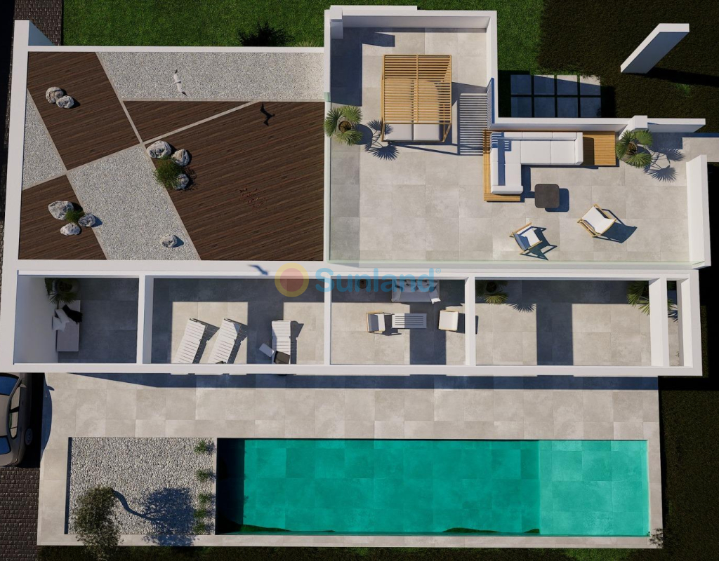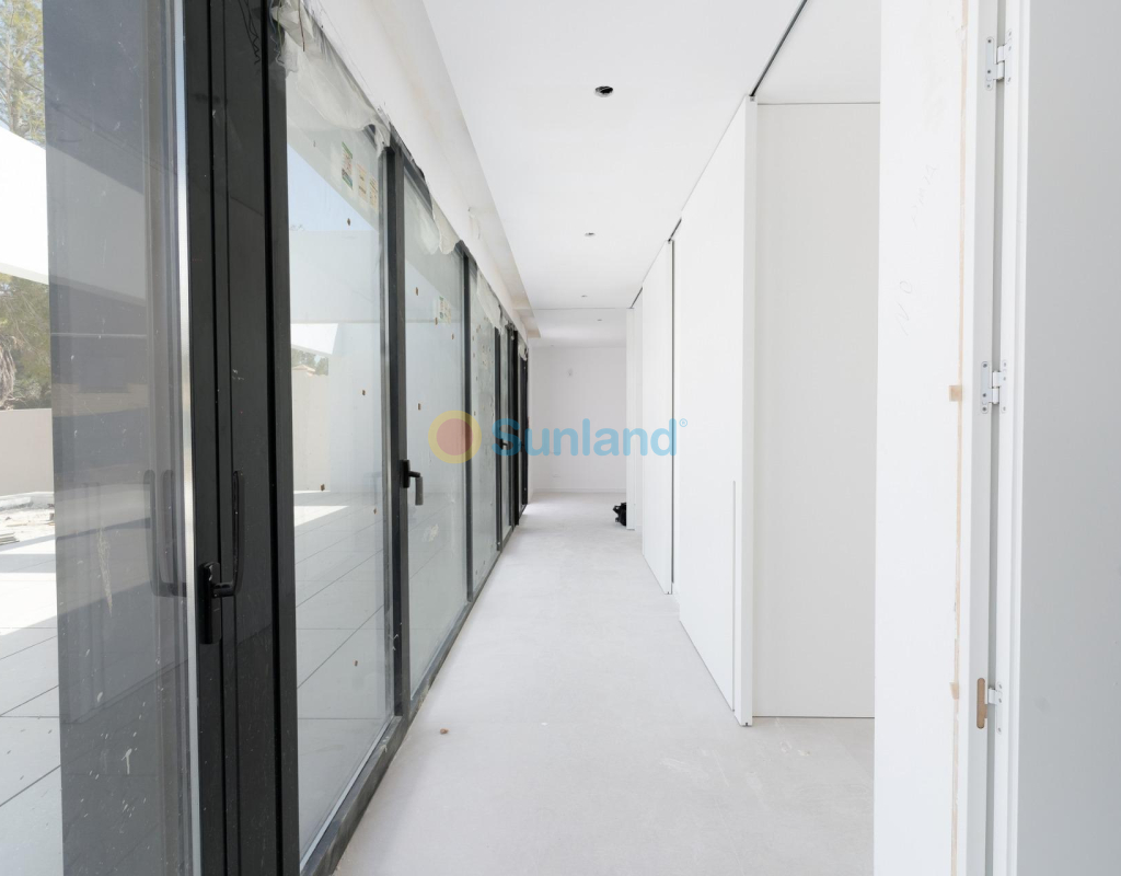 VILLA DE OBRA NUEVA EN LAS FILIPINAS Espectacular villa de lujo de obra nueva construido en una sola planta sobre una parcela de 1765m2, dispone de terraza, solarium privado, gran jardín con la piscina y plaza de parking exterior. La parcela tiene una inclinación que permite situar la casa en la parte superior para proporcionar una sensación de amplitud espectacular y unas vistas despejadas desde todas sus estancias. Esta villa dispone de 3 dormitorios dobles, uno de ellos con baño en suite y los otros 2 con terraza trasera cubierta. En las zonas comunes encontramos un baño completo, un aseo, una zona de lavandería y un amplio salón-comedor con cocina abierta. Todas las estancias están orientadas hacia la terraza delantera (85m2) que cuenta con una gran piscina desbordante de 56m2 con dos zonas, una zona de baño estándar con una profundidad máxima de 1,29m2 y una zona de aguas para los más pequeños de la familia. Adicionalmente, la casa ha sido dotada de un solarium de 70m2 en el que disfrutar de unas vistas más elevadas sobre la parcela y poder colocar una zona Chill Out en la que disfrutar de las cálidas noches de verano en un espacio más privado. Por último, en la parte trasera encontramos una segunda terraza cubierta ideal para un comedor más recogido. En esta zona también dispondremos de una zona de aparcamiento con capacidad para 5 coches. El diseño de esta villa se basa en un concepto mediterráneo y minimalista, dando especial importancia a la luz gracias a sus grandes ventanales y a sus estancias exteriores que conectan perfectamente la casa con su gran jardín a través de la extensa terraza y su piscina infinita. En cuanto a la tipología de la vivienda, cabe destacar que se ha construido en una sola planta baja para dotar de mayor confort y mayor armonía a sus estancias. Es una vivienda pensada para una familia que prioriza la comunidad y el disfrute de los espacios. Exterior ya que toda la fachada del chalet cuenta con grandes ventanales. La ubicación estratégica destaca en primer lugar por la orientación norte de la parcela que le permite tener luz durante gran parte del día. En cuanto a la ubicación, se encuentra en la urbanización Filipinas en Orihuela Costa y cuenta con todos los servicios necesarios a escasos metros como farmacias, tiendas, restaurantes, además se encuentra a menos de 20 minutos del Hospital Universitario de Torrvieja, a 45 min. Del Aeropuerto de Alicante y a menos de 1 hora del centro de la ciudad de Alicante. También hay que destacar que la playa de Torrevieja se encuentra a 15 minutos en coche y que en los alrededores de la villa se encuentran los 4 mejores campos de golf de toda la provincia de Alicante, como son Villamartín Golf, Campoamor Golf, Las Ramblas Golf y el prestigioso Campo de Golf Las Colinas, considerado uno de los mejores campos de golf de España. En definitiva, esta propiedad reúne todas las características ideales para ser considerada una propiedad exclusiva, cómoda y funcional, además de estar ubicada en un lugar estratégico.