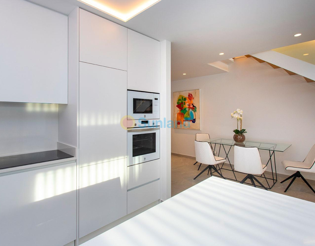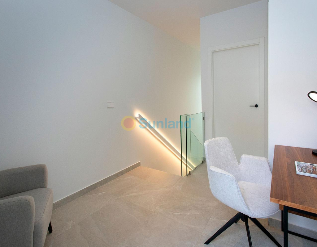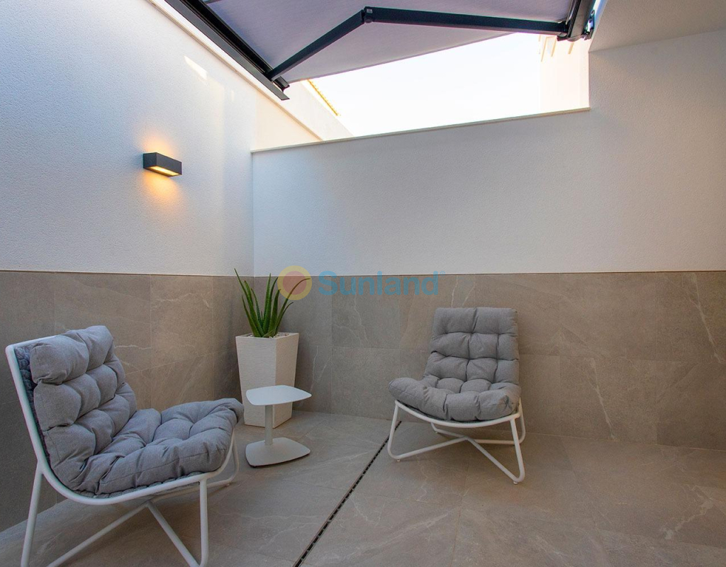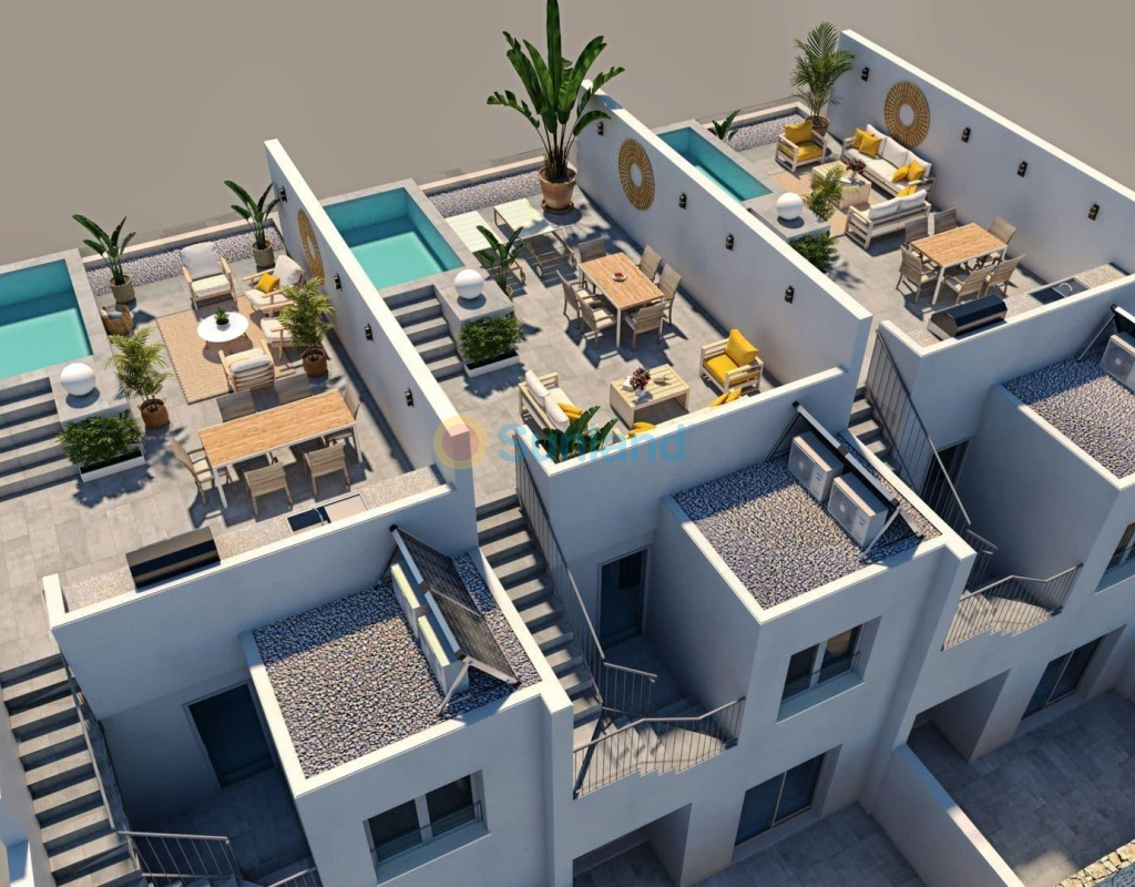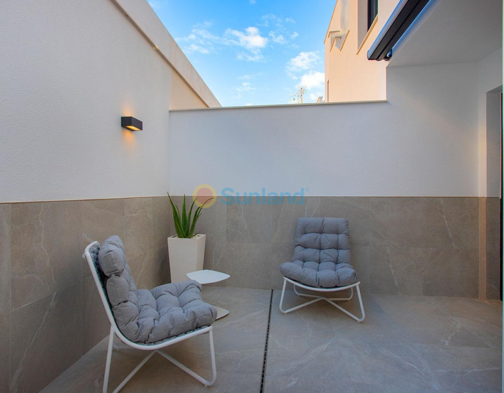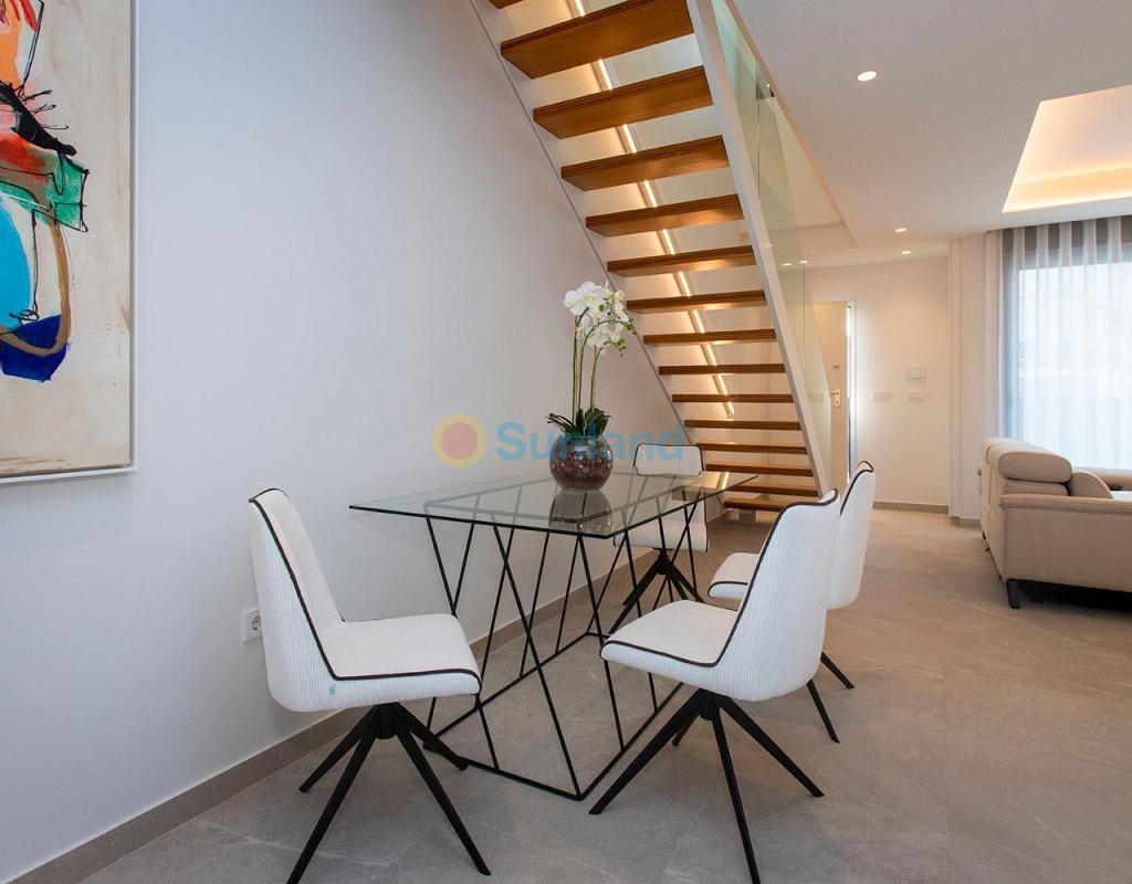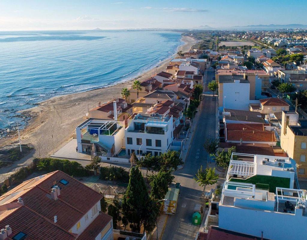 ADOSADOS DE OBRA NUEVA EN TORRE DE LA HORADADA Proyecto de obra nueva que destaca por su diseño exterior, una combinación de líneas puras y elementos revestidos, que dan un estilo único, moderno y elegante a esta vivienda en primera línea de playa. Con orientación sureste y ubicada en una zona residencial consolidada, la convierte en una vivienda ideal para disfrutar de la vida mediterránea. Su distribución interior también merece especial atención, detalles que han sido cuidadosamente pensados para proporcionar el máximo confort a sus propietarios y realzar la estética del espacio. Así, en la planta principal se ha creado un espacio "abierto y luminoso" donde salón, comedor y cocina se comunican a través de puertas correderas con un patio interior para uso y disfrute al aire libre durante todo el año. La sencillez es la clave de esta colección. De nuevo, con una sencilla estructura metálica blanca y barandilla de cristal, la escalera se convierte en el complemento perfecto para mantener la luminosidad y amplitud desde la entrada. Un dormitorio con acceso al patio y un baño completan la distribución de esta planta. A este adosado aún le espera una parte muy especial: su planta de arriba. Subiendo las escaleras se llega a un espacio chill out, antesala del solarium: un acogedor rincón con zona de lectura y escritorio. Este rellano multifuncional da paso a dos amplios dormitorios, uno de ellos con terraza privada y ambos comparten un elegante baño con sus 10m2 de superficie. Torre de la Horadada se encuentra al sur de Alicante en una preciosa ubicación en la costa. Las hermosas playas de Torre de la Horadada y Mil Palmeras tienen arena fina hermoso paseo marítimo. Hay un montón de restaurantes, bares y tiendas, también deportes acuáticos, buceo y snorkel. Está bien comunicado a sólo 40 minutos de los aeropuertos de Alicante y Murcias Corvera, con grandes centros comerciales y múltiples campos de golf a poca distancia.