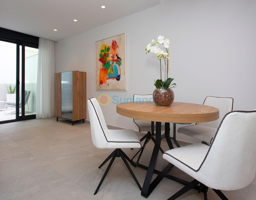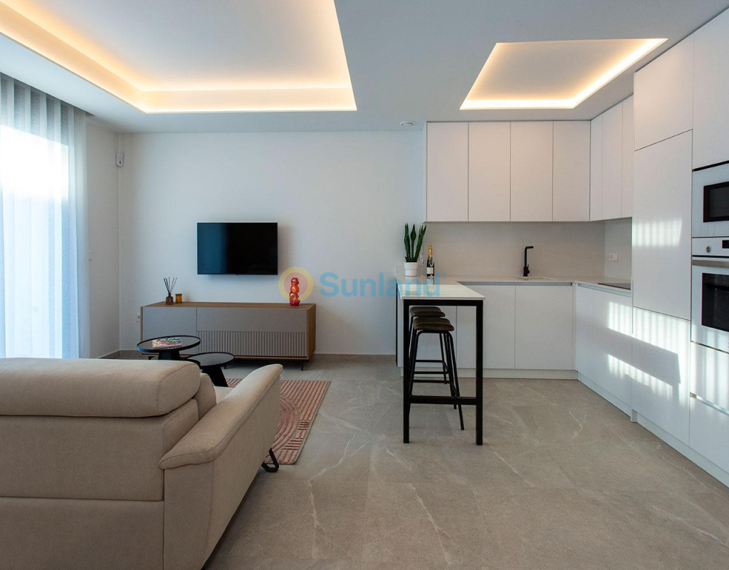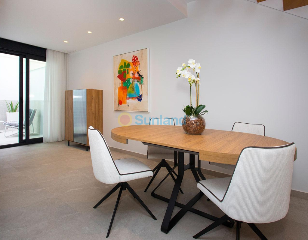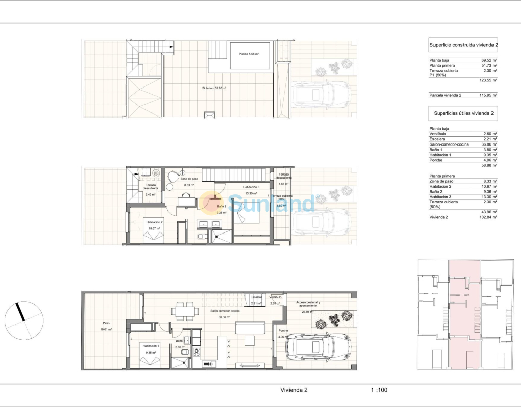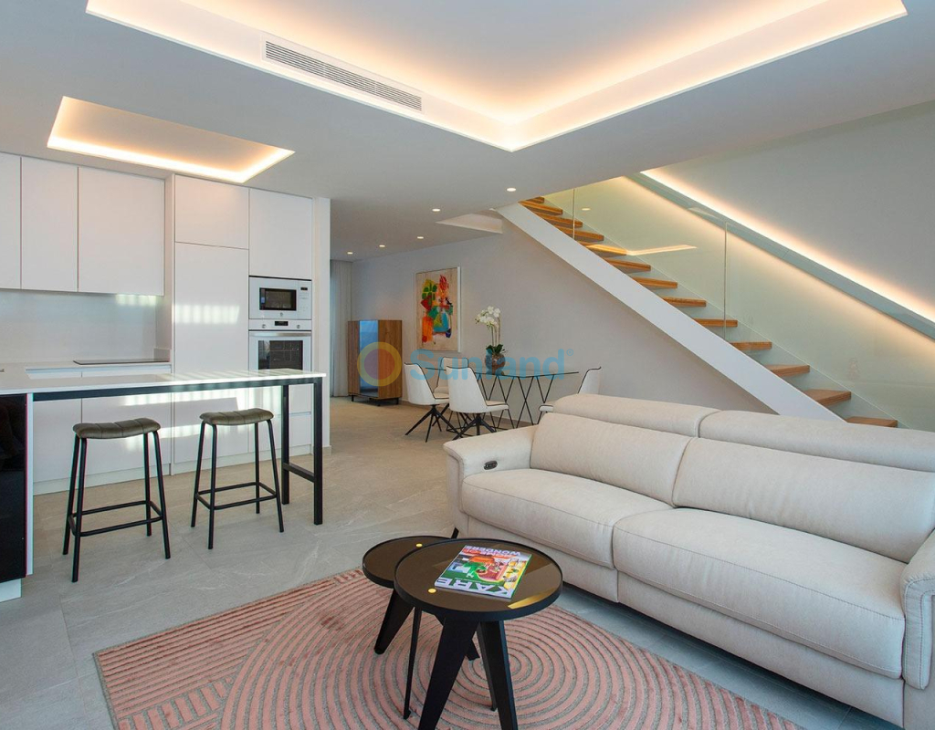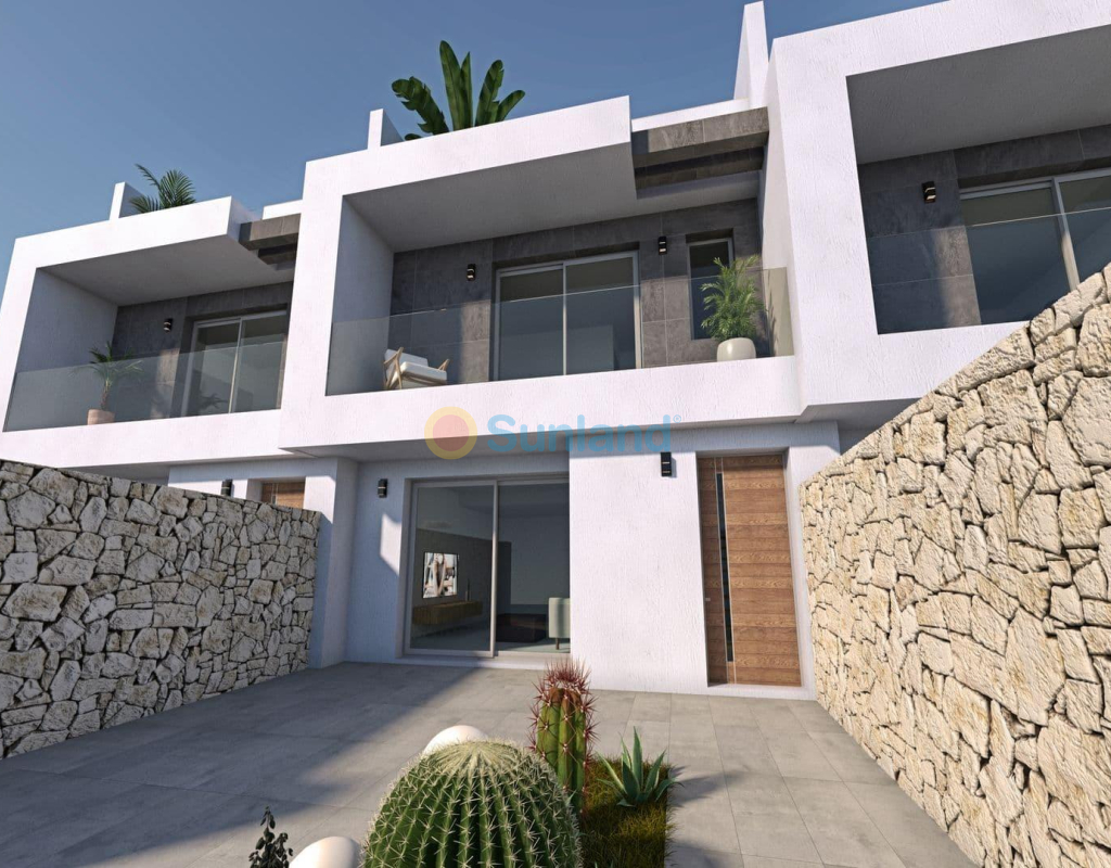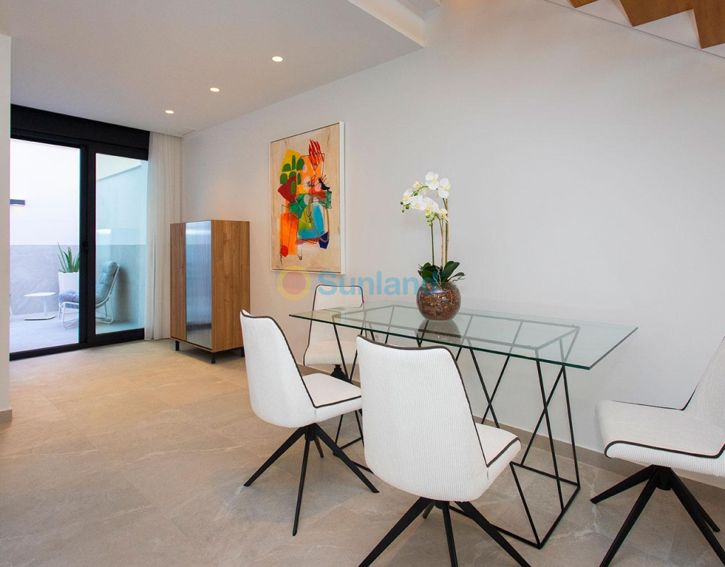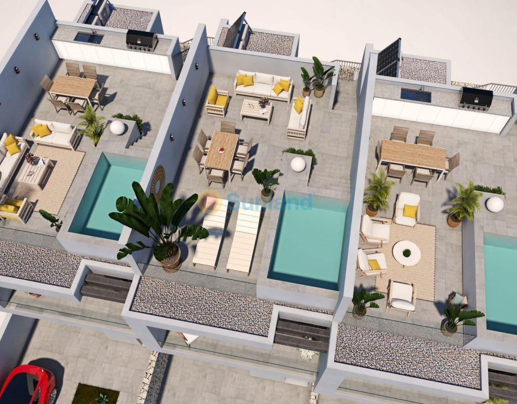 ADOSADOS DE OBRA NUEVA EN TORRE DE LA HORADADA Proyecto de obra nueva que destaca por su diseño exterior, una combinación de líneas puras y elementos revestidos, que dan un estilo único, moderno y elegante a esta vivienda en primera línea de playa. Con orientación sureste y ubicada en una zona residencial consolidada, la convierte en una vivienda ideal para disfrutar de la vida mediterránea. Su distribución interior también merece especial atención, detalles que han sido cuidadosamente pensados para proporcionar el máximo confort a sus propietarios y realzar la estética del espacio. Así, en la planta principal se ha creado un espacio "abierto y luminoso" donde salón, comedor y cocina se comunican a través de puertas correderas con un patio interior para uso y disfrute al aire libre durante todo el año. La sencillez es la clave de esta colección. De nuevo, con una sencilla estructura metálica blanca y barandilla de cristal, la escalera se convierte en el complemento perfecto para mantener la luminosidad y amplitud desde la entrada. Un dormitorio con acceso al patio y un baño completan la distribución de esta planta. A este adosado aún le espera una parte muy especial: su planta de arriba. Subiendo las escaleras se llega a un espacio chill out, antesala del solarium: un acogedor rincón con zona de lectura y escritorio. Este rellano multifuncional da paso a dos amplios dormitorios, uno de ellos con terraza privada y ambos comparten un elegante baño con sus 10m2 de superficie. Torre de la Horadada se encuentra al sur de Alicante en una preciosa ubicación en la costa. Las hermosas playas de Torre de la Horadada y Mil Palmeras tienen arena fina hermoso paseo marítimo. Hay un montón de restaurantes, bares y tiendas, también deportes acuáticos, buceo y snorkel. Está bien comunicado a sólo 40 minutos de los aeropuertos de Alicante y Murcias Corvera, con grandes centros comerciales y múltiples campos de golf a poca distancia.