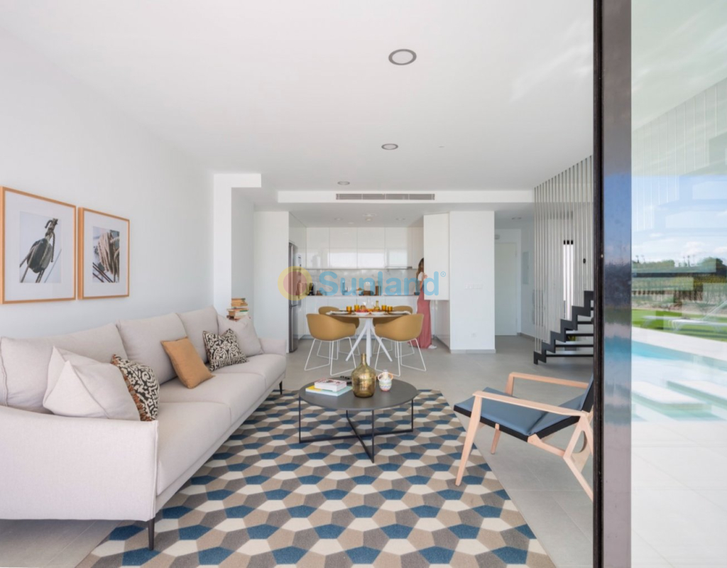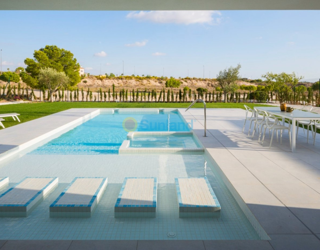 VILLAS DE OBRA NUEVA EN ALTAONA GOLF RESORT, MURCIA Residencial de obra nueva de hermosas villas en Altaona Golf resort, Murcia. Situado en un entorno privilegiado donde podemos vivir tranquilamente, en contacto con la naturaleza y la montaña, conseguimos calidad de vida, aire puro y espacios abiertos. Villa de lujo de nueva construcción con cocina abierta, 3 dormitorios, 3 baños más un aseo, jardín privado con piscina, terraza, solarium y sótano. Exclusivo residencial de Obra Nueva situado en Altaona Golf a tan solo 15 minutos en coche del centro de Murcia capital y a 20 minutos de las playas podrá disfrutar de la tranquilidad y seguridad que ofrece el Campo de Golf que cuenta con 18 hoyos y la comodidad de vivir cerca de todos los servicios. El aeropuerto de Murcias Corvera a solo 15 minutos en coche.