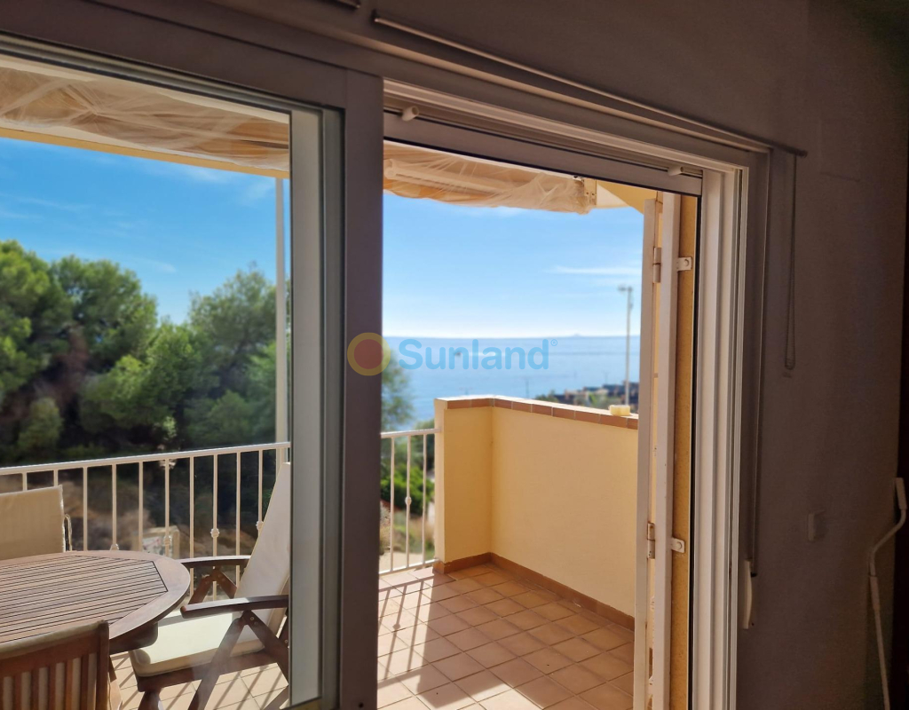 Apartamento primera linea con estupendas vistas al mar en Aguamarina en 1ª planta. Vivienda de 80 m2, con 2 dormitorios y 1 baño, salón con acceso a terraza, cocina independiente con lavadero. El apartamento se vende con muebles. Residencial con piscina comunitaria, el precio incluye la plaza de aparcamiento en el garaje subterráneo y el trastero. ¡Una maravillosa casa de vacaciones en la costa mediterránea, para la familia o como inversión!