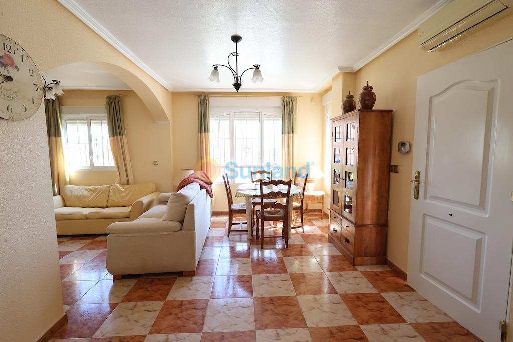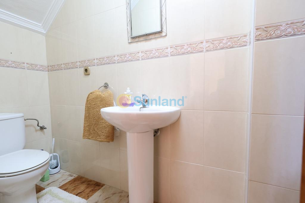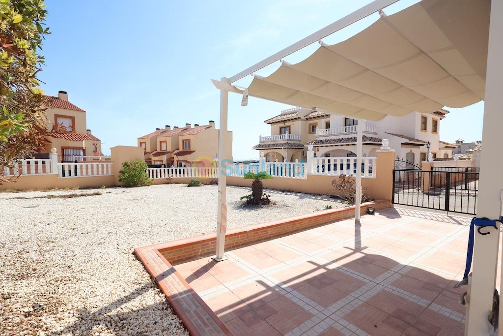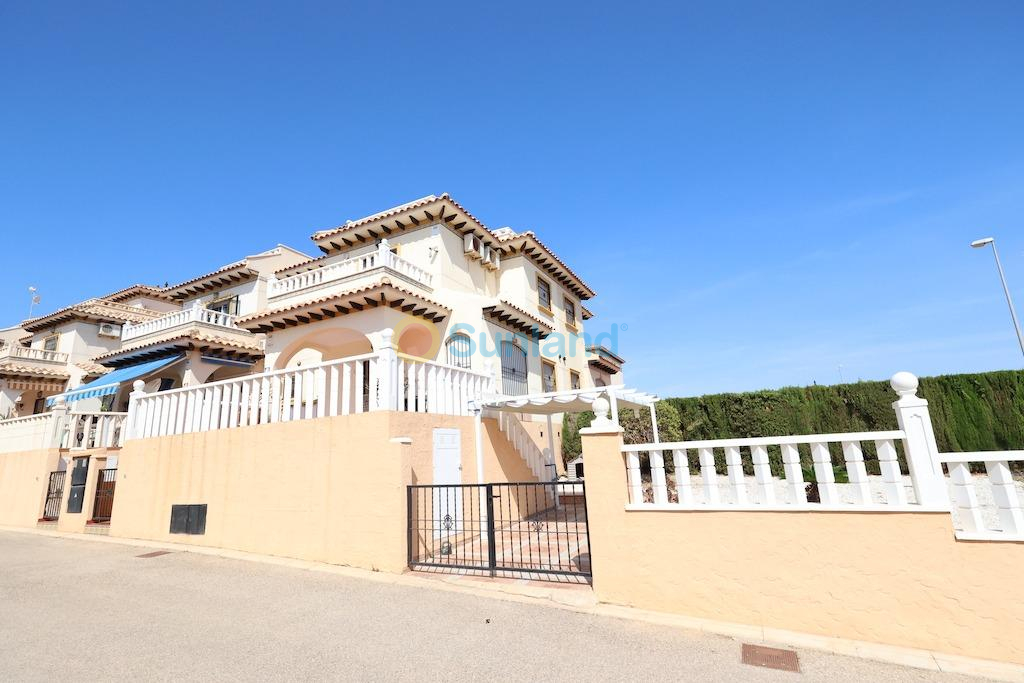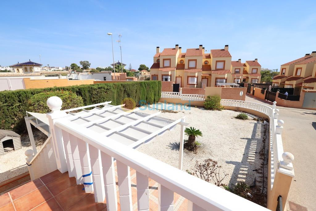 Lomas de Cabo Roig, Adosado en esquina orientación sur con vistas al mar y gran parcela de 130 m2 con posibilidad de construir tu propia piscina, la vivienda se distribuye en 2 plantas mas solarium de 97 m2 construidos, en la planta baja se encuentra una gran terraza de unos 14 m2 cocina americana, baño con ducha y un gran salón comedor, en la planta primera se encuentran los 2 dormitorios el dormitorio principal con su propia terraza con vistas al mar y un baño completo con bañera, y el solarium de unos 18 m2 con vistas al mar, la parcela tiene su entrada para el coche y dispone de un gran trastero, la vivienda dispone de aire acondicionado y se vende amueblada, el residencial cuenta con piscina comunitaria.