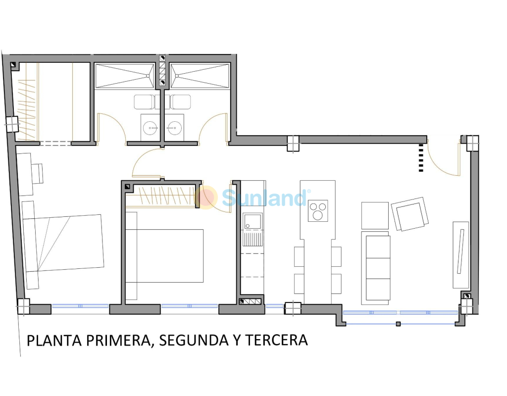 APARTAMENTOS DE OBRA NUEVA EN SAN PEDRO DEL PINATAR Residencial de obra nueva de apartamentos modernos en San Pedro Del Pinatar. Apartamentos de 2 dormitorios, 2 baños, cocina americana con salón, terrazas, armarios empotrados, baños completos. Residencial con piscina comunitaria situado a tan solo 150m de la playa. Aparcamiento subterráneo y trasteros opcionales con coste adicional. La ubicación privilegiada de San Pedro del Pinatar en el Mar Menor y la costa mediterránea atrae a aquellos con un interés en la navegación y los deportes acuáticos, proporcionando amarres en el puerto deportivo y clubes náuticos, mientras que las playas y los baños de barro naturales atraen a aquellos que buscan sol seguro, mar y arena. San Pedro del Pinatar tiene una comunidad establecida y ofrece una excelente gama de actividades, incluyendo piscina cubierta e instalaciones deportivas, así como un programa de actividades sociales durante todo el año por el agradable clima invernal. Los beneficios de los baños de barro, típicos de la región, o las tranquilas aguas del Mar Menor, han favorecido el crecimiento de Lo Pagán, que actualmente cuenta con todo tipo de comodidades. Además, cuenta con una excelente ubicación, a tan sólo 5 minutos del Centro Comercial Dos Mares. El aeropuerto de Murcia/Corvera se encuentra a 30 minutos y el de Alicante a una hora en coche.