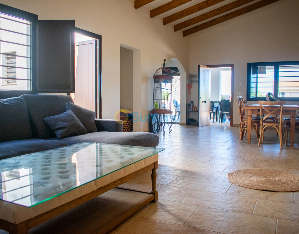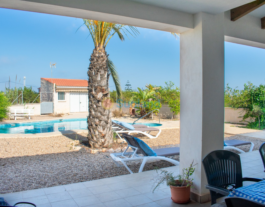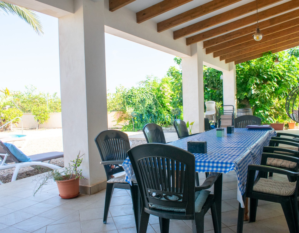 Esta villa independiente, ubicada en una tranquila finca de 3.996 m², ofrece el equilibrio perfecto entre amplitud, comodidad y privacidad. Con 167 m² construidos en una sola planta, esta vivienda unifamiliar ha sido recientemente reformada, restaurando sus materiales originales y actualizándola para un estilo de vida moderno. Está lista para entrar a vivir sin necesidad de realizar reformas. La villa cuenta con 3 amplios dormitorios, un espacioso salón ideal para reuniones familiares y un baño con acceso directo desde el interior de la casa. Además, incluye un práctico patio con lavadero y despensa, lo que añade funcionalidad a la vivienda. La propiedad destaca por su gran espacio exterior. Un porche cubierto ofrece un área perfecta para relajarse o disfrutar de comidas al aire libre. La zona ajardinada cuenta con una piscina privada de forma irregular, ideal para refrescarse en los días más calurosos. Además, un segundo baño con acceso exterior, en la zona de la piscina, añade comodidad para los días de piscina y actividades al aire libre. La villa se encuentra en un entorno tranquilo, lo que la convierte en el lugar ideal para relajarse y disfrutar de la naturaleza. Perfecta para quienes buscan una vida tranquila en un entorno amplio y natural, esta villa es una excelente opción tanto para residencia habitual como para escapadas de fin de semana. Clima: El clima en la Costa Blanca, a menudo considerado como el mejor de Europa, hace posible un estilo de vida muy sociable y saludable,  al aire libre, marcado por instalaciones deportivas y de ocio, con ciudades turísticas, excitantes y cosmopolitas, que destacan por la prestación de servicios máxima categoría, algunos de ellos exclusivos, considerados de auténtico lujo. Todos ellos destinados a un cliente exigente, que busca calidad y cercanía La Costa Blanca cuenta con más de 300 días de sol al año. Un paraíso con excelentes conexiones a toda Europa. El Aeropuerto de Alicante-Elche cuenta con unas modernas instalaciones y con un fácil y cómodo acceso desde cualquier punto de la provincia. Entorno: La Costa Blanca sigue atrayendo a personas de toda Europa, y de otros lugares del mundo, porque ofrece una calidad de vida única en un hermoso entorno a orillas del mar Mediterráneo, rodeado de montañas y de una exuberante vegetación. Además de los campos de golf y los puertos deportivos que podrás disfrutar por toda la costa, la zona también ofrece la posibilidad de esquiar en la cercana Sierra Nevada, Javalambre o Valdelinares, unos  paraísos para amantes de los deportes de invierno, con hermosos paisajes naturales. La Costa Blanca ofrece un estilo de vida singularmente rico, donde las mejores playas y calas del Mediterráneo se combinan con un interior repleto de montañas y pueblos que esconden cultura y monumentos históricos únicos en el mundo. Creemos que tu confianza merece un trato excepcional. Estaremos a tu lado siempre que nos necesites.  Tenemos un regalo para ti:   Le ayudamos a convertir su nueva propiedad en la casa de tus sueños, le acompañamos a una una visita técnica del departamento de diseño a la vivienda, donde nuestro equipo técnico le aconsejará sobre las posibilidades de mejora y decoración de su propiedad. Totalmente gratis!!   IMPORTANTE!! Recuerda que nuestros servicios NO incrementan NUNCA el precio final de la vivienda a nuestros clientes. Nuestra experiencia en el sector nos convertirá en tu aliado, un asesor de confianza que te ayudará a elegir la casa de tus sueños en la mejor zona, informarte sobre el precio de mercado de los inmuebles en los que estás interesado, las calidades empleadas...todo la información imprescindible y objetiva para que tu experiencia sea totalmente satisfactoria. Nuestra agencia pertenece a un grupo  de empresas consolidadas y especializadas todas ellas en el sector del hogar; arquitectura, interiorismo, mobiliario, asesoramiento en la compra venta de bienes raíces, etc... Estos recursos propios nos permiten ofrecer unos servicios únicos y exclusivos a nuestros clientes.
