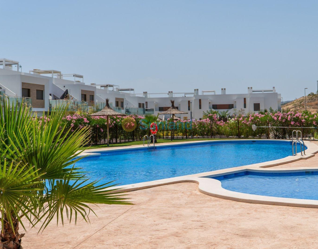 RESIDENCIAL DE OBRA NUEVA DE BUNGALOW EN VISTABELLA Residencial de obra nueva de bungalows de diseño moderno en Vistabella. Modernos bungalows de 2 y 3 dormitorios, cocina americana y salón, armarios empotrados, plaza de garaje. Los bungalows de planta baja disponen de jardín privado y los de planta alta de solarium privado. El residencial cuenta con jardines comunitarios muy bien diseñados con una preciosa piscina comunitaria. Estos preciosos y espaciosos apartamentos están siendo construidos con productos y materiales de primera calidad. En Vistabella Golf hay espacio para todos. El campo está diseñado para que cada jugador pueda disfrutarlo de principio a fin. Sus calles onduladas, bunkers estratégicos o lagos son algunas de las características que lo convierten en uno de los diseños más atractivos de la zona, donde cada golpe es un reto y un placer para los sentidos. Los 18 Hoyos de Vistabella Golf, par 72 y más de 6.000 metros de longitud han sido diseñados siguiendo las pautas de los campos modernos con 4 tees de gran amplitud en cada hoyo, calles anchas y bunkers elevados. La casa club y restaurante de Vistabella Golf y los bares y tiendas de la zona se encuentran a 5 minutos a pie. La animada ciudad de San Miguel de Salinas y Los Montesinos están a 5 minutos en coche y las hermosas playas de bandera azul en Guardamar están a sólo 15 minutos en coche. El aeropuerto de Alicante está a 35 minutos y el nuevo aeropuerto de Corvera Murcia está a 45 minutos.