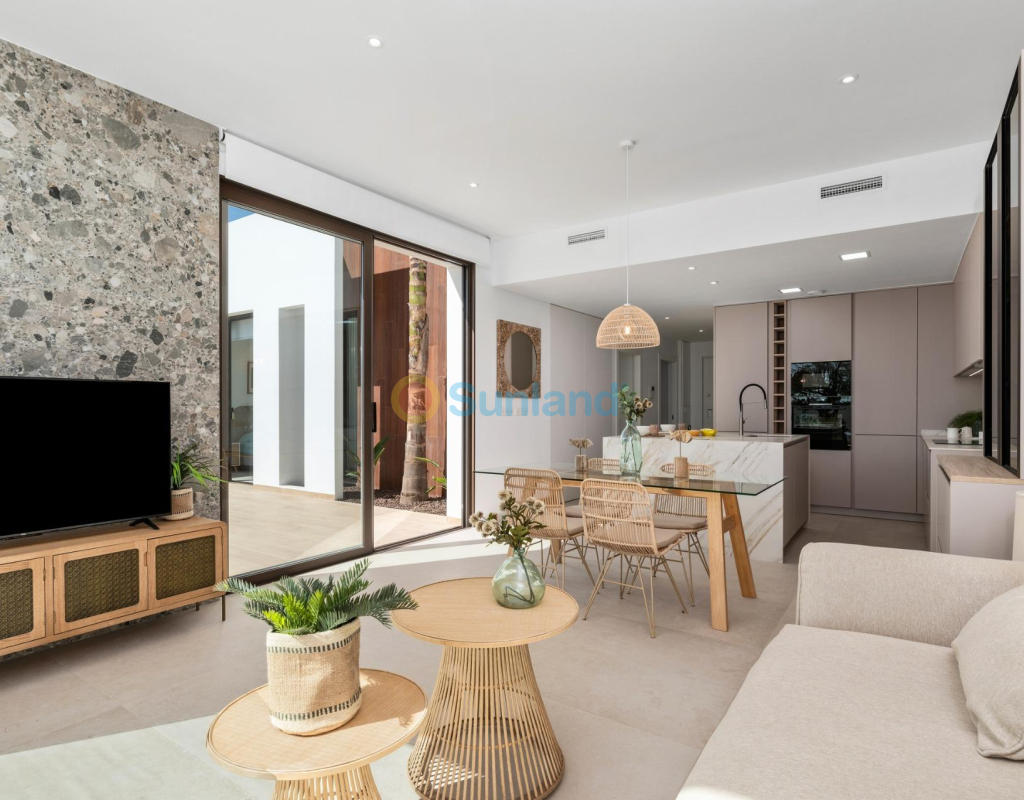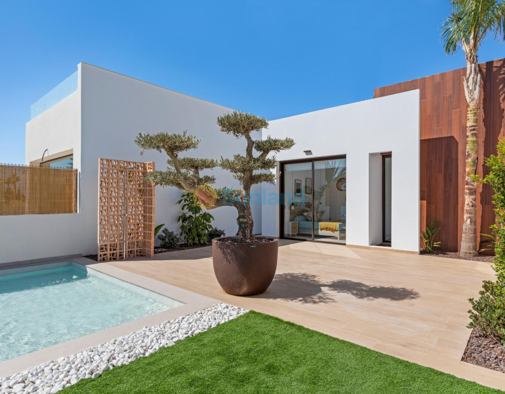 Villas de obra nueva en primera línea de La Serena Golf en Los Alcázares Descubra un nuevo complejo residencial en Los Alcázares, Murcia, con 16 modernos apartamentos y áticos de 2 y 3 dormitorios, además de 8 exclusivas villas. Esta promoción combina a la perfección diseño contemporáneo, alta calidad y funcionalidad. Su inmejorable ubicación ofrece impresionantes vistas a La Serena Golf y al Mar Menor. Lujosas villas con modernas instalaciones Las villas cuentan con 3 amplios dormitorios, 2 baños, cocina americana integrada en el salón, armarios empotrados, una gran terraza, piscina privada y plaza de aparcamiento. Algunas unidades también cuentan con un sótano, y un solarium está disponible como una opción. Ubicación privilegiada junto al campo de golf de La Serena Situado en el corazón del prestigioso campo de golf La Serena, conocido por su combinación única de lagos y exuberante vegetación, la zona residencial ofrece un estilo de vida tranquilo. El diseño estratégico del campo de golf incorpora elementos de agua en 16 de sus 18 hoyos, proporcionando una experiencia desafiante pero agradable para los golfistas. El campo se encuentra a poca distancia del centro de Los Alcázares, lo que ofrece el equilibrio perfecto entre tranquilidad y accesibilidad a los servicios locales. Puntos de interés cercanos La Serena Golf: 0 km Playa del Mar Menor: 1 km Aeropuerto de Murcia: 25 km Cartagena: 21 km Centro comercial local: 4 km Aeropuerto de Alicante: 55 km