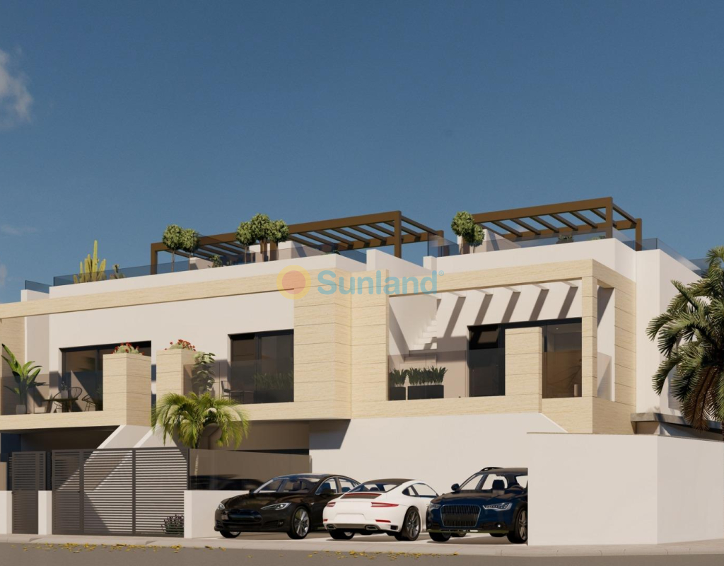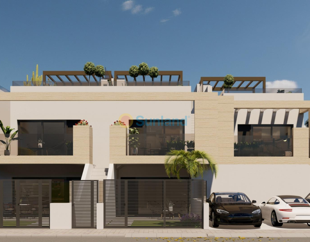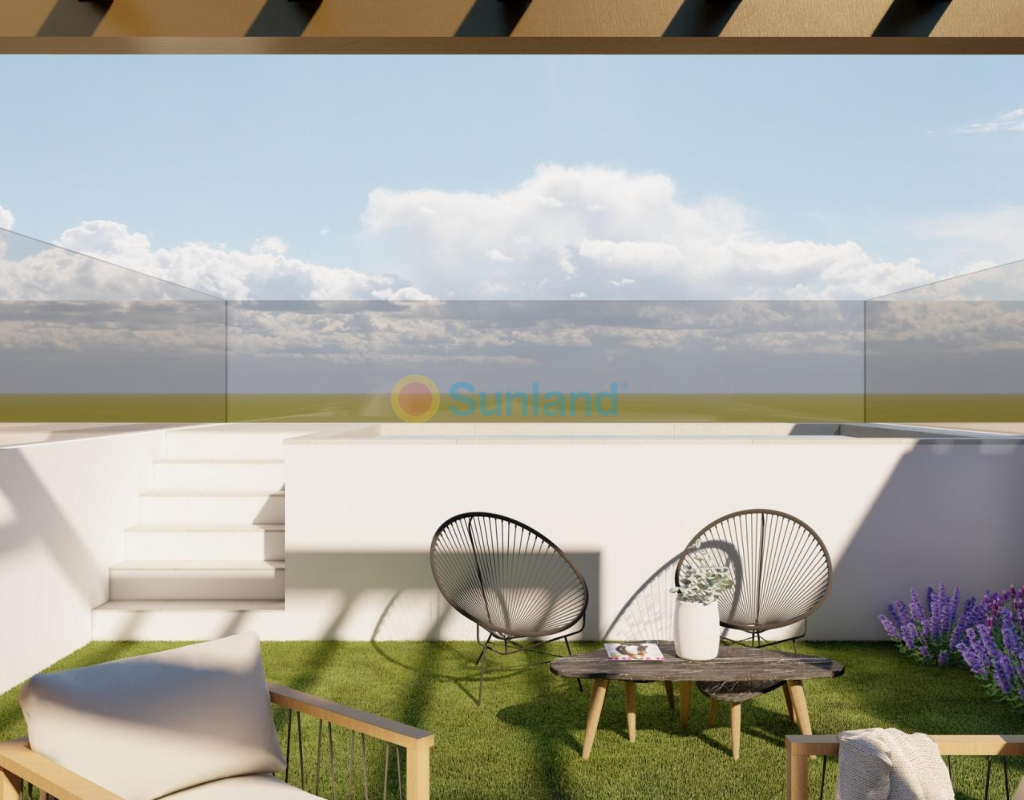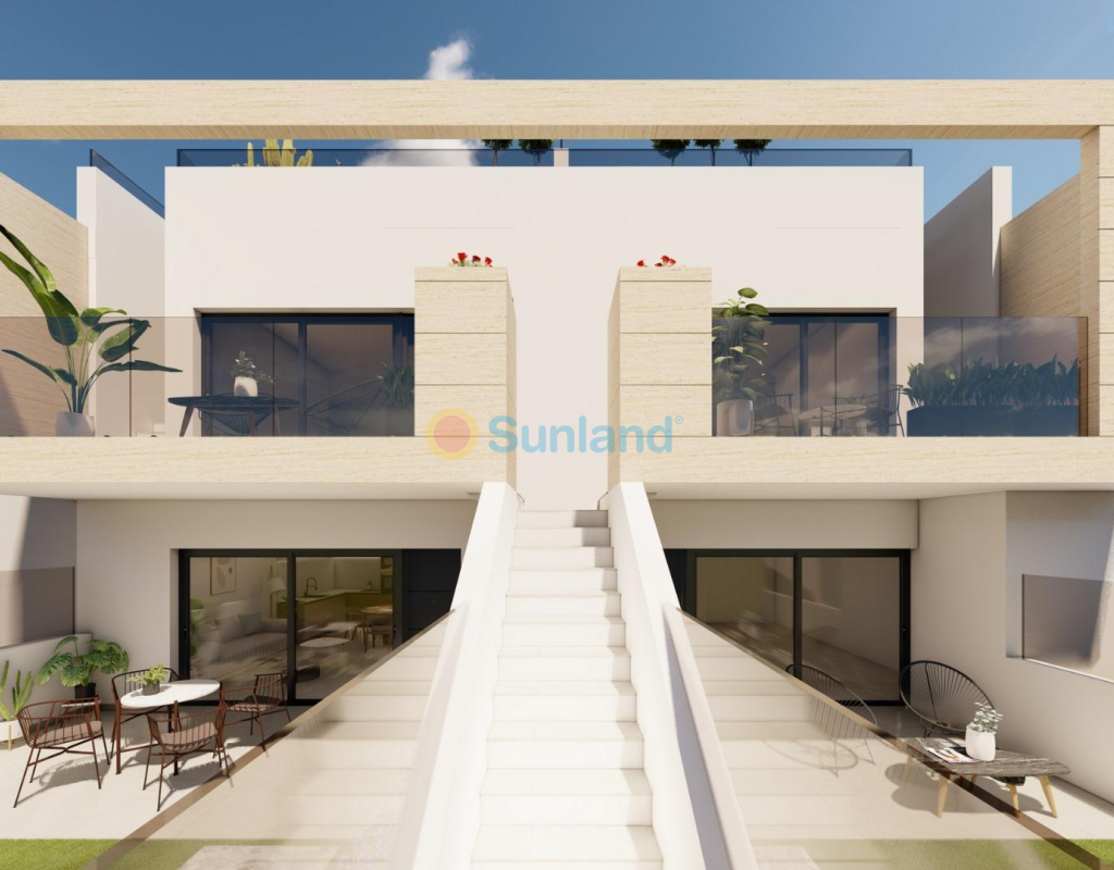 Bungalows de nueva construcción en Lo Pagán: Vida Moderna Cerca de la Playa Ubicación privilegiada en Lo Pagán, San Pedro del Pinatar Descubra el estilo de vida costero perfecto con estos bungalows de nueva construcción en Lo Pagán, una encantadora zona de San Pedro del Pinatar. Situado a sólo 1,2 km de la hermosa Playa de Villa Nanitos, estás a 15 minutos a pie de playas de arena y del icónico Molino Quintín. Esta ubicación privilegiada es perfecta para los amantes de la playa y los deportes náuticos, con clubes náuticos y puertos deportivos en las inmediaciones. Además, todos los servicios esenciales como supermercados, bares y restaurantes están a sólo unos minutos a pie. Características Estos elegantes bungalows disponen de 2 dormitorios, 2 baños, cocina americana y sala de estar. Los bungalows disponen de preinstalación de aire acondicionado, armarios empotrados e interiores modernos. Las unidades de la planta baja cuentan con una amplia terraza con la opción de añadir una piscina privada (disponible a un coste adicional), mientras que las unidades de la planta superior cuentan con un solarium privado con piscina incluida, perfecto para relajarse bajo el sol mediterráneo. Acabados de alta calidad Cada bungalow incluye una plaza de aparcamiento, y todos los apartamentos tienen acabados de alta calidad. Las características incluyen electrodomésticos de cocina Bosch, persianas eléctricas, pre instalación de aire acondicionado por conductos, baños totalmente equipados e iluminación LED tanto en el interior como en el exterior. Ideal para vivir todo el año Lo Pagán ofrece un estilo de vida tranquilo con una comunidad acogedora y establecida. Los residentes pueden disfrutar de actividades durante todo el año gracias al suave clima invernal de la región. La zona cuenta con piscinas cubiertas, instalaciones deportivas y una gran variedad de eventos sociales. Los baños de barro natural y las tranquilas aguas del Mar Menor contribuyen a su atractivo, convirtiéndolo en un destino privilegiado para el bienestar y la relajación. Atracciones cercanas Centro Comercial Dos Mares: 5 minutos en coche Aeropuerto de Murcia (Corvera): 30 minutos en coche Aeropuerto de Alicante: 1 hora en coche Los campos de golf y los puertos deportivos se encuentran a poca distancia en coche, lo que la convierte en una ubicación excelente tanto para el ocio como para la comodidad.