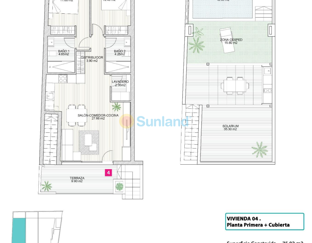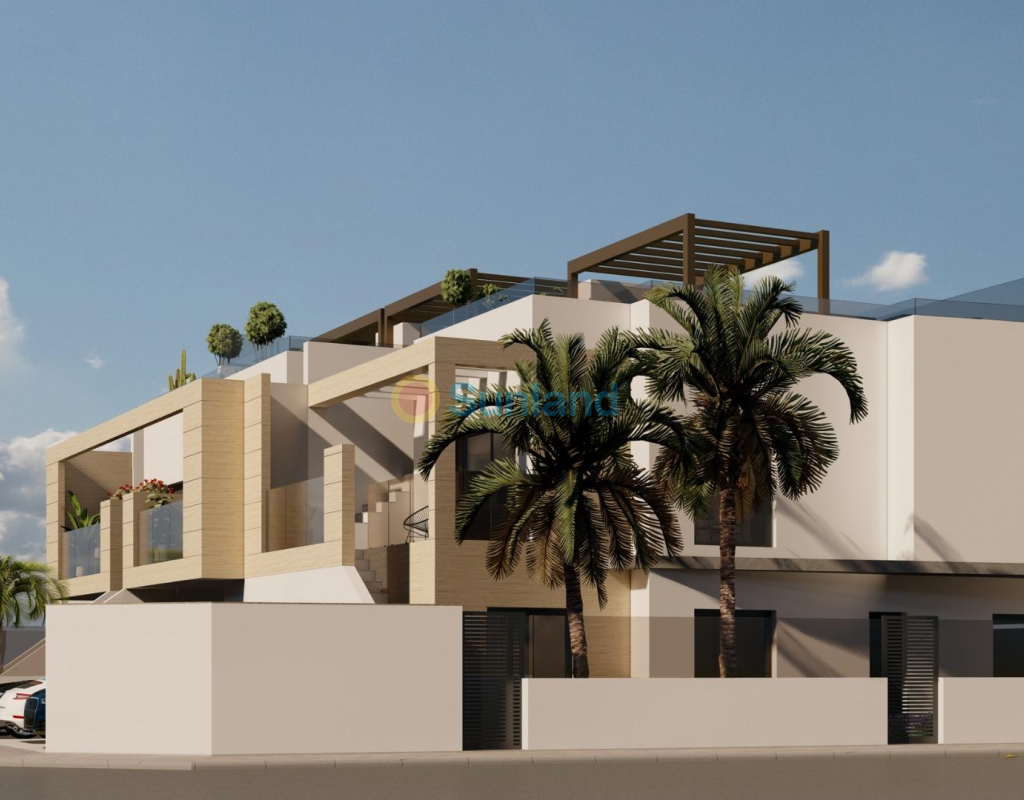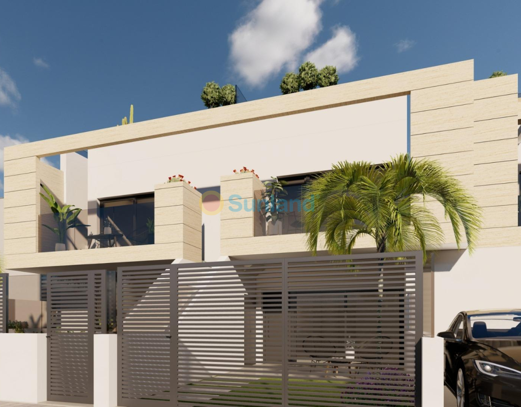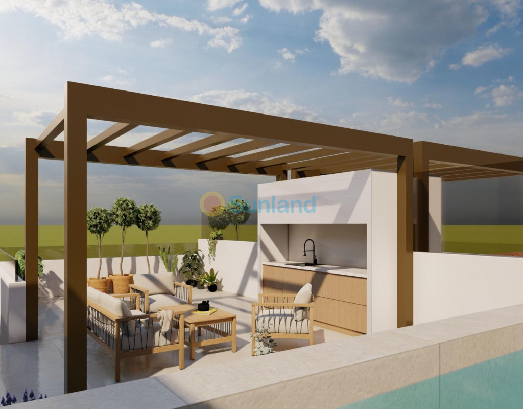 Bungalows de nueva construcción en Lo Pagán: Vida Moderna Cerca de la Playa Ubicación privilegiada en Lo Pagán, San Pedro del Pinatar Descubra el estilo de vida costero perfecto con estos bungalows de nueva construcción en Lo Pagán, una encantadora zona de San Pedro del Pinatar. Situado a sólo 1,2 km de la hermosa Playa de Villa Nanitos, estás a 15 minutos a pie de playas de arena y del icónico Molino Quintín. Esta ubicación privilegiada es perfecta para los amantes de la playa y los deportes náuticos, con clubes náuticos y puertos deportivos en las inmediaciones. Además, todos los servicios esenciales como supermercados, bares y restaurantes están a sólo unos minutos a pie. Características Estos elegantes bungalows disponen de 2 dormitorios, 2 baños, cocina americana y sala de estar. Los bungalows disponen de preinstalación de aire acondicionado, armarios empotrados e interiores modernos. Las unidades de la planta baja cuentan con una amplia terraza con la opción de añadir una piscina privada (disponible a un coste adicional), mientras que las unidades de la planta superior cuentan con un solarium privado con piscina incluida, perfecto para relajarse bajo el sol mediterráneo. Acabados de alta calidad Cada bungalow incluye una plaza de aparcamiento, y todos los apartamentos tienen acabados de alta calidad. Las características incluyen electrodomésticos de cocina Bosch, persianas eléctricas, pre instalación de aire acondicionado por conductos, baños totalmente equipados e iluminación LED tanto en el interior como en el exterior. Ideal para vivir todo el año Lo Pagán ofrece un estilo de vida tranquilo con una comunidad acogedora y establecida. Los residentes pueden disfrutar de actividades durante todo el año gracias al suave clima invernal de la región. La zona cuenta con piscinas cubiertas, instalaciones deportivas y una gran variedad de eventos sociales. Los baños de barro natural y las tranquilas aguas del Mar Menor contribuyen a su atractivo, convirtiéndolo en un destino privilegiado para el bienestar y la relajación. Atracciones cercanas Centro Comercial Dos Mares: 5 minutos en coche Aeropuerto de Murcia (Corvera): 30 minutos en coche Aeropuerto de Alicante: 1 hora en coche Los campos de golf y los puertos deportivos se encuentran a poca distancia en coche, lo que la convierte en una ubicación excelente tanto para el ocio como para la comodidad.
