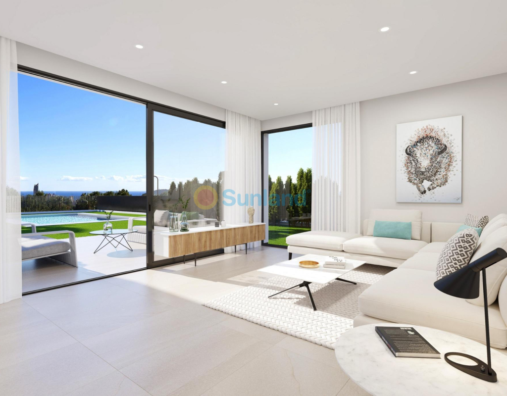 Residencial de obra nueva de villas independientes en Sierra Cortina, Finestrat. Viviendas con 3 o 4 dormitorios y 3 elegantes cuartos de baño para proporcionar confort y privacidad a sus habitantes. El amplio salón-comedor, con su moderna cocina integrada, será el corazón de la casa, donde familiares y amigos podrán reunirse y disfrutar de momentos inolvidables. Algunas unidades dispondrán de sótano que dará más amplitud a la vivienda y donde se podrá instalar una zona de gimnasio, home cinema o cualquier uso que los futuros propietarios quieran darle. La tecnología punta será una característica destacada de esta casa, ya que estará totalmente automatizada gracias a un avanzado sistema de domótica. El jardín privado será un oasis de tranquilidad donde podrá relajarse y disfrutar de la naturaleza. Además, la propiedad contará con una piscina privada, ideal para refrescarse en los días de verano. Vivienda diseñada para un óptimo ahorro de energía aprovechando los recursos naturales como la orientación, las ventilaciones cruzadas, la protección de vientos y las láminas de agua. Instalación domótica con pantalla táctil, control de iluminación interior, comandos actuadores de persianas, control de encendido/apagado de aire acondicionado, detección de inundación e incendio, y video portero incorporado a la domótica. Instalación completa de aire acondicionado por conductos. Persianas motorizadas domotizadas en zonas de descanso. Puerta de seguridad de entrada a vivienda en madera de iroko macizo panelado por ambas caras. Césped y arbolado natural con riego automático e iluminación exterior. Grifería marca Hansgrohe, inodoros suspendidos y muebles de baño incluidos. Las viviendas de obra nueva ofrecerán un espacio cómodo y funcional para toda la familia. También dispondrá de una plaza de aparcamiento privada para mayor comodidad. En definitiva, estas viviendas de obra nueva en Sierra Cortina serán una residencia perfecta para aquellos que buscan un estilo de vida cómodo y lujoso. Esta magnífica vivienda de obra nueva estará situada en la exclusiva urbanización Sierra Cortina, a tan sólo 5 minutos de Benidorm.