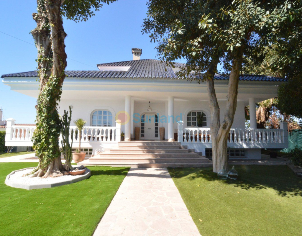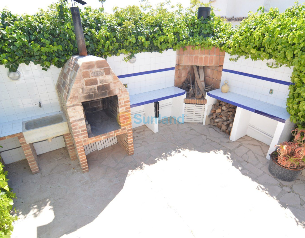 Descubre este espectacular chalet independiente de diseño mediterraneo con 520 m² construido sobre una parcela de 800 m² con piscina privada y orientación sureste. Una vivienda diseñada para disfrutar del espacio, la comodidad y vistas únicas. En la planta principal, encontrarás un dormitorio con baño en suite y armarios empotrados, una amplia cocina, dos salones con chimenea, un aseo y una habitación ideal como estudio o despacho. La planta superior alberga dos dormitorios muy espaciosos, ambos con armarios empotrados, baño completo y acceso a terrazas privadas. Desde la terraza principal, podrás deleitarte con vistas a la piscina y la laguna salada de Torrevieja. El sótano ofrece un espacio multifuncional con un dormitorio adicional, baño, bodega con salón, cuarto de lavandería y zona de lavado. Además, la propiedad dispone de un garaje cerrado y otro en el exterior para mayor comodidad. Características destacadas: Parcela de 800 m² con piscina privada. 4 dormitorios y 4 baños Bodega y salón en sótano. Garaje doble: cerrado y exterior. Vistas a la laguna salada de Torrevieja. IBI: 1200€/ AÑO Una vivienda que combina amplitud, funcionalidad y un entorno inmejorable. ¡No dejes pasar esta oportunidad!