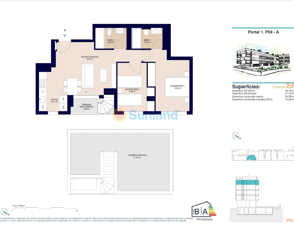 Residencial de nueva construcción en Alicante, con vistas abiertas a la ciudad La casa de sus sueños en una ubicación privilegiada Descubra su nuevo hogar en el codiciado barrio de San Agustín de Alicante, donde la vida moderna se encuentra con paisajes pintorescos. Este exclusivo complejo residencial, situado cerca de Pau II, ofrece 47 apartamentos bellamente diseñados con 2, 3 ó 4 dormitorios. La comunidad cuenta con una piscina comunitaria, exuberantes jardines, e incluye una plaza de garaje y trastero para mayor comodidad. Servicios exclusivos para un estilo de vida confortable Disfrute de una serie de servicios diseñados para mejorar su calidad de vida. Los áticos del complejo cuentan con solariums privados accesibles directamente desde los apartamentos, que ofrecen impresionantes vistas de Alicante. Entre las comodidades adicionales se incluye un aparcamiento seguro para bicicletas, que facilita la adopción de un estilo de vida activo. Su nuevo hogar dispone de calefacción centralizada por aerotermia para una mayor eficiencia energética y confort durante todo el año, con aire acondicionado integrado (frío/calor) distribuido por conductos. La carpintería de PVC o aluminio de alta calidad con aislamiento térmico y acústico garantiza un entorno tranquilo y climáticamente eficiente. Convenientemente conectado con todo lo que necesitas Situada entre Gran Vía y Vía Parque, la promoción ofrece una excelente conectividad con el centro de la ciudad y las principales vías de comunicación como la autopista A7. La céntrica ubicación es ideal para familias y profesionales, con nueve instituciones educativas de todos los niveles muy cerca. Para las necesidades diarias, encontrará cerca cuatro grandes supermercados y el Centro Comercial Isla de Corfú, que ofrece gimnasios, restaurantes y una gran variedad de tiendas. Todo lo que necesita está a poca distancia, lo que le permite dejar su coche en casa. Un barrio rico en accesibilidad y belleza natural El barrio de San Agustín se asienta sobre una suave colina, ofreciendo vistas panorámicas del perfil de la ciudad, el Monte Benacantil y las montañas circundantes. El clima mediterráneo de Alicante hace que la vida al aire libre sea un placer durante todo el año, con un montón de espacios verdes y opciones de ocio cerca. Distancias clave: Centro de Alicante: 2 km Aeropuerto Alicante-Elche: 14 km Playa de San Juan: 6 km Campo de golf de Alicante: 7 km Puerto de Alicante: 5 km Experimente lo mejor de la vida alicantina El excepcional clima de Alicante, su vibrante cultura y sus excelentes infraestructuras la convierten en una de las ciudades españolas más deseadas para vivir. Esta nueva promoción residencial en San Agustín combina un diseño elegante con una ubicación inmejorable, lo que la convierte en el lugar ideal para su próxima etapa. Póngase en contacto con nosotros hoy mismo para concertar una visita y hacer suya esta casa de ensueño.