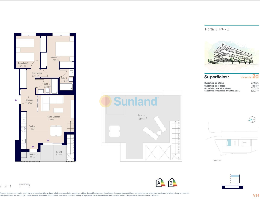 Residencial de nueva construcción en San Agustín, Alicante, con impresionantes vistas a la ciudad y al mar La casa de sus sueños en una ubicación privilegiada con vistas panorámicas Disfruta de unas bonitas vistas al mar y al castillo. Descubra su nuevo hogar en el codiciado barrio de San Agustín de Alicante, donde la vida moderna se encuentra con paisajes pintorescos. Este exclusivo complejo residencial, situado cerca de Pau II, ofrece 28 apartamentos bellamente diseñados con 2 ó 3 dormitorios. La comunidad cuenta con una piscina comunitaria, exuberantes jardines y zona infantil, e incluye una plaza de garaje y trastero para mayor comodidad. Servicios exclusivos para un estilo de vida confortable Disfrute de una serie de servicios diseñados para mejorar su calidad de vida. Siete áticos del complejo cuentan con solariums privados accesibles directamente desde los apartamentos, que ofrecen impresionantes vistas de Alicante, el mar y del emblemático Castillo de Santa Bárbara. Entre las comodidades adicionales se incluye un aparcamiento seguro para bicicletas, que facilita la adopción de un estilo de vida activo. Su nuevo hogar dispone de calefacción centralizada por aerotermia para una mayor eficiencia energética y confort durante todo el año, con aire acondicionado integrado (frío/calor) distribuido por conductos. La carpintería de PVC o aluminio de alta calidad con aislamiento térmico y acústico garantiza un entorno tranquilo y climáticamente eficiente. Convenientemente conectado con todo lo que necesitas Situada entre Gran Vía y Vía Parque, la promoción ofrece una excelente conectividad con el centro de la ciudad y las principales vías de comunicación como la autopista A7. La céntrica ubicación es ideal para familias y profesionales, con nueve instituciones educativas de todos los niveles muy cerca. Para las necesidades diarias, encontrará cerca cuatro grandes supermercados y el Centro Comercial Isla de Corfú, que ofrece gimnasios, restaurantes y una gran variedad de tiendas. Todo lo que necesita está a poca distancia, lo que le permite dejar su coche en casa. Un barrio rico en accesibilidad y belleza natural El barrio de San Agustín se asienta sobre una suave colina, ofreciendo vistas panorámicas del perfil de la ciudad, el Monte Benacantil y las montañas circundantes. El clima mediterráneo de Alicante hace que la vida al aire libre sea un placer durante todo el año, con un montón de espacios verdes y opciones de ocio cerca. Distancias clave: Centro de Alicante: 2 km Aeropuerto Alicante-Elche: 14 km Playa de San Juan: 6 km Campo de golf de Alicante: 7 km Puerto de Alicante: 5 km Experimente lo mejor de la vida alicantina El excepcional clima de Alicante, su vibrante cultura y sus excelentes infraestructuras la convierten en una de las ciudades españolas más deseadas para vivir. Esta nueva promoción residencial en San Agustín combina un diseño elegante con una ubicación inmejorable, lo que la convierte en el lugar ideal para su próxima etapa. Póngase en contacto con nosotros hoy mismo para concertar una visita y hacer suya esta casa de ensueño.