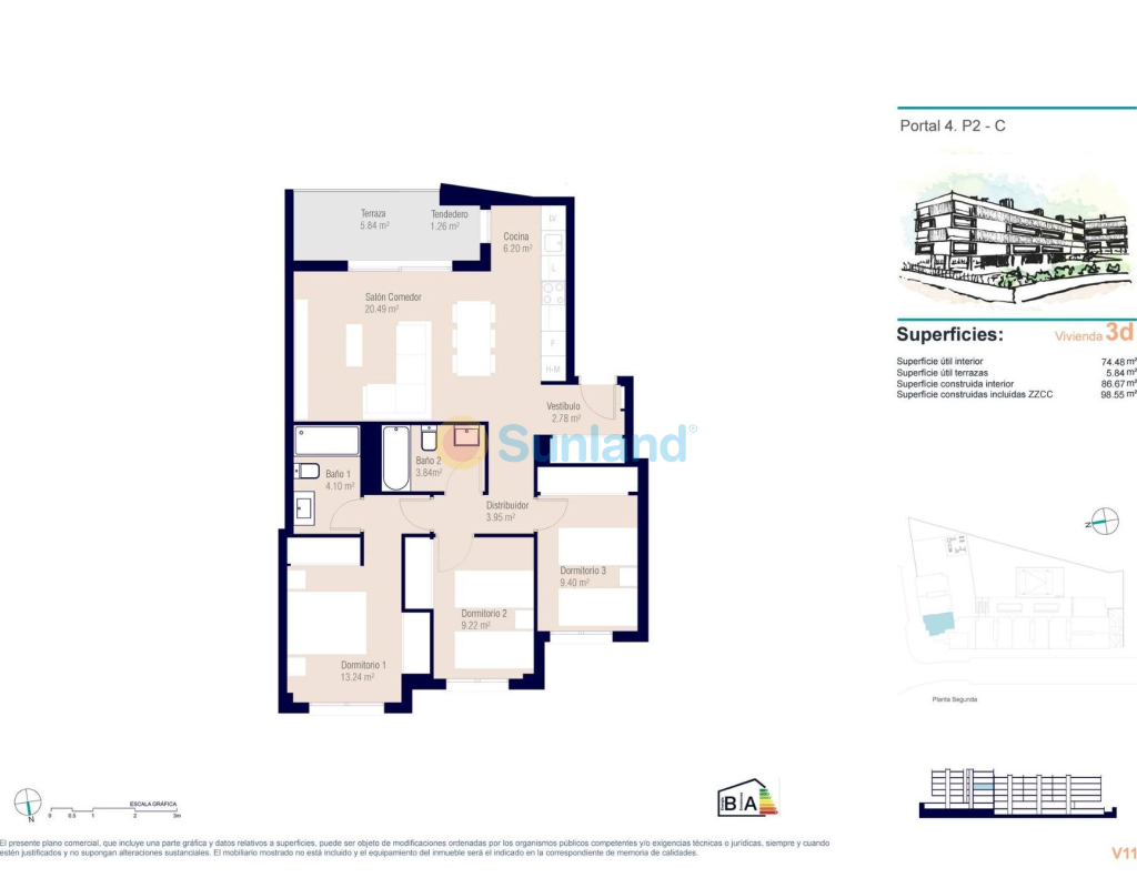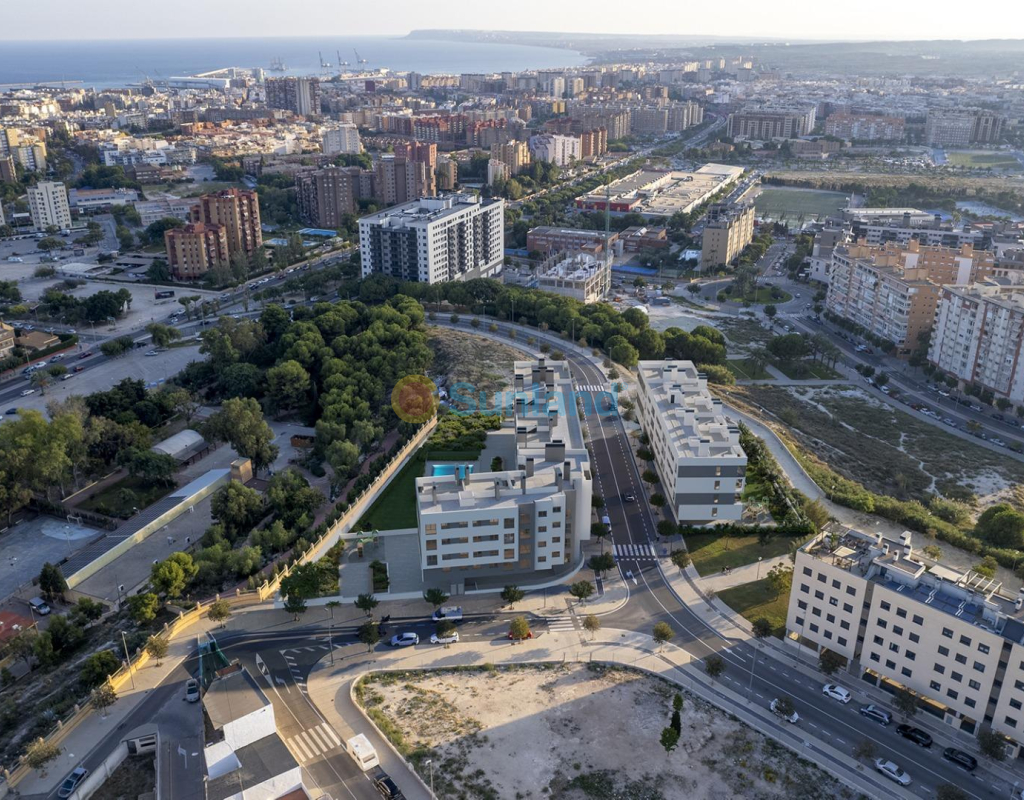 Residencial de nueva construcción en San Agustín, Alicante, con impresionantes vistas a la ciudad La casa de sus sueños en una ubicación privilegiada con vistas panorámicas Descubra su nuevo hogar en el codiciado barrio de San Agustín de Alicante, donde la vida moderna se encuentra con paisajes pintorescos. Este exclusivo complejo residencial, situado cerca de Pau II, ofrece 48 apartamentos bellamente diseñados con 2 ó 3 dormitorios. La comunidad cuenta con una piscina compartida, exuberantes jardines, e incluye una plaza de garaje y trastero para mayor comodidad. Servicios exclusivos para un estilo de vida confortable Disfrute de una serie de servicios diseñados para mejorar su calidad de vida. Nueve áticos del complejo cuentan con solariums privados accesibles directamente desde los apartamentos, que ofrecen impresionantes vistas de Alicante y del emblemático Castillo de Santa Bárbara. Entre las comodidades adicionales se incluye un aparcamiento seguro para bicicletas, que facilita la adopción de un estilo de vida activo. Su nuevo hogar dispone de calefacción centralizada por aerotermia para una mayor eficiencia energética y confort durante todo el año, con aire acondicionado integrado (frío/calor) distribuido por conductos. La carpintería de PVC o aluminio de alta calidad con aislamiento térmico y acústico garantiza un entorno tranquilo y climáticamente eficiente. Convenientemente conectado con todo lo que necesitas Situada entre Gran Vía y Vía Parque, la promoción ofrece una excelente conectividad con el centro de la ciudad y las principales vías de comunicación como la autopista A7. La céntrica ubicación es ideal para familias y profesionales, con nueve instituciones educativas de todos los niveles muy cerca. Para las necesidades diarias, encontrará cerca cuatro grandes supermercados y el Centro Comercial Isla de Corfú, que ofrece gimnasios, restaurantes y una gran variedad de tiendas. Todo lo que necesita está a poca distancia, lo que le permite dejar su coche en casa. Un barrio rico en accesibilidad y belleza natural El barrio de San Agustín se asienta sobre una suave colina, ofreciendo vistas panorámicas del perfil de la ciudad, el Monte Benacantil y las montañas circundantes. El clima mediterráneo de Alicante hace que la vida al aire libre sea un placer durante todo el año, con un montón de espacios verdes y opciones de ocio cerca. Distancias clave: Centro de Alicante: 2 km Aeropuerto Alicante-Elche: 14 km Playa de San Juan: 6 km Campo de golf de Alicante: 7 km Puerto de Alicante: 5 km Experimente lo mejor de la vida alicantina El excepcional clima de Alicante, su vibrante cultura y sus excelentes infraestructuras la convierten en una de las ciudades españolas más deseadas para vivir. Esta nueva promoción residencial en San Agustín combina un diseño elegante con una ubicación inmejorable, lo que la convierte en el lugar ideal para su próxima etapa. Póngase en contacto con nosotros hoy mismo para concertar una visita y hacer suya esta casa de ensueño.