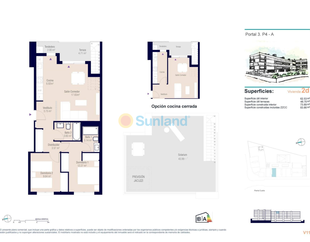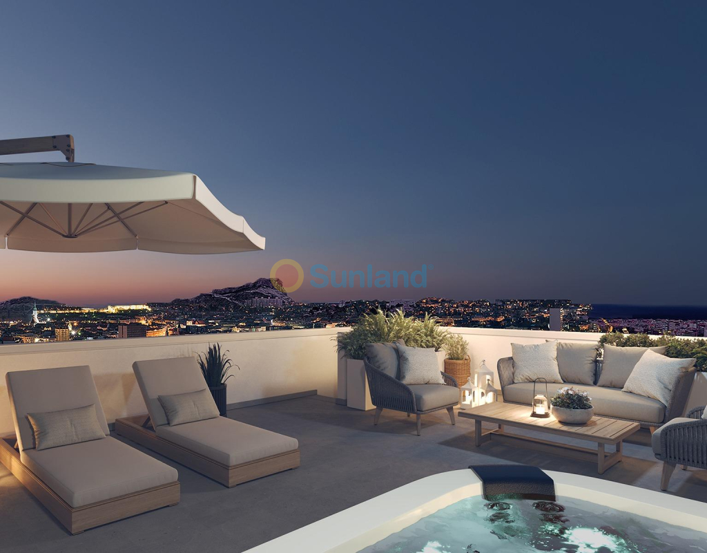 Residencial de nueva construcción en San Agustín, Alicante, con impresionantes vistas a la ciudad La casa de sus sueños en una ubicación privilegiada con vistas panorámicas Descubra su nuevo hogar en el codiciado barrio de San Agustín de Alicante, donde la vida moderna se encuentra con paisajes pintorescos. Este exclusivo complejo residencial, situado cerca de Pau II, ofrece 48 apartamentos bellamente diseñados con 2 ó 3 dormitorios. La comunidad cuenta con una piscina compartida, exuberantes jardines, e incluye una plaza de garaje y trastero para mayor comodidad. Servicios exclusivos para un estilo de vida confortable Disfrute de una serie de servicios diseñados para mejorar su calidad de vida. Nueve áticos del complejo cuentan con solariums privados accesibles directamente desde los apartamentos, que ofrecen impresionantes vistas de Alicante y del emblemático Castillo de Santa Bárbara. Entre las comodidades adicionales se incluye un aparcamiento seguro para bicicletas, que facilita la adopción de un estilo de vida activo. Su nuevo hogar dispone de calefacción centralizada por aerotermia para una mayor eficiencia energética y confort durante todo el año, con aire acondicionado integrado (frío/calor) distribuido por conductos. La carpintería de PVC o aluminio de alta calidad con aislamiento térmico y acústico garantiza un entorno tranquilo y climáticamente eficiente. Convenientemente conectado con todo lo que necesitas Situada entre Gran Vía y Vía Parque, la promoción ofrece una excelente conectividad con el centro de la ciudad y las principales vías de comunicación como la autopista A7. La céntrica ubicación es ideal para familias y profesionales, con nueve instituciones educativas de todos los niveles muy cerca. Para las necesidades diarias, encontrará cerca cuatro grandes supermercados y el Centro Comercial Isla de Corfú, que ofrece gimnasios, restaurantes y una gran variedad de tiendas. Todo lo que necesita está a poca distancia, lo que le permite dejar su coche en casa. Un barrio rico en accesibilidad y belleza natural El barrio de San Agustín se asienta sobre una suave colina, ofreciendo vistas panorámicas del perfil de la ciudad, el Monte Benacantil y las montañas circundantes. El clima mediterráneo de Alicante hace que la vida al aire libre sea un placer durante todo el año, con un montón de espacios verdes y opciones de ocio cerca. Distancias clave: Centro de Alicante: 2 km Aeropuerto Alicante-Elche: 14 km Playa de San Juan: 6 km Campo de golf de Alicante: 7 km Puerto de Alicante: 5 km Experimente lo mejor de la vida alicantina El excepcional clima de Alicante, su vibrante cultura y sus excelentes infraestructuras la convierten en una de las ciudades españolas más deseadas para vivir. Esta nueva promoción residencial en San Agustín combina un diseño elegante con una ubicación inmejorable, lo que la convierte en el lugar ideal para su próxima etapa. Póngase en contacto con nosotros hoy mismo para concertar una visita y hacer suya esta casa de ensueño.
