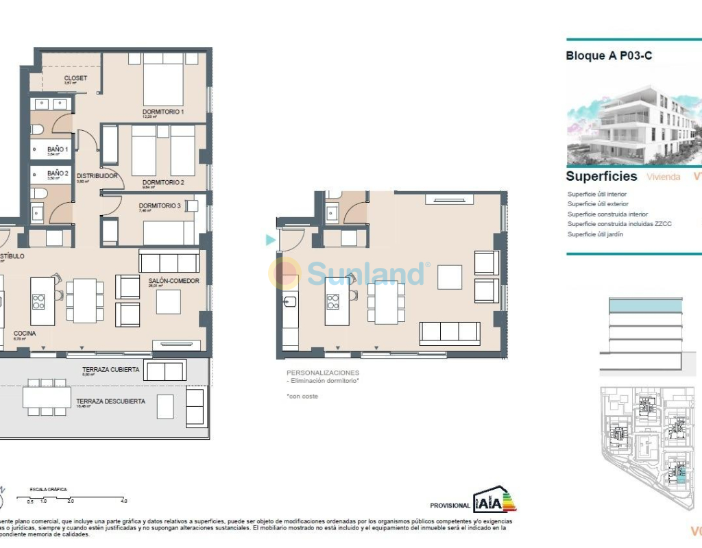 Viviendas exclusivas de obra nueva en Benicàssim: lujo y sostenibilidad junto al Mediterráneo Viviendas Premium adaptadas a tu estilo de vida Descubra un exclusivo proyecto de obra nueva en Benicàssim, que ofrece viviendas de 2, 3 y 4 dormitorios diseñadas para satisfacer sus necesidades. Elija entre residencias en planta baja con amplios jardines, apartamentos luminosos y ventilados en plantas intermedias o áticos premium con impresionantes vistas al mar Mediterráneo y al desierto de Las Palmas. Estas viviendas combinan el confort moderno con la excelencia arquitectónica, garantizando una amplia iluminación natural y ventilación cruzada para lograr un ambiente fresco y acogedor. Servicios modernos para su comodidad Esta comunidad residencial ofrece una amplia gama de servicios para mejorar su calidad de vida: Un garaje subterráneo comunitario con acceso directo desde todos los edificios. Amplios trasteros perfectos para el equipo deportivo o los artículos de temporada. Una piscina con múltiples ambientes y exuberantes zonas ajardinadas. Servicios de conserjería, zonas de calistenia, un gimnasio, un huerto urbano y un espacio comunitario compartido. Personalice su nuevo hogar con personalizaciones opcionales, asegurándose de que cada detalle se ajuste a sus preferencias. Vida sostenible con tecnología avanzada Estas viviendas están equipadas con tecnologías de alta eficiencia para una vida sostenible: Sistemas de agua caliente asistidos por energía solar. Iluminación LED para reducir el consumo de energía. Calefacción aerotérmica centralizada para agua caliente. Otras características adicionales incluyen puertas delanteras reforzadas y un completo sistema de aire acondicionado para el confort durante todo el año. Una ubicación privilegiada en Benicàssim Situada en el barrio premium de Las Villas, también conocido como «La Biarritz del Mediterráneo», esta promoción ofrece una mezcla inigualable de tranquilidad y accesibilidad. Playa: A sólo 700 metros para relajantes paseos junto al mar. Transporte: A 2 km de la estación de tren de Benicàssim y cerca de las conexiones con la autopista AP-7. Acceso a la ciudad: A 12 km de Castellón de la Plana y a 90 km de Valencia. Ocio: A 6 km del Club de Golf Costa de Azahar y a 3 km del Puerto Deportivo de Benicàssim. Compras y Servicios: A 5 km de los principales centros comerciales, colegios, centros sanitarios y complejos deportivos. Vivir en armonía con la naturaleza y la modernidad Benicàssim ofrece una mezcla perfecta de belleza natural y comodidades urbanas. Con sus espacios verdes, opciones recreativas y proximidad a los servicios esenciales, es el lugar ideal para aquellos que buscan un estilo de vida sereno pero conectado. No pierda esta oportunidad de conseguir la casa de sus sueños en una ubicación mediterránea privilegiada. Póngase en contacto con nosotros hoy mismo para obtener más información o para concertar una visita.