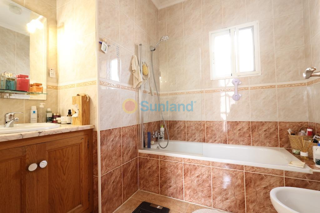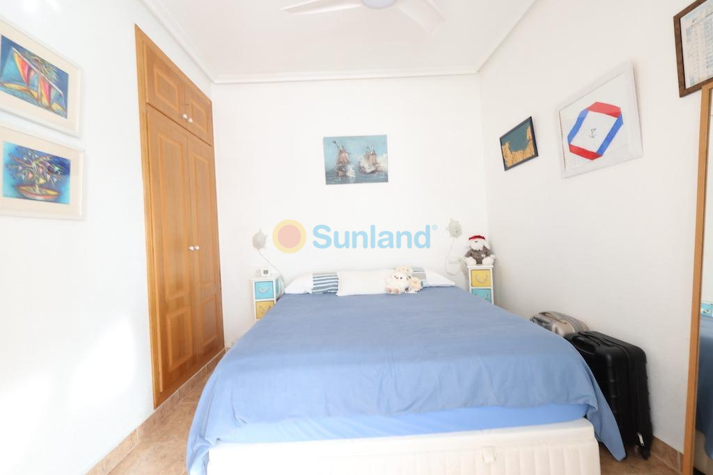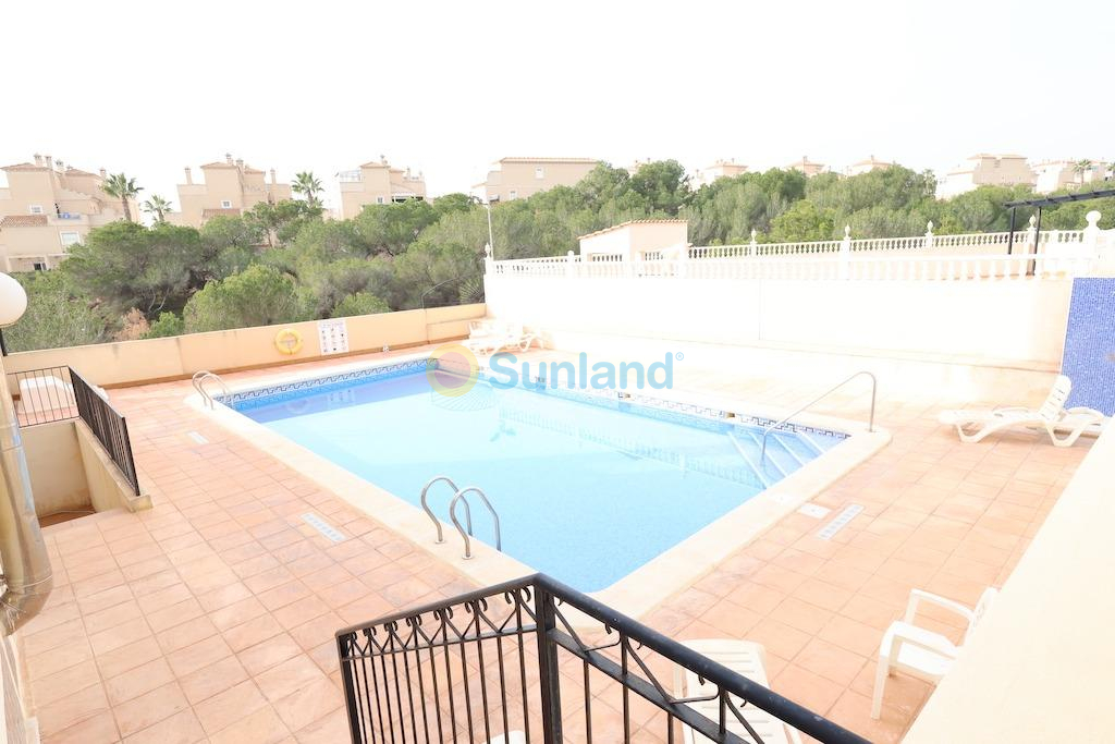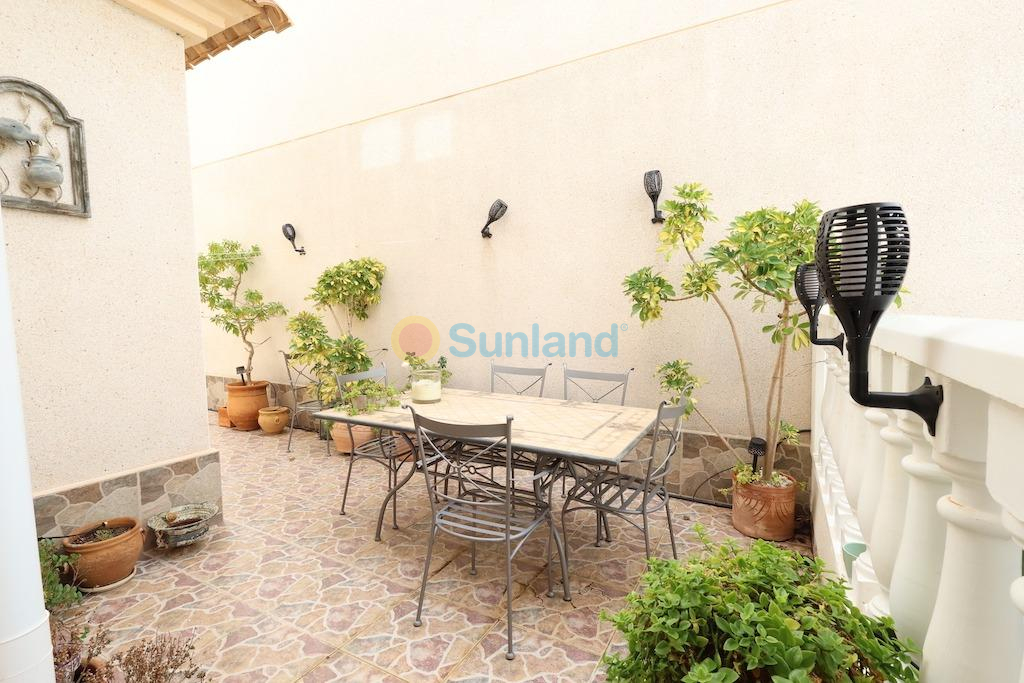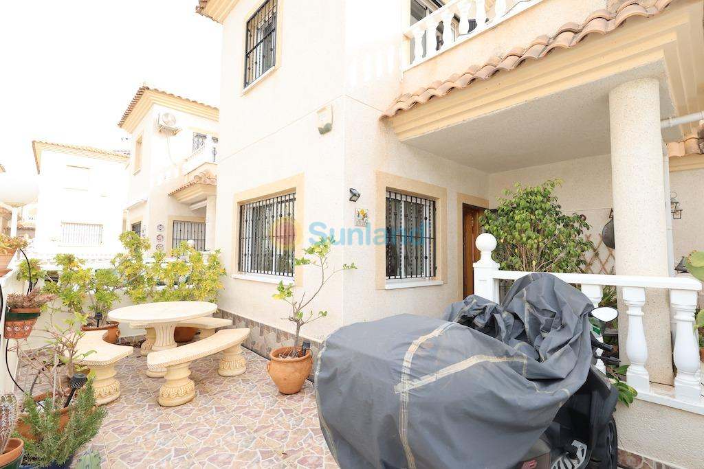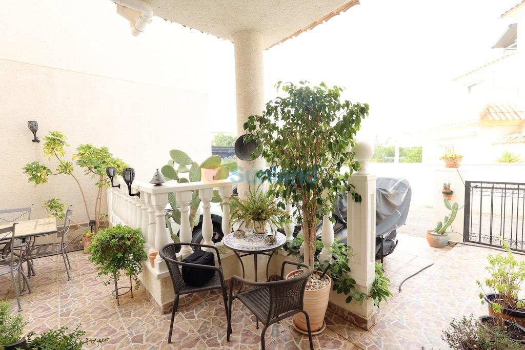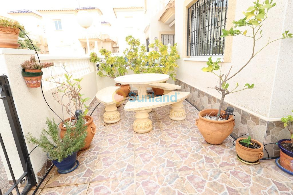 Playa Flamenca, muy cerca del centro deportivo chalet independiente con una parcela de 122 m2 con entrada para el coche, vivienda en dos alturas de 82 m2 con 2 amplios dormitorios cada uno con su propia terraza una abierta y otra acristalada la cual sirve de despacho, baño y aseo, gran salón comedor y cocina independiente con salida a una galeria abierta y trastero, la vivienda se vende semi-amueblada y con aire acondicionado, el residencial cuenta con piscina comunitaria.