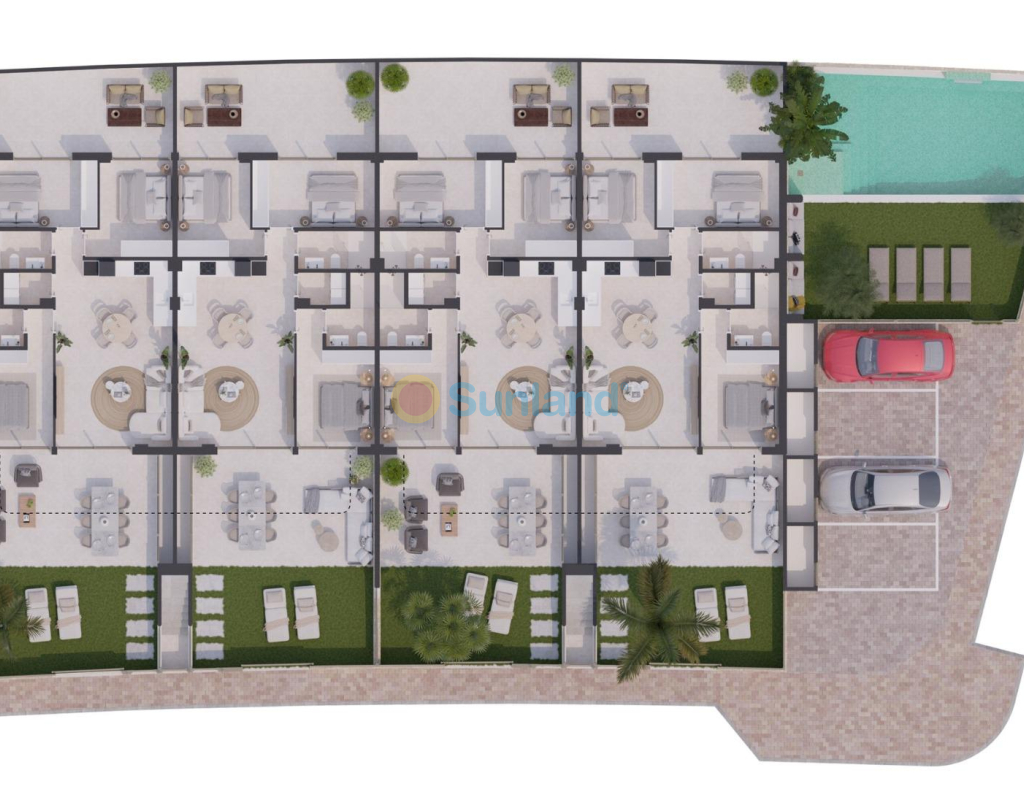 Bungalows de obra nueva en San Pedro del Pinatar - Vida moderna junto al mar Exclusivo Complejo Residencial con Modernos Bungalows Descubra este nuevo complejo residencial de 8 modernos bungalows en San Pedro del Pinatar, una de las localidades más deseadas de la Costa Cálida. Estas viviendas contemporáneas ofrecen 3 dormitorios, 2 baños, una cocina americana con una amplia zona de estar, armarios empotrados y una terraza privada. Puede elegir entre: Bungalows en planta baja con jardín privado y aparcamiento en parcela. Bungalows en planta alta con solarium privado, perfectos para disfrutar del clima mediterráneo. Características de alta calidad en cada vivienda Cada bungalow incluye acabados de primera calidad y modernas características para el máximo confort: Unidad de aire acondicionado incluida. Sistema aerotérmico para la producción de agua caliente de bajo consumo. Cocina totalmente equipada con electrodomésticos BOSCH. Baños totalmente equipados con muebles, espejos, mamparas de ducha y suelo radiante eléctrico. Persianas eléctricas en todas las ventanas. Iluminación LED en todo el interior y exterior de la vivienda. Características adicionales para los bungalows de la planta superior: Pérgola de aluminio para sombra y estilo. Cocina de verano exterior, perfecta para el entretenimiento. Plaza de aparcamiento privada y trastero para bicicletas. Servicios comunitarios Los residentes de este exclusivo complejo disfrutarán de: Una zona comunitaria bellamente ajardinada. Una piscina comunitaria para relajarse y refrescarse. Ubicación privilegiada en San Pedro del Pinatar San Pedro del Pinatar es una ciudad costera privilegiada, situada entre el Mar Menor y el Mar Mediterráneo. Es conocida por sus playas, baños naturales de barro y excelentes instalaciones náuticas, incluyendo puertos deportivos y clubes náuticos. La zona es un paraíso para los amantes de los deportes náuticos y ofrece un relajado estilo de vida mediterráneo con todos los servicios esenciales cerca. San Pedro del Pinatar cuenta con una comunidad establecida durante todo el año, con acceso a instalaciones deportivas, una piscina cubierta y una vibrante escena social, gracias al suave clima invernal de la región. La famosa zona de Lo Pagán ha crecido significativamente, ofreciendo una amplia gama de servicios, tiendas, restaurantes y opciones de entretenimiento. Distancias a los principales puntos de interés Centro Comercial Dos Mares - 5 minutos. Playas del Mar Menor - 10 minutos. Aeropuerto Murcia-Corvera - 30 minutos. Aeropuerto de Alicante - 1 hora. Invierta en Calidad y Estilo de Vida Estos modernos bungalows ofrecen una oportunidad excepcional de poseer una vivienda en una de las zonas más codiciadas de la Costa Cálida. Ya sea como retiro vacacional, inversión o residencia permanente, esta es su oportunidad de abrazar el estilo de vida mediterráneo. Póngase en contacto con nosotros hoy mismo para concertar una visita y asegurarse la casa de sus sueños en San Pedro del Pinatar.