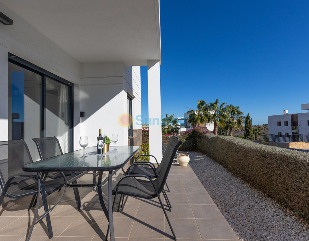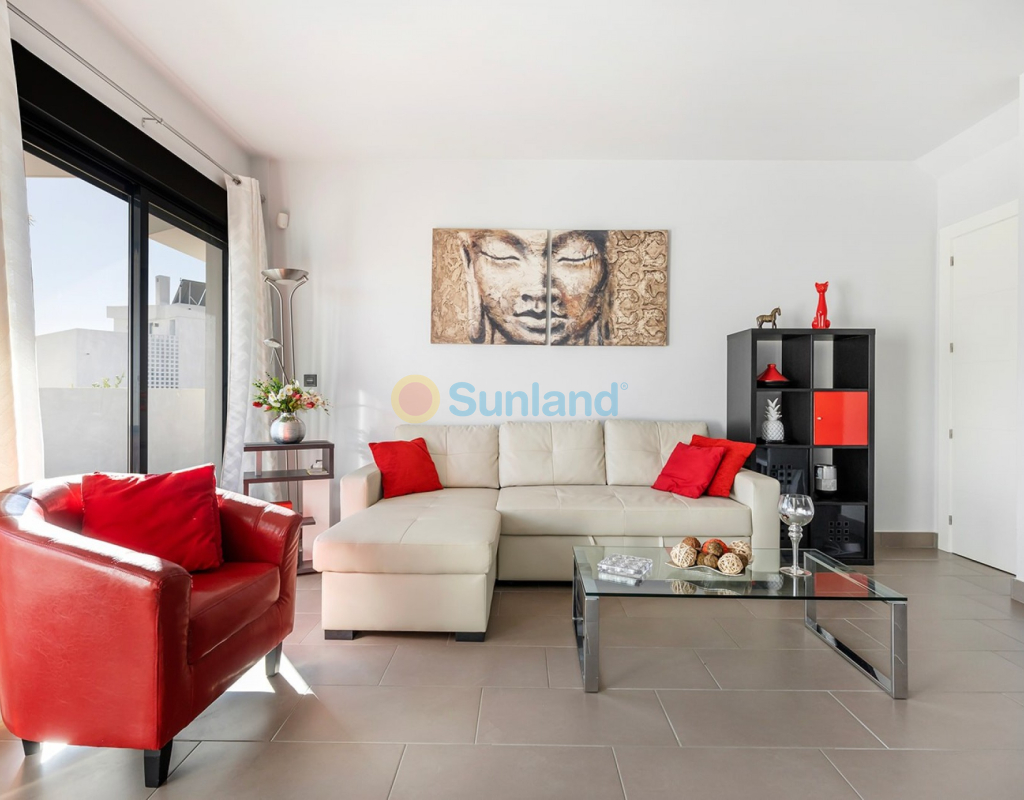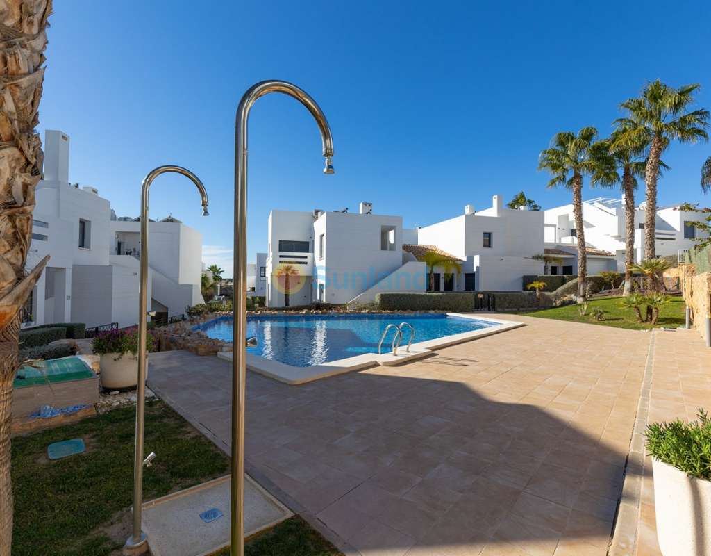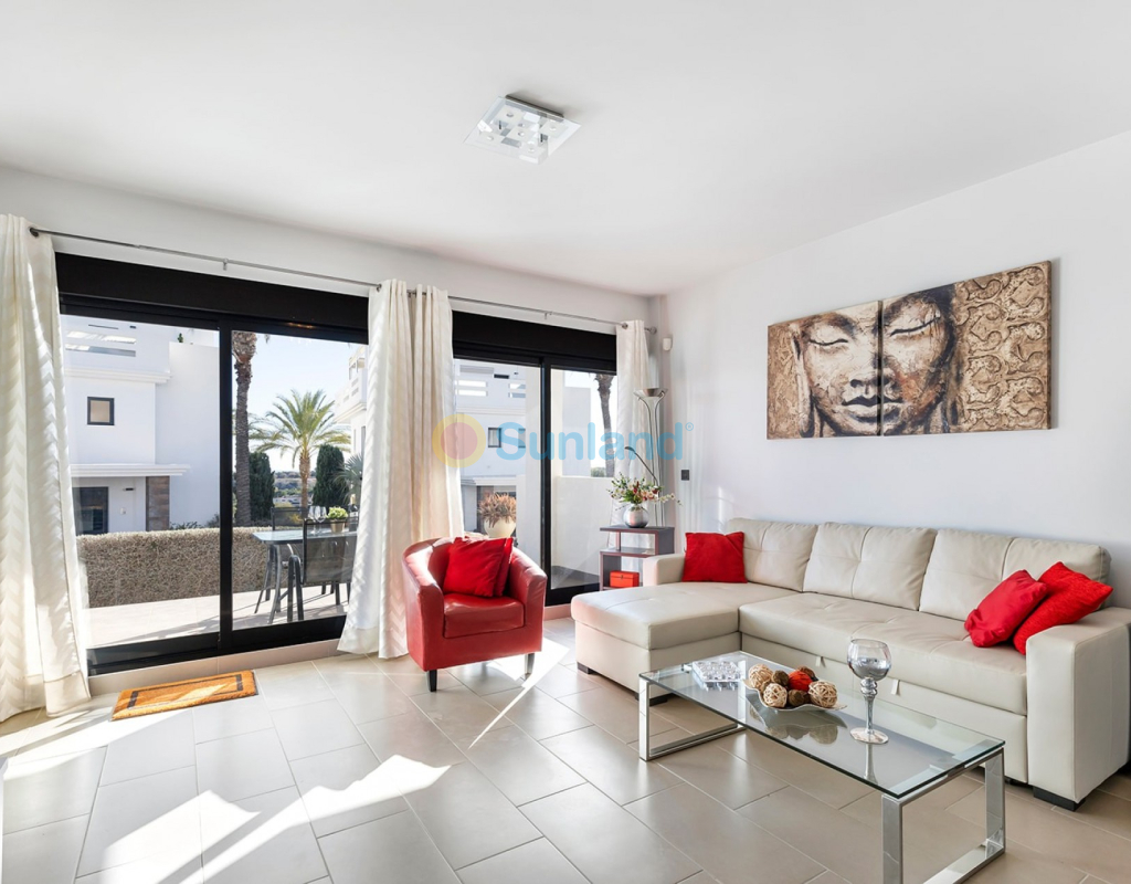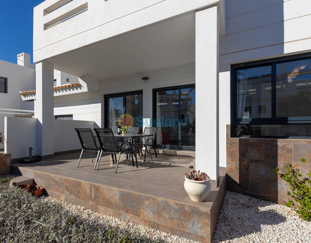 Este hermoso y espacioso piso en planta baja está situado en una exclusiva comunidad cerrada, donde priman la tranquilidad, la discreción y la seguridad. Situado en lo alto de una colina junto al prestigioso campo de golf Las Ramblas de Villamartín, aquí disfrutarás de una combinación única de naturaleza, privacidad y comodidad. La acogedora casa club del campo de golf Las Ramblas también está a poca distancia, perfecta para pasar un relajante día en el campo de golf o tomar unas copas con los amigos. La propiedad está rodeada por un amplio jardín, ideal para disfrutar tanto del sol español como de un momento tranquilo a la sombra. La gran terraza también ofrece una sensación de intimidad y tranquilidad, y al mismo tiempo puedes disfrutar de unas vistas impresionantes de los alrededores. A sólo 1.200 metros está el centro comercial La Fuente, donde encontrarás una amplia gama de servicios como supermercados, farmacias, bares, restaurantes y mucho más. Para los amantes del sol, el mar y las playas, se puede llegar a las hermosas playas de Cabo Roig y La Zenia en sólo 10 minutos en coche. Lo que hace que este piso sea realmente único es el salón excepcionalmente espacioso, con cocina americana totalmente equipada, dormitorios y cuartos de baño, espaciosos así como un práctico trastero adicional. Todo ello se complementa con una piscina comunitaria orientada al sol, donde podrás relajarte o darte un refrescante chapuzón. El piso se vende totalmente amueblado y en el precio se incluye una plaza de aparcamiento privada cerca de la vivienda. Con una excelente relación calidad-precio, este piso es una opción perfecta para una segunda residencia, una propiedad de inversión o un nuevo hogar en la soleada España. No esperes demasiado, esta joya te está esperando. Ponte en contacto con nosotros para obtener más información o concertar una visita.