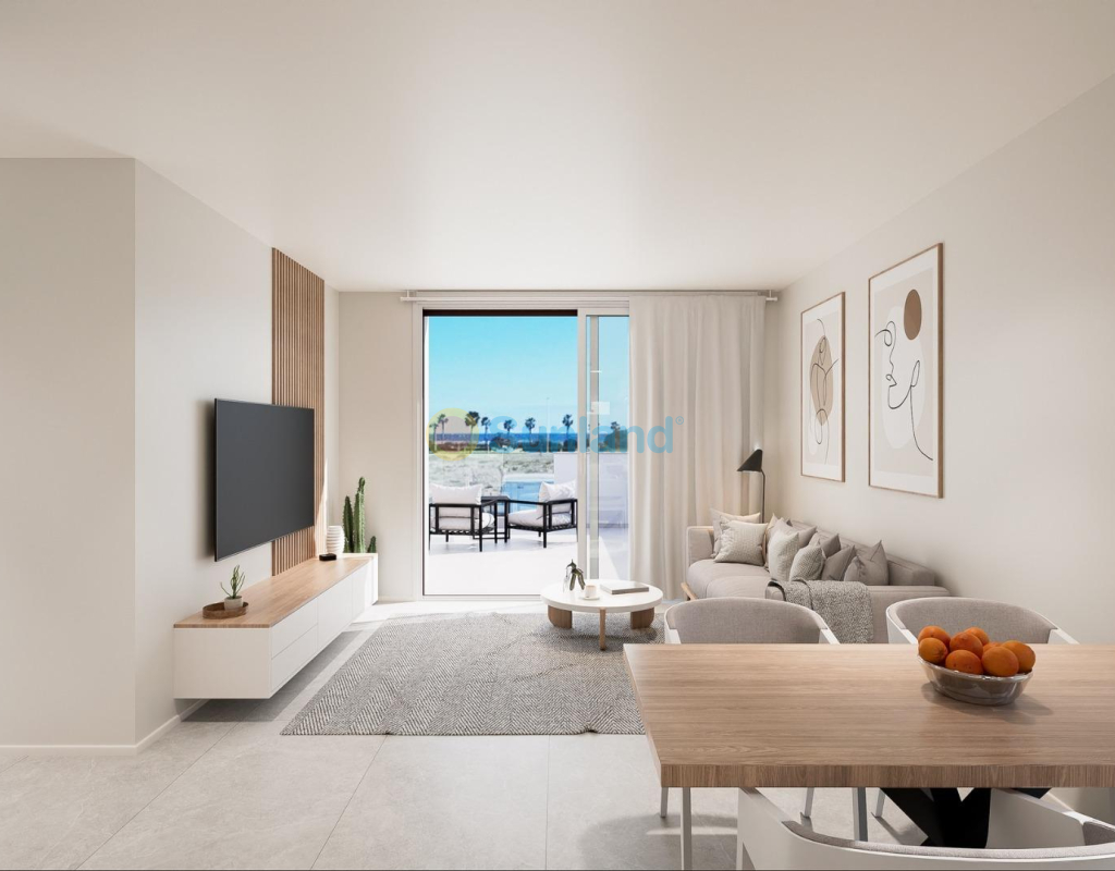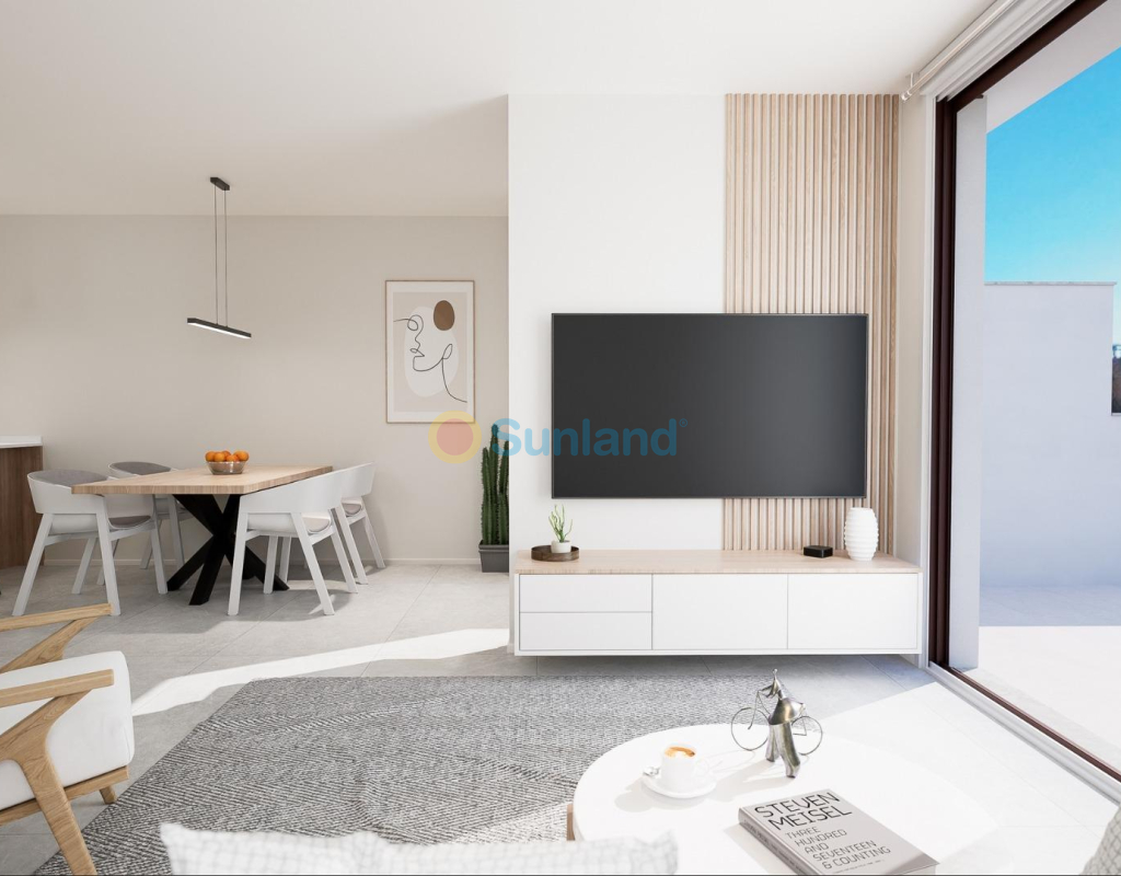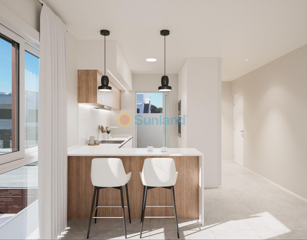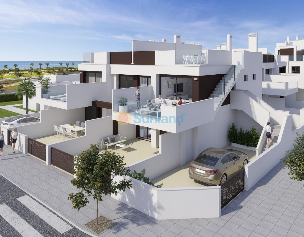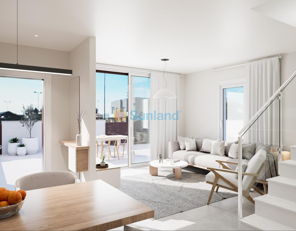 BUNGALOW DE OBRA NUEVA EN TORRE DE LA HORADADA El complejo Residencial Obra Nueva se encuentra a escasos metros de la Playa de las Higuericas, en Torre de la Horadada. Complejo compuesto por Adosados, Pareados y Apartamentos de estilo moderno con un toque exclusivo. Todas las viviendas cuentan con parking, amplias terrazas, zonas verdes y piscina comunitaria con una superficie de 1628 m² zonas comunes. Torre de la Horadada se encuentra al sur de Alicante en una hermosa ubicación en la costa. Las hermosas playas de Torre de la Horadada y Mil Palmeras tienen arena fina y un hermoso paseo marítimo. Hay muchos restaurantes, bares y tiendas, también deportes acuáticos, buceo y snorkel. Está bien conectado a solo 40 minutos de los aeropuertos de Alicante y Murcias Corvera, con grandes centros comerciales y múltiples campos de golf, todos a su alcance.