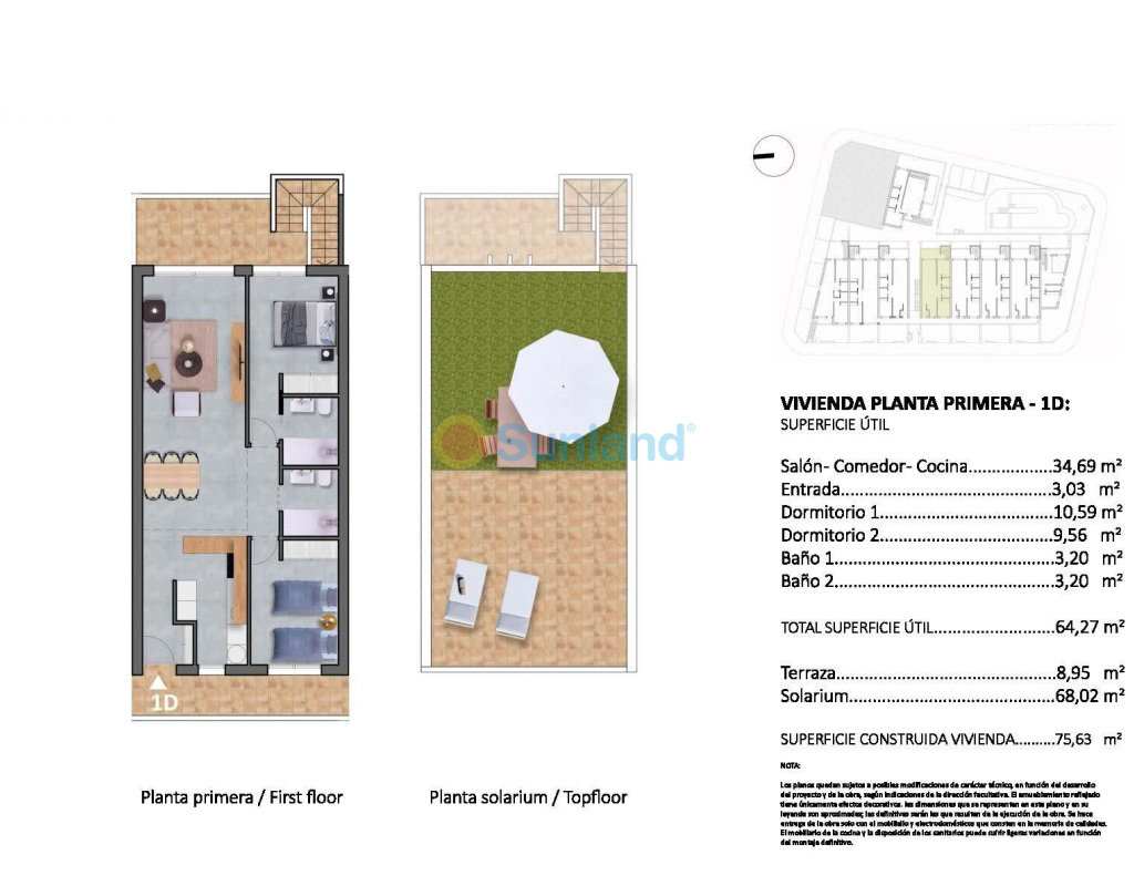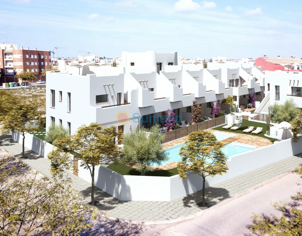 Exclusivos Bungalows de Obra Nueva en Pilar de la Horadada – Ubicación Privilegiada Un Residencial Único para Disfrutar del Mediterráneo Bienvenido a este exclusivo residencial de 16 bungalows y un adosado en esquina de 2 y 3 dormitorios, diseñados para quienes buscan calidad de vida y confort en la Costa Blanca. Ubicado a solo unos pasos del centro de Pilar de la Horadada, este moderno complejo ofrece un entorno tranquilo, con todas las comodidades al alcance. Las viviendas están diseñadas para maximizar el bienestar de sus propietarios: Plantas bajas con jardín delantero y patio trasero. Plantas altas con terraza privada y solárium con vistas espectaculares. Un adosado en esquina, con más amplitud y privacidad. El residencial cuenta con una amplia piscina comunitaria rodeada de zonas verdes, ideales para relajarse bajo el sol mediterráneo. Diseño Moderno y Acabados de Alta Calidad Cada vivienda ha sido cuidadosamente diseñada para ofrecer luminosidad, funcionalidad y estilo contemporáneo. Puerta de entrada acorazada para mayor seguridad. Cocina de concepto abierto, integrada en el salón para mayor comodidad. Baños modernos con platos de ducha e instalación de mamparas de vidrio templado. Preinstalación de aire acondicionado en salón y dormitorios. Producción de agua caliente mediante aerotermo individual para mayor eficiencia energética. Plantas altas con preinstalación de cocina exterior en los soláriums. Además, la urbanización dispone de zona de aparcamiento para bicicletas y una plaza de parking privada por vivienda. Pilar de la Horadada – Un Lugar para Vivir Todo el Año Situado en la provincia de Alicante, Pilar de la Horadada es un destino ideal para quienes buscan combinar tranquilidad, naturaleza y servicios de primer nivel. Sus hermosas playas, como la Playa de las Higuericas, se encuentran a pocos minutos, ofreciendo arena dorada y aguas cristalinas del Mediterráneo. Este residencial goza de una ubicación inmejorable, con acceso a supermercados, tiendas, restaurantes y espacios de ocio, todo a poca distancia a pie. La zona también cuenta con rutas de senderismo, carriles bici y una gran oferta deportiva. Distancias Claves a los Principales Puntos de Interés Playa de Torre de la Horadada – 3 km (5 min en coche). Campo de Golf Lo Romero – 5 km (10 min en coche). Centro Comercial La Zenia Boulevard – 15 km (15 min en coche). Aeropuerto de Corvera (Murcia) – 40 km (40 min en coche). Aeropuerto de Alicante – 55 km (55 min en coche). Reserve Hoy su Vivienda en la Costa Blanca No pierda la oportunidad de adquirir una vivienda de obra nueva en una ubicación inmejorable. Contáctenos hoy mismo para más información y para programar una visita.