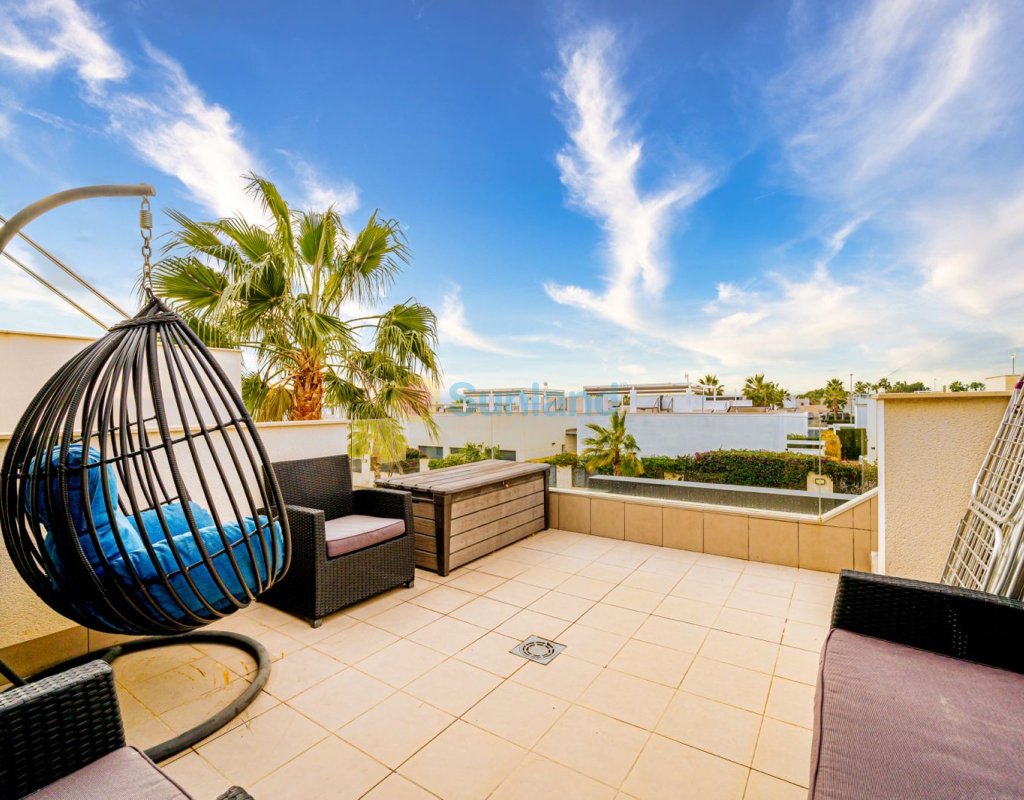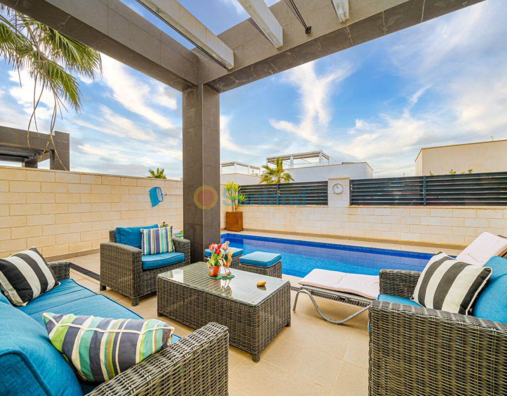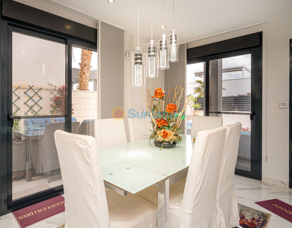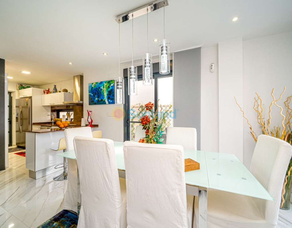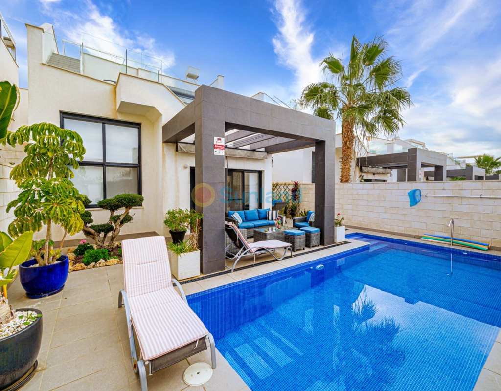 Venga y eche un vistazo a esta casa recién terminada, prácticamente nueva en Rojales. ¿Vienes a vivir en el pintoresco Rojales, a 10 minutos de la playa en una preciosa villa con 3 dormitorios , 2 baños y un aseo de invitados? La villa tiene una piscina privada recientemente reinstalada, jacuzzi privado en el solarium y todas las comodidades para la casa de sus sueños. Es un verdadero punto de atracción para los amantes del lujo y la tranquilidad.Esta casa de lujosos acabados está situada en una preciosa parcela con orientación suroeste. Además, la casa está equipada con todas las comodidades con todos los muebles restantes también. Esta propiedad está disponible en consulta y completamente lista para entrar a vivir. En resumen, ¿disfrutar de una casa en España? Entonces esta es la oportunidad.La vivienda se divide en dos plantas y solarium; la planta baja, la primera planta y el solarium.Planta baja;Al llegar, se entra por la puerta principal al salón. El amplio salón con cocina moderna está totalmente equipada. Caminando hacia la parte trasera de la casa, aquí encontrará un aseo de invitados y acceso al primer dormitorio con baño en-suite. Sin olvidar el jardín que cuenta con una piscina privada y varias zonas de estar agradable para disfrutar del sol español.Primera planta; Suba las escaleras y encontrará dos dormitorios y un amplio cuarto de baño. También hay una bonita zona al aire libre en esta planta donde podrá relajarse totalmente. Por último, desde el balcón se puede acceder a la azotea donde se encuentra el jacuzzi.Detalles: - Superficie útil; 104 m2- Parcela; 229,6 m2 - Año de construcción; 2016 - 3 dormitorios; - 2 baños y un aseo- Piscina privada;- Jacuzzi;- Cocina y baños totalmente terminados.- Muebles incluidos.- 2 plazas de aparcamiento en frente de la casa en calle privada.Este anuncio es indicativo y no se puede derivar ningún derecho de la información anterior.