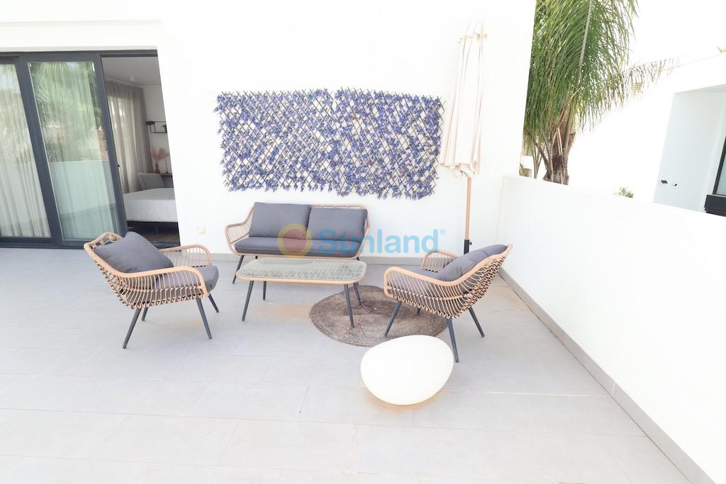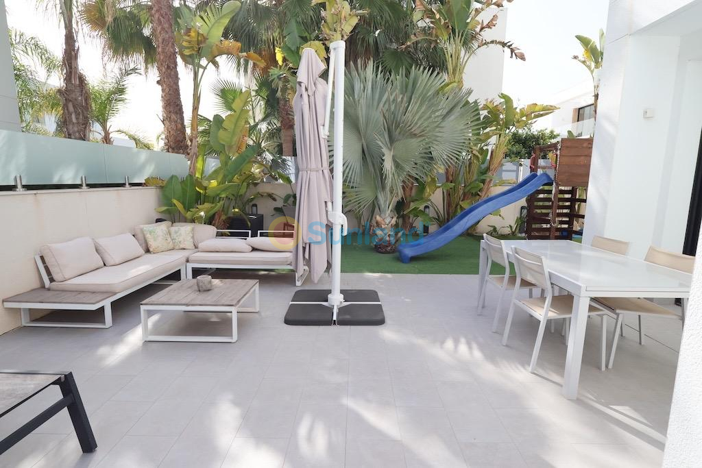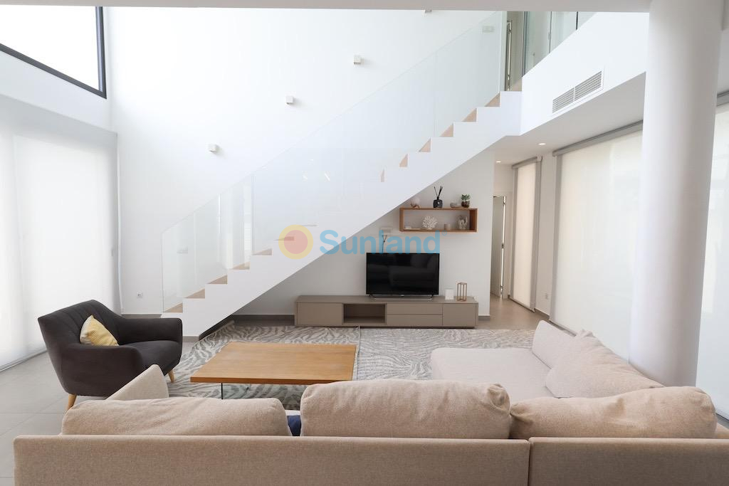 Ciudad Quesada, Residencial Laguna Villas II, comunidad cerrada con villas de diseño, vivienda terminada en el año 2018 con una superficie construida de 191 m2, y una parcela de 400 m2, distribuido en dos plantas, con 3 dormitorios dobles todos en suite con sus vestidores ( 1 de ellos en la planta baja), 3 baños, 1 aseo, cocina independiente con galeria cerrada, amplio salón comedor con amplios ventanales, la vivienda disponde de aire acondiconado central por conductos, piscina privada, garaje cerrado, zona de barbacoa, y se vende totalmente amueblada.