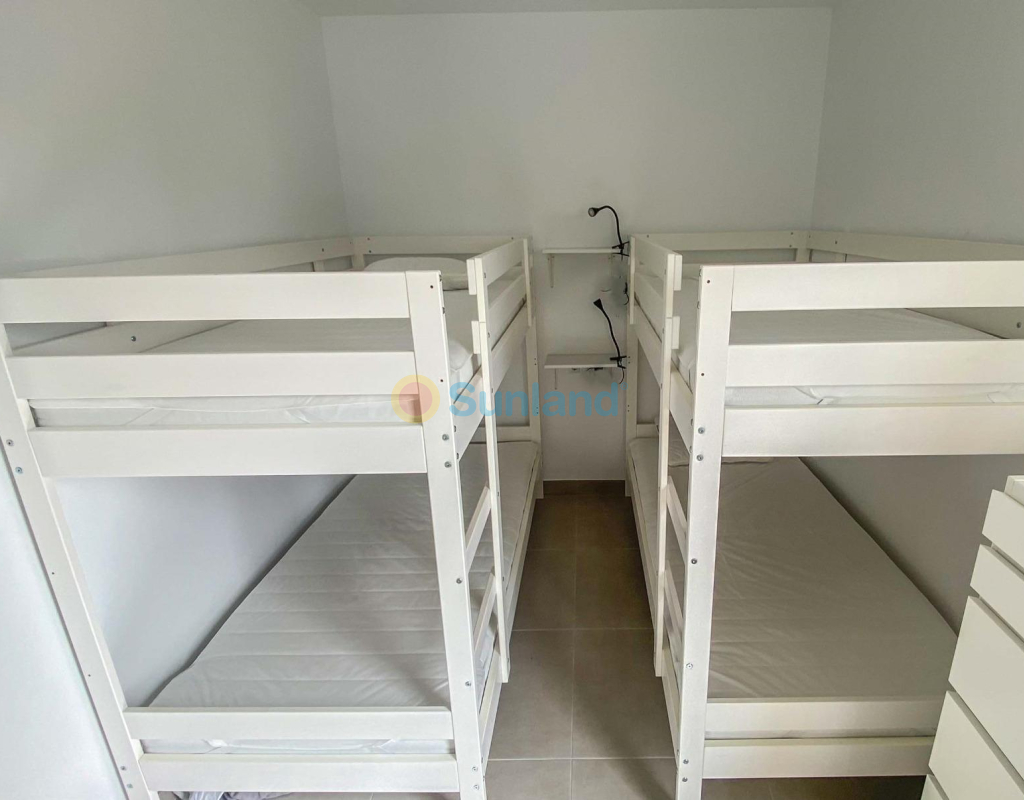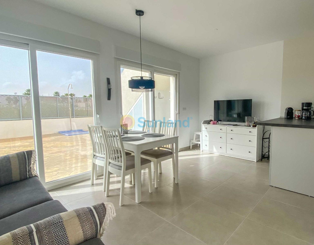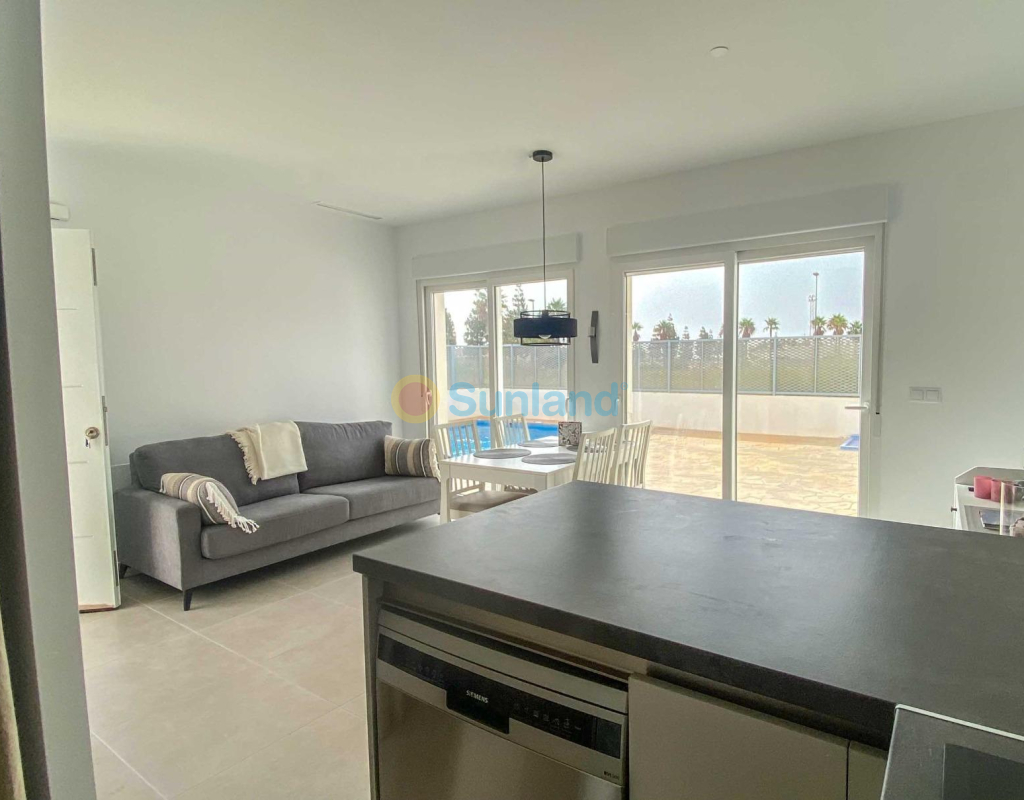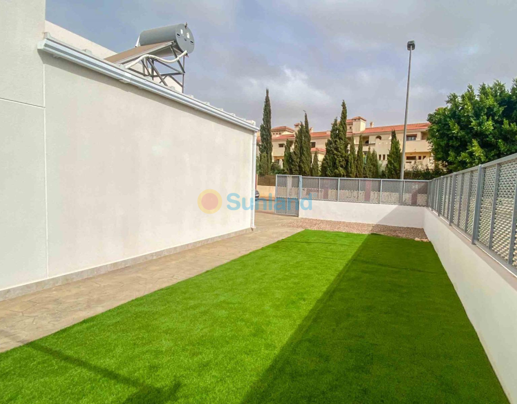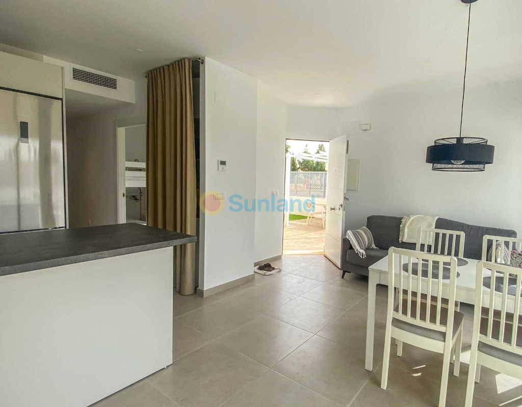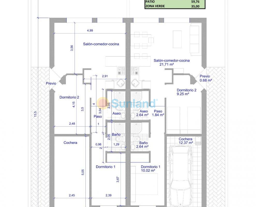 VILLAS PAREADAS DE OBRA NUEVA EN LOS ALCAZARES Estas villas espaciosas y bien diseñadas están construidas en pares. Cada villa tiene su propia parcela privada de 175m2 con amplias terrazas, zona de piscina y jardín en tres lados de la villa. Creemos que estas villas ofrecen la mejor relación calidad-precio en España: ofrecemos una villa adosada con más de 100 m2 de terraza (se puede agregar solarium a un costo adicional), área de piscina o jardín por el precio de un apartamento. Las villas han sido diseñadas pensando en la vida al aire libre. El salón tiene dos grandes puertas dobles que dan a la terraza y al área de la piscina, ideal para cenar al aire libre. Amplias terrazas en la parte delantera y trasera aseguran que los propietarios puedan tomar el sol durante todo el día. Las villas tienen cocinas modernas equipadas con una selección de colores para muebles de cocina y revestimientos cerámicos tanto en cocinas y baños como también en pisos y terrazas. Los dos cómodos dormitorios dobles tienen armarios empotrados. Un dormitorio tiene un baño con ducha en suite y hay un segundo baño con ducha para invitados para el dormitorio 2. Los jardines están rodeados por un muro de 40 cm con cobertura para privacidad en el frente con puertas. Los compradores pueden decidir aumentar la altura de la pared alrededor del jardín trasero hasta una altura de 180 cm (5 pies y 10 pulgadas) o agregar cercas o setos para mayor privacidad. Hay un gran solárium en la azotea con una escalera de caracol disponible por un suplemento. Cada villa tiene un garaje de buen tamaño que también podría usarse como sala de pasatiempos o estudio. Se pueden agregar piscinas o jacuzzis a un costo adicional. Tenemos planos disponibles para construir un tercer dormitorio en el techo de las villas. Residencial de villas situado a 1 km de la playa y del pueblo de Los Alcázares, donde poder practicar diversos deportes acuáticos, rodeado de varios campos de golf. Ciudad de Cartagena a menos de 15 minutos en coche ya 30 minutos del aeropuerto de Murcia Corvera.