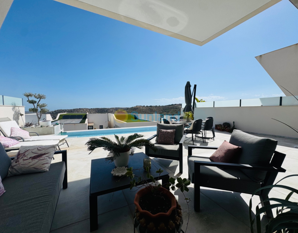 Esta impresionante villa de estilo contemporáneo, construida en 2019, está perfectamente ubicada junto al popular campo de golf de Ciudad Quesada. Con 3 dormitorios y 3 baños, además de un aseo de cortesía para invitados, esta propiedad combina a la perfección confort y lujo. La planta principal ofrece un diseño diáfano y luminoso con cocina moderna, comedor y salón, todo con acceso directo a la zona de piscina. Dos de los dormitorios en esta planta son en suite, diseñados para ofrecer privacidad y elegancia. En la planta inferior se encuentra un amplio sótano, actualmente distribuido en lavadero, un dormitorio adicional en suite y un segundo salón, con espacio más que suficiente para personalizarlo a gusto — gimnasio, sala de cine, despacho o lo que se desee. En el exterior se puede disfrutar de una magnífica piscina infinity, relajarse en el solárium de la azotea con espectaculares vistas al mar o aprovechar las amplias zonas al aire libre para reuniones y momentos de descanso. Una villa que destaca por su lujo moderno, excelente ubicación y grandes posibilidades, ideal como residencia permanente, casa de vacaciones o inversión. No pierda esta oportunidad — contáctenos para más información o concertar una visita.