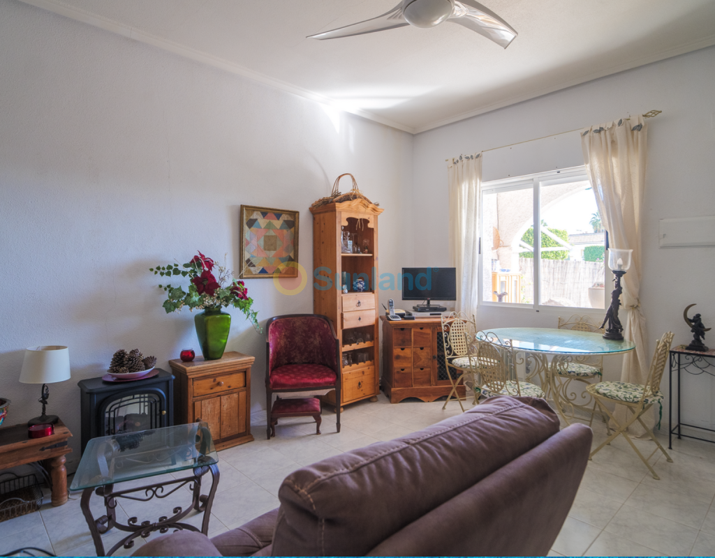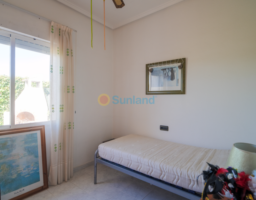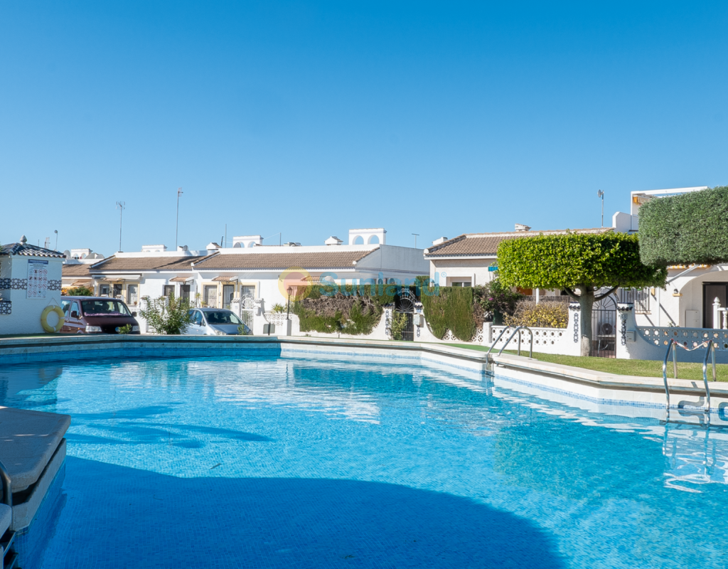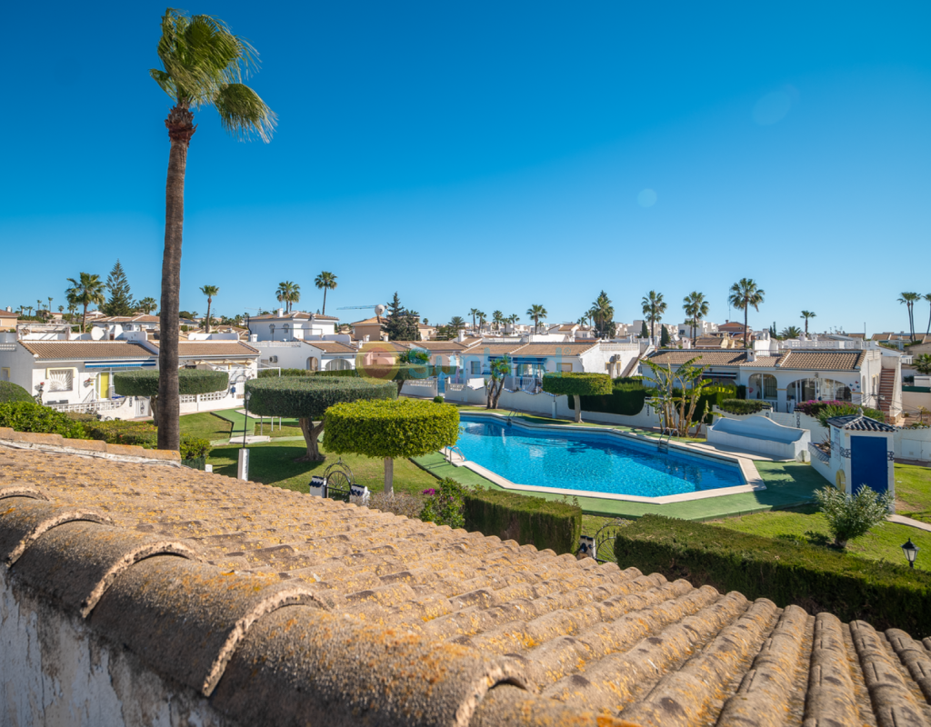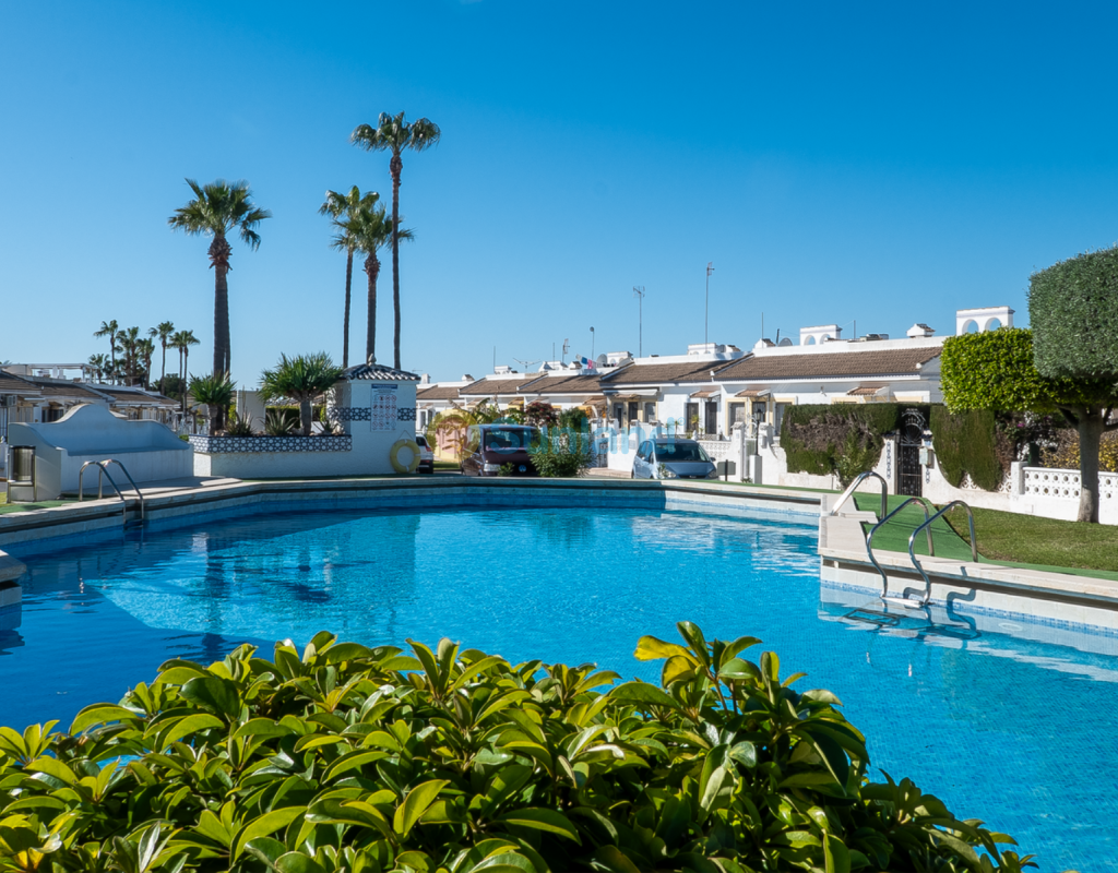 Este encantador bungalow adosado de 2 dormitorios y 1 baño se encuentra en la codiciada zona de Pueblo Bravo en Ciudad Quesada y ofrece un entorno tranquilo con vistas directas a la hermosa piscina comunitaria, ideal para disfrutar del estilo de vida mediterráneo. Características principales: Vistas a la piscina: La terraza delantera da a la cuidada piscina comunitaria, perfecta para relajarse y disfrutar del entorno. Salón luminoso: Salón-comedor de planta abierta con mucha luz natural y acceso a la terraza. Dos dormitorios acogedores: Habitaciones bien distribuidas, ideales como residencia permanente o casa de vacaciones. Baño moderno: Distribución funcional y detalles actualizados. Entorno natural tranquilo: En la parte trasera de la vivienda se encuentran huertos de naranjos que proporcionan privacidad y una atmósfera relajante. Ventajas de la ubicación: Situado en una zona residencial tranquila, cerca de supermercados, restaurantes, bares y el conocido campo de golf La Marquesa. Las hermosas playas de Guardamar del Segura están a tan solo 10 minutos en coche. Ya sea que esté buscando una residencia permanente, una casa de vacaciones o una inversión para alquilar, esta propiedad ofrece la combinación perfecta de comodidad, naturaleza y buena ubicación en la Costa Blanca. Contáctenos hoy para más información o para concertar una visita.