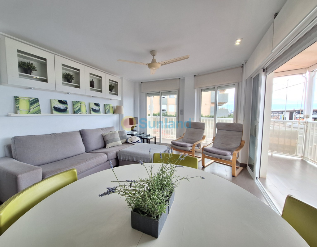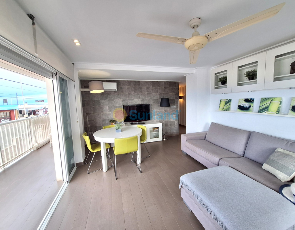 ¡Descubre este maravilloso apartamento en la zona de Gran Playa, Santa Pola! Este encantador piso reformado en primera línea ofrece unas impresionantes vistas al mar. Con una superficie de 91 m², cuenta con 3 amplios dormitorios y un baño completo. La cocina está perfectamente equipada y el salón-comedor es el lugar ideal para relajarte con familia y amigos. La joya de esta propiedad es su terraza en esquina, desde donde podrás contemplar la hermosa bahía mientras disfrutas del sol. Con orientación sureste, cada rincón se llena de luz natural. Además, el aire acondicionado en todas las estancias garantiza un ambiente fresco en verano. Ubicado a tan solo 20 metros de la playa, este piso te ofrece la oportunidad de vivir junto al mar. La plaza de parking propia incluida en el precio es un gran añadido, brindando comodidad y seguridad para tu vehículo. Aunque se encuentra en la primera planta sin ascensor, la cercanía a la playa y las vistas hacen que cada escalón valga la pena. No dejes pasar esta oportunidad única de adquirir un inmueble en una de las mejores ubicaciones de Santa Pola. ¡Ven a visitarlo y enamórate! *** Este anuncio puede contener errores. La información se muestra a título informativo, no comprometiendo contractualmente a la inmobiliaria. Tanto los datos, como las imágenes, vídeos y planos, si los hubiera, pueden estar sujetos a cambios. ***