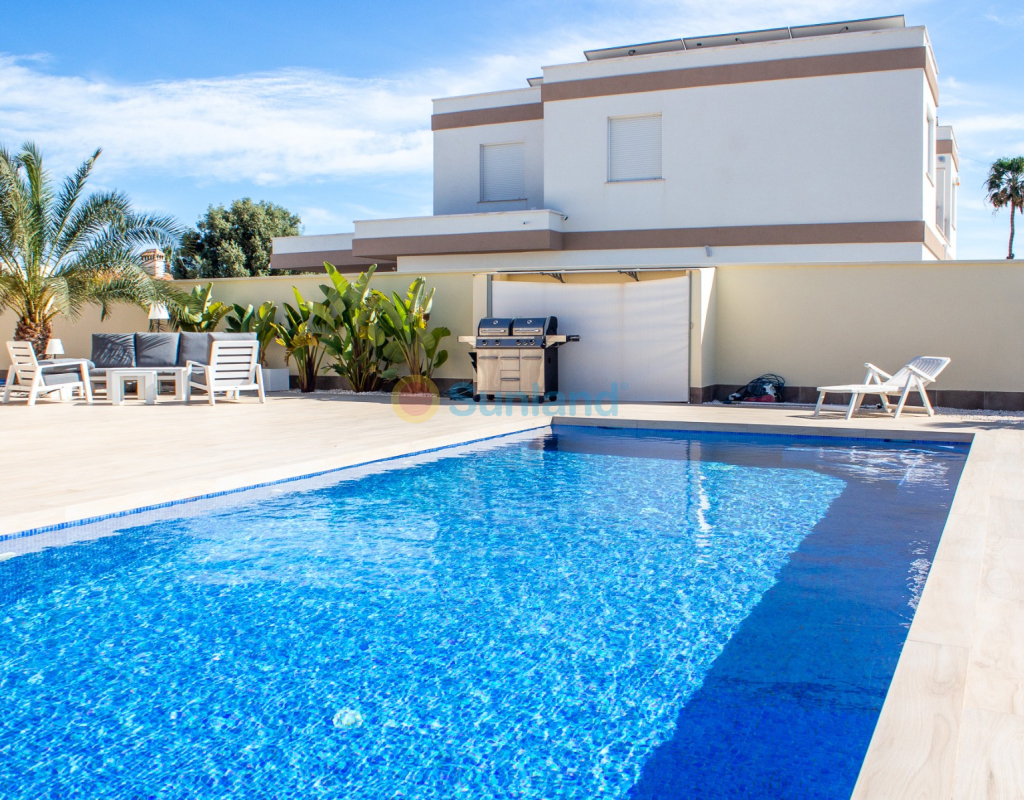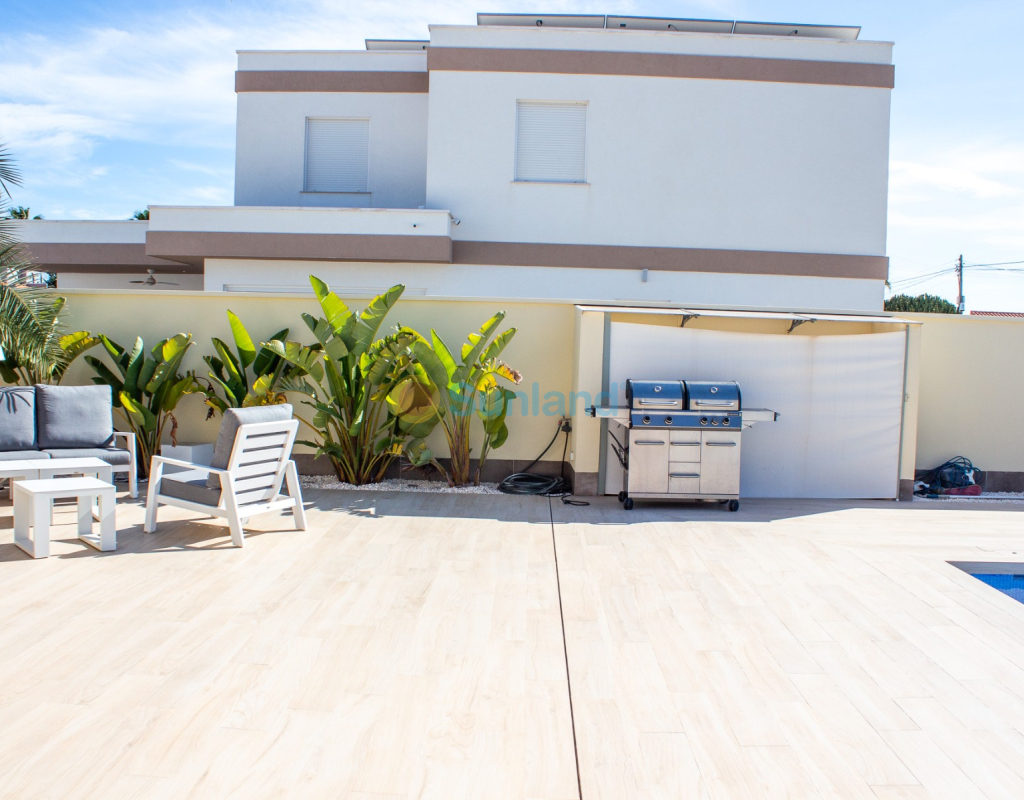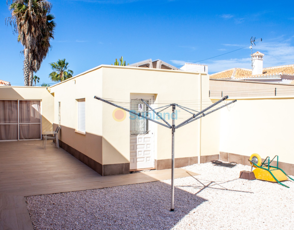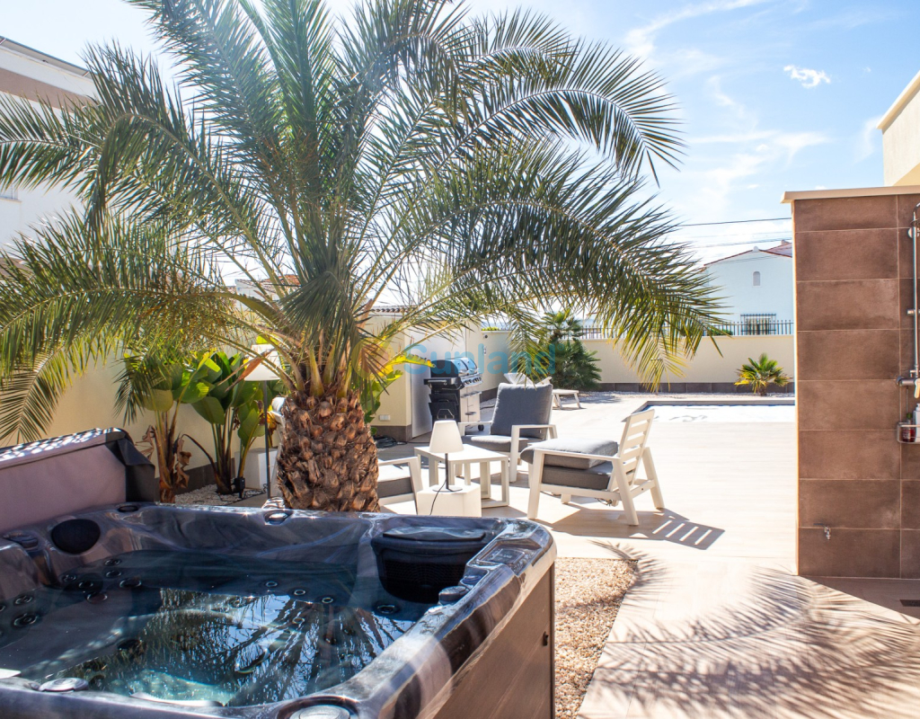 Se presenta esta atractiva vivienda unifamiliar independiente, situada en una amplia parcela de 800 m² en la codiciada urbanización Torreta Florida, una de las zonas más tranquilas y consolidadas de Torrevieja. La vivienda principal dispone de un amplio salón y comedor, junto a una cocina abierta completamente equipada con lavavajillas, horno, placa de inducción Siemens y un frigorífico grande. La cocina tiene acceso directo a una amplia terraza de 150 m², ideal para disfrutar del clima mediterráneo y del espacio exterior. Cuenta con cuatro dormitorios y dos baños completos, todos equipados con aire acondicionado, lo que garantiza un ambiente confortable en cualquier época del año. En la parte posterior de la parcela se encuentra una casita independiente de 63 m², que actualmente se utiliza como almacén, pero que anteriormente albergaba un salón-comedor, cocina, dormitorio y baño completo. Este espacio ofrece un gran potencial como casa de invitados, oficina o apartamento independiente. En el exterior, destacan dos grandes terrazas, una encantadora piscina privada de 10 x 4,5 metros, un jacuzzi y una ducha exterior con agua caliente. También se dispone de un porche cubierto, ideal para proteger el coche del sol. La propiedad cuenta con un sistema de energía solar de 30 placas solares y una batería de 15 kWh, lo que permite disfrutar de una factura eléctrica de 0 euros gracias al autoconsumo. Una vivienda que combina comodidad, amplitud y eficiencia energética, perfecta como residencia permanente o como vivienda vacacional en una excelente ubicación. Clima: El clima en la Costa Blanca, a menudo considerado como el mejor de Europa, hace posible un estilo de vida muy sociable y saludable,  al aire libre, marcado por instalaciones deportivas y de ocio, con ciudades turísticas, excitantes y cosmopolitas, que destacan por la prestación de servicios máxima categoría, algunos de ellos exclusivos, considerados de auténtico lujo. Todos ellos destinados a un cliente exigente, que busca calidad y cercanía La Costa Blanca cuenta con más de 300 días de sol al año. Un paraíso con excelentes conexiones a toda Europa. El Aeropuerto de Alicante-Elche cuenta con unas modernas instalaciones y con un fácil y cómodo acceso desde cualquier punto de la provincia. Entorno: La Costa Blanca sigue atrayendo a personas de toda Europa, y de otros lugares del mundo,  porque ofrece una calidad de vida única en un hermoso entorno a orillas del mar Mediterráneo, rodeado de montañas y de una exuberante vegetación. Además de los campos de golf y los puertos deportivos que podrás disfrutar por toda la costa, la zona también ofrece la posibilidad de esquiar en la cercana Sierra Nevada , Javalambre o Valdelinares, unos  paraísos para amantes de los deportes de invierno, con hermosos paisajes naturales. La Costa Blanca ofrece un estilo de vida singularmente rico, donde las mejores playas y calas del Mediterráneo se combinan con un interior repleto de montañas y pueblos que esconden cultura y monumentos históricos únicos en el mundo. Creemos que tu confianza merece un trato excepcional. Estaremos a tu lado siempre que nos necesites.  Tenemos un regalo para ti:   Desde nuestra agencia le ayudamos a convertir su nueva propiedad en la casa de tus sueños, le acompañamos a una una visita técnica del departamento de diseño a la vivienda, donde nuestro equipo técnico le aconsejará sobre las posibilidades de mejora y decoración de su propiedad. Totalmente gratis!!   IMPORTANTE!! Recuerda que nuestros servicios NO incrementan NUNCA el precio final de la vivienda a nuestros clientes. Nuestra experiencia en el sector nos convertirá en tu aliado, un asesor de confianza que te ayudará a elegir la casa de tus sueños en la mejor zona, informarte sobre el precio de mercado de los inmuebles en los que estás interesado, las calidades empleadas...todo la información imprescindible y objetiva para que tu experiencia sea totalmente satisfactoria. Nuestra agencia inmobiliaria pertenece a un grupo  de empresas consolidadas y especializadas todas ellas en el sector del hogar; arquitectura, interiorismo, mobiliario, asesoramiento en la compra venta de bienes raíces, etc... Estos recursos propios nos permiten ofrecer unos servicios únicos y exclusivos a nuestros clientes.