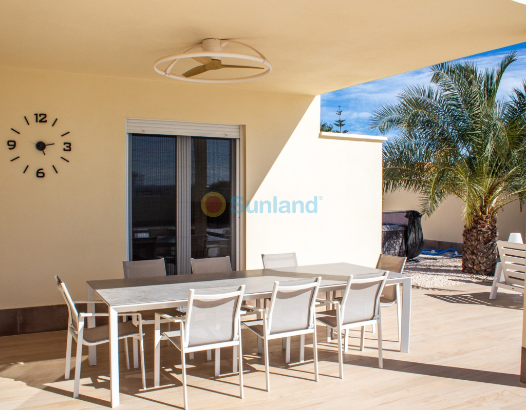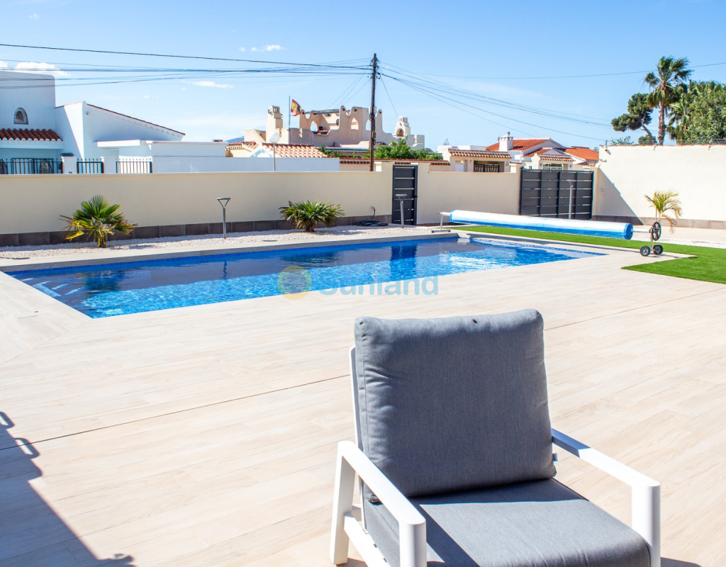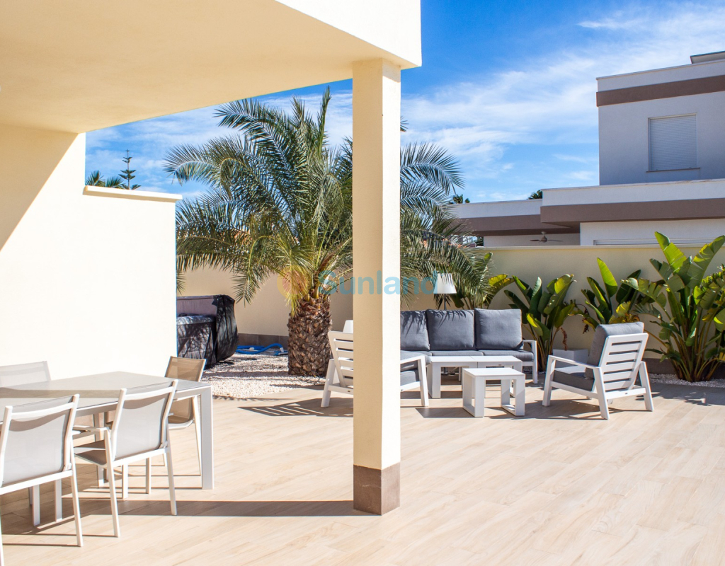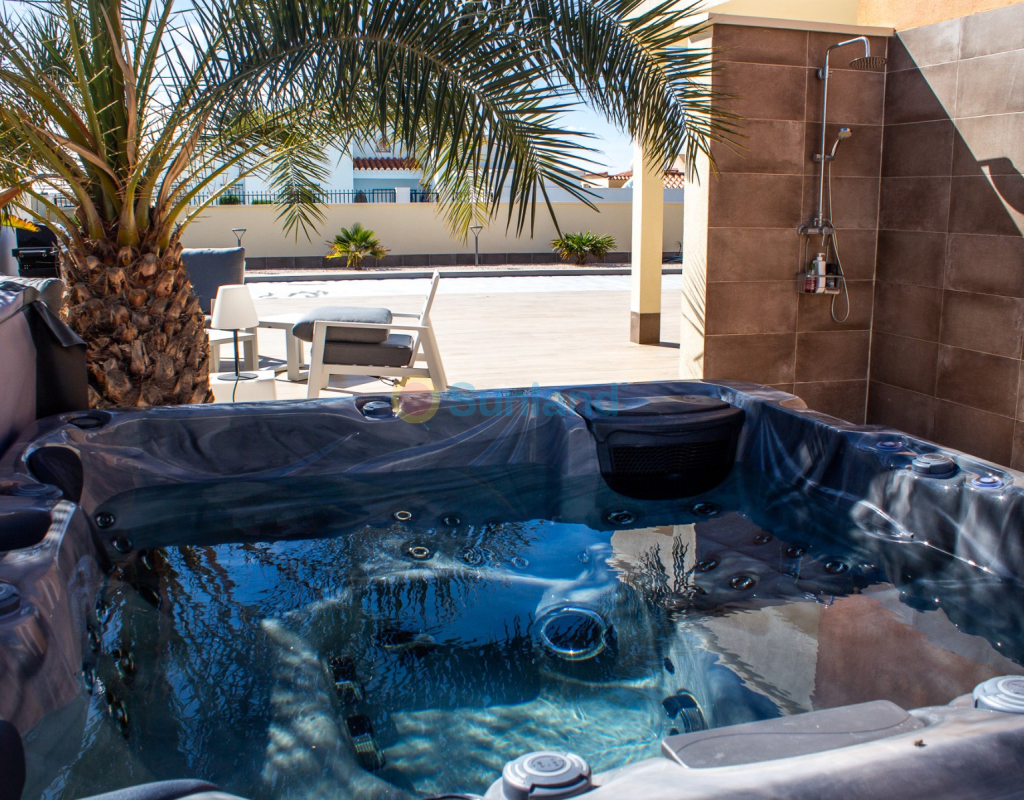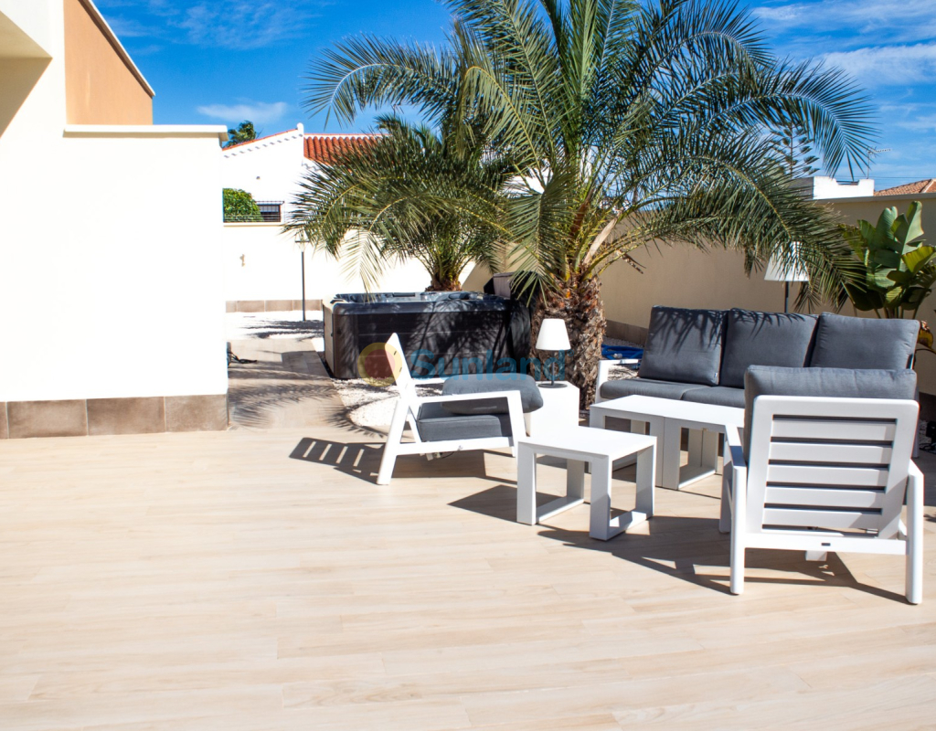 Se presenta esta atractiva vivienda unifamiliar independiente, situada en una amplia parcela de 800 m² en la codiciada urbanización Torreta Florida, una de las zonas más tranquilas y consolidadas de Torrevieja. La vivienda principal dispone de un amplio salón y comedor, junto a una cocina abierta completamente equipada con lavavajillas, horno, placa de inducción Siemens y un frigorífico grande. La cocina tiene acceso directo a una amplia terraza de 150 m², ideal para disfrutar del clima mediterráneo y del espacio exterior. Cuenta con cuatro dormitorios y dos baños completos, todos equipados con aire acondicionado, lo que garantiza un ambiente confortable en cualquier época del año. En la parte posterior de la parcela se encuentra una casita independiente de 63 m², que actualmente se utiliza como almacén, pero que anteriormente albergaba un salón-comedor, cocina, dormitorio y baño completo. Este espacio ofrece un gran potencial como casa de invitados, oficina o apartamento independiente. En el exterior, destacan dos grandes terrazas, una encantadora piscina privada de 10 x 4,5 metros, un jacuzzi y una ducha exterior con agua caliente. También se dispone de un porche cubierto, ideal para proteger el coche del sol. La propiedad cuenta con un sistema de energía solar de 30 placas solares y una batería de 15 kWh, lo que permite disfrutar de una factura eléctrica de 0 euros gracias al autoconsumo. Una vivienda que combina comodidad, amplitud y eficiencia energética, perfecta como residencia permanente o como vivienda vacacional en una excelente ubicación. Clima: El clima en la Costa Blanca, a menudo considerado como el mejor de Europa, hace posible un estilo de vida muy sociable y saludable,  al aire libre, marcado por instalaciones deportivas y de ocio, con ciudades turísticas, excitantes y cosmopolitas, que destacan por la prestación de servicios máxima categoría, algunos de ellos exclusivos, considerados de auténtico lujo. Todos ellos destinados a un cliente exigente, que busca calidad y cercanía La Costa Blanca cuenta con más de 300 días de sol al año. Un paraíso con excelentes conexiones a toda Europa. El Aeropuerto de Alicante-Elche cuenta con unas modernas instalaciones y con un fácil y cómodo acceso desde cualquier punto de la provincia. Entorno: La Costa Blanca sigue atrayendo a personas de toda Europa, y de otros lugares del mundo,  porque ofrece una calidad de vida única en un hermoso entorno a orillas del mar Mediterráneo, rodeado de montañas y de una exuberante vegetación. Además de los campos de golf y los puertos deportivos que podrás disfrutar por toda la costa, la zona también ofrece la posibilidad de esquiar en la cercana Sierra Nevada , Javalambre o Valdelinares, unos  paraísos para amantes de los deportes de invierno, con hermosos paisajes naturales. La Costa Blanca ofrece un estilo de vida singularmente rico, donde las mejores playas y calas del Mediterráneo se combinan con un interior repleto de montañas y pueblos que esconden cultura y monumentos históricos únicos en el mundo. Creemos que tu confianza merece un trato excepcional. Estaremos a tu lado siempre que nos necesites.  Tenemos un regalo para ti:   Desde nuestra agencia le ayudamos a convertir su nueva propiedad en la casa de tus sueños, le acompañamos a una una visita técnica del departamento de diseño a la vivienda, donde nuestro equipo técnico le aconsejará sobre las posibilidades de mejora y decoración de su propiedad. Totalmente gratis!!   IMPORTANTE!! Recuerda que nuestros servicios NO incrementan NUNCA el precio final de la vivienda a nuestros clientes. Nuestra experiencia en el sector nos convertirá en tu aliado, un asesor de confianza que te ayudará a elegir la casa de tus sueños en la mejor zona, informarte sobre el precio de mercado de los inmuebles en los que estás interesado, las calidades empleadas...todo la información imprescindible y objetiva para que tu experiencia sea totalmente satisfactoria. Nuestra agencia inmobiliaria pertenece a un grupo  de empresas consolidadas y especializadas todas ellas en el sector del hogar; arquitectura, interiorismo, mobiliario, asesoramiento en la compra venta de bienes raíces, etc... Estos recursos propios nos permiten ofrecer unos servicios únicos y exclusivos a nuestros clientes.