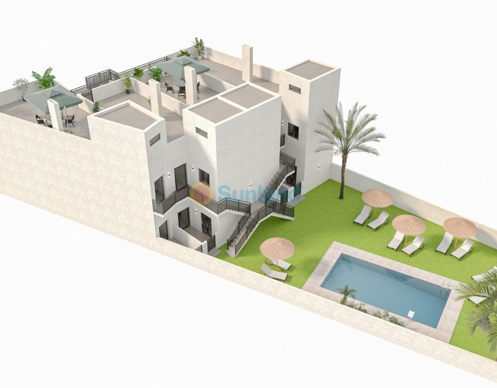 Viviendas de Obra Nueva en La Canalosa con Piscina Comunitaria Tranquilidad Rural con Comodidades Modernas Bienvenido a este exclusivo residencial en La Canalosa, una encantadora pedanía de Hondón de las Nieves, Alicante. Esta promoción de obra nueva ofrece un estilo de vida sereno rodeado de naturaleza, con todas las comodidades necesarias para disfrutar del día a día. Con un total de 8 viviendas de 2 dormitorios y 1 baño, es la opción ideal para quienes buscan paz, confort y conexión con el entorno natural. Tipologías de Viviendas para Todos los Gustos Las plantas bajas cuentan con terrazas frontales y patios traseros, y tres de ellas ofrecen espacio para aparcar el coche dentro de la parcela privada. Las viviendas en planta alta disponen de solárium privado con trastero, ideales para disfrutar del sol durante todo el año y del excelente clima mediterráneo que caracteriza la zona. Calidades y Equipamiento Cada vivienda ha sido diseñada con un enfoque práctico y moderno: Preinstalación de aire acondicionado por conductos Puerta de entrada de seguridad Mueble de baño con espejo Carpintería exterior de calidad El residencial también cuenta con una piscina comunitaria rodeada de zonas ajardinadas, perfecta para relajarse y disfrutar en familia. Entorno Natural y Estilo de Vida Saludable La Canalosa es el destino ideal para quienes valoran un estilo de vida sencillo, saludable y rodeado de naturaleza. Sus paisajes rurales invitan a paseos al aire libre, rutas de senderismo, ciclismo o simplemente a disfrutar del silencio y la belleza del entorno. A pocos minutos, Hondón de las Nieves ofrece servicios adicionales, historia local y una reconocida tradición vinícola. Distancias a Puntos de Interés Colegio local: 0.1 km Pistas deportivas: 0.3 km Centro médico: 3 km Mercado central: 4 km Campo de golf: 16 km Centros comerciales: 17 km Elche: 26 km Alicante: 26 km Aeropuerto de Alicante-Elche: 33 km Playas de la Costa Blanca: 38 km Invierte en Bienestar y Naturaleza Esta promoción representa una excelente oportunidad de adquirir una vivienda moderna en un entorno rural único y bien comunicado. Perfecto como residencia principal, casa de vacaciones o inversión con gran potencial de revalorización. Contáctanos hoy mismo para agendar tu visita y descubrir tu nuevo hogar en La Canalosa.