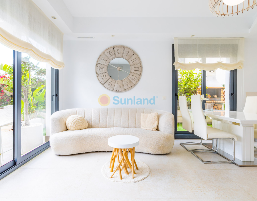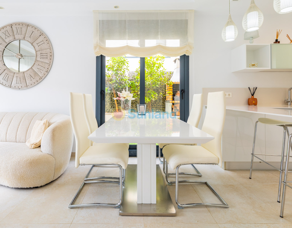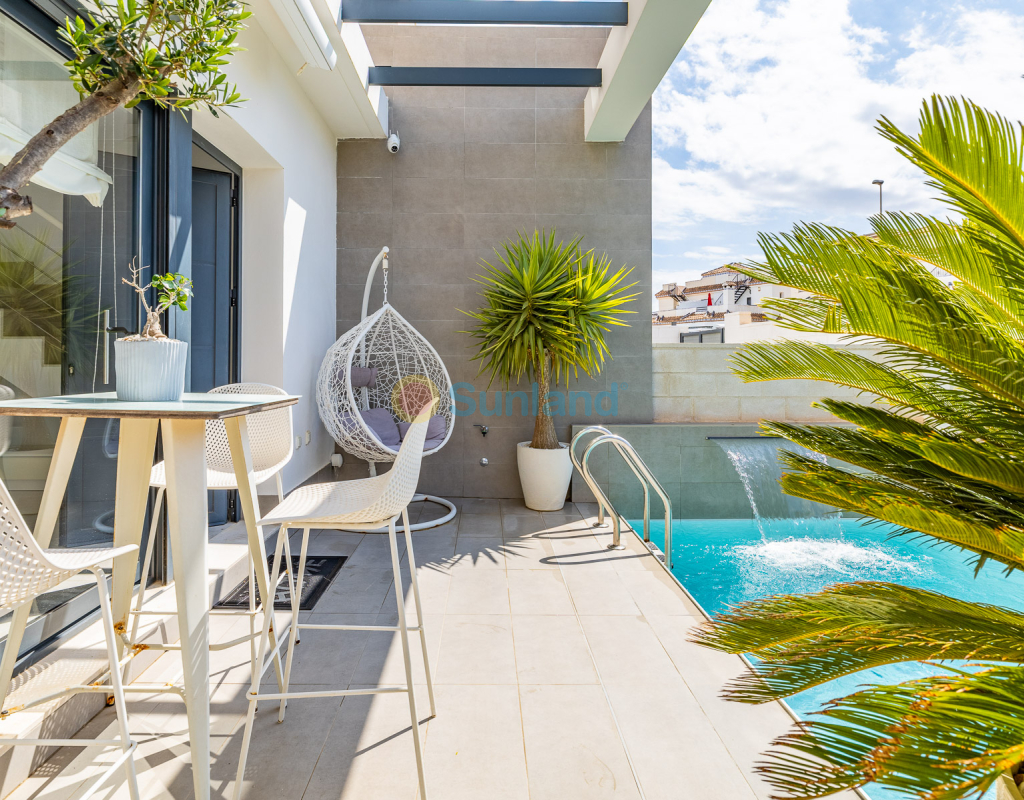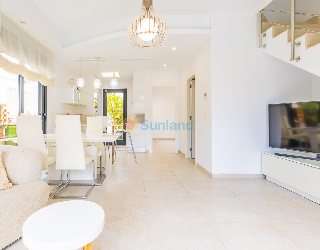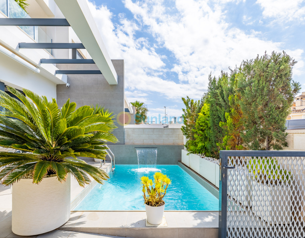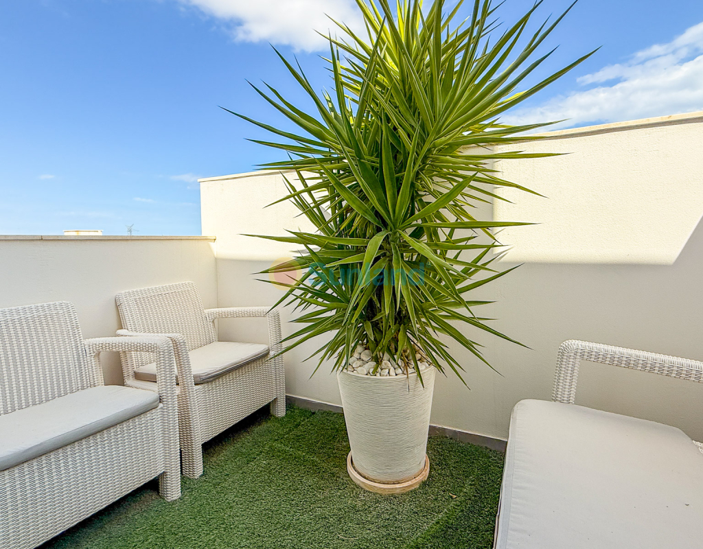 Adosado moderno con piscina privada y solárium en Pau 26, Orihuela Costa Ubicado en una zona residencial tranquila, este adosado de estilo contemporáneo ofrece comodidad, privacidad y excelentes espacios exteriores. Construido en 2020, cuenta con 76 m² distribuidos en varias plantas. Características: 3 dormitorios 2 baños completos + 1 aseo Cocina abierta Terraza privada Solárium con cocina exterior y barbacoa Piscina privada Plaza de aparcamiento Aire acondicionado Totalmente amueblado Orientación oeste Excelente oportunidad para quienes buscan una vivienda lista para entrar a vivir