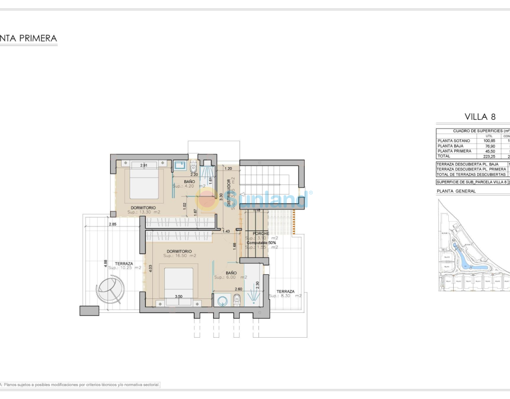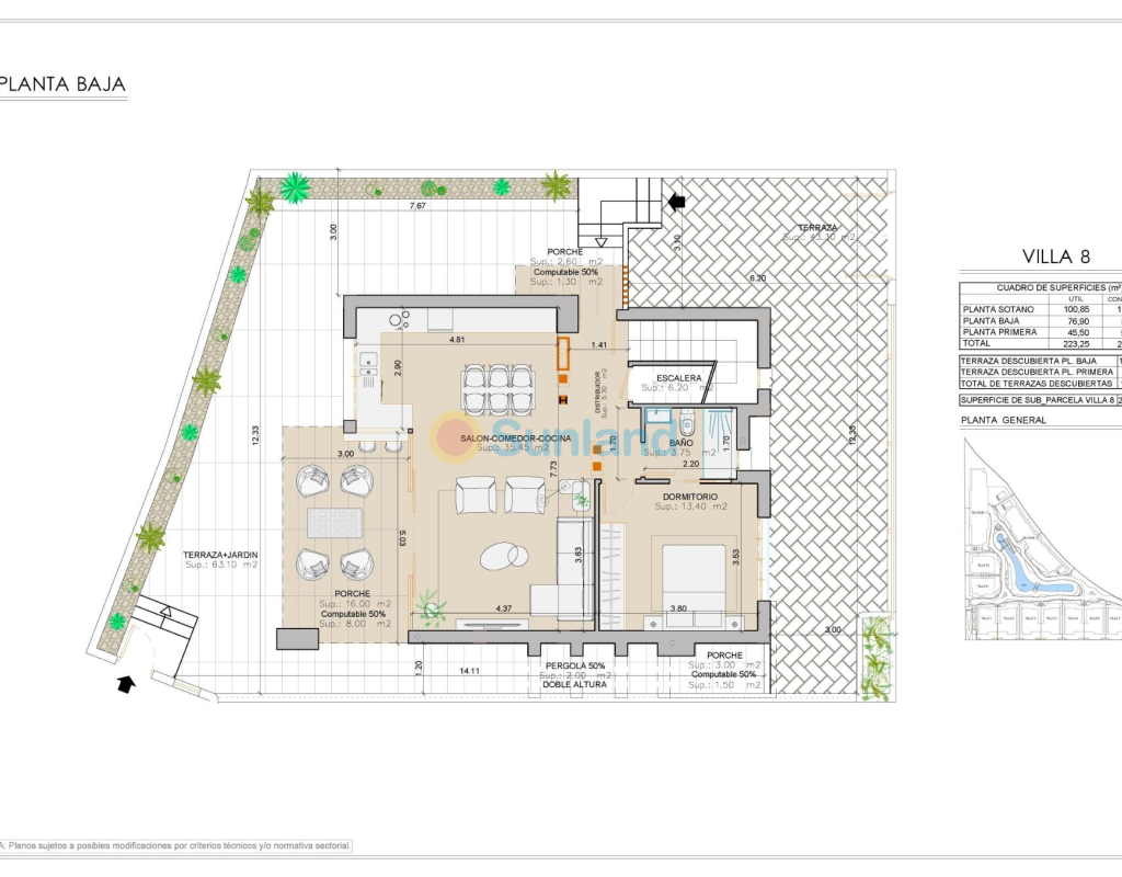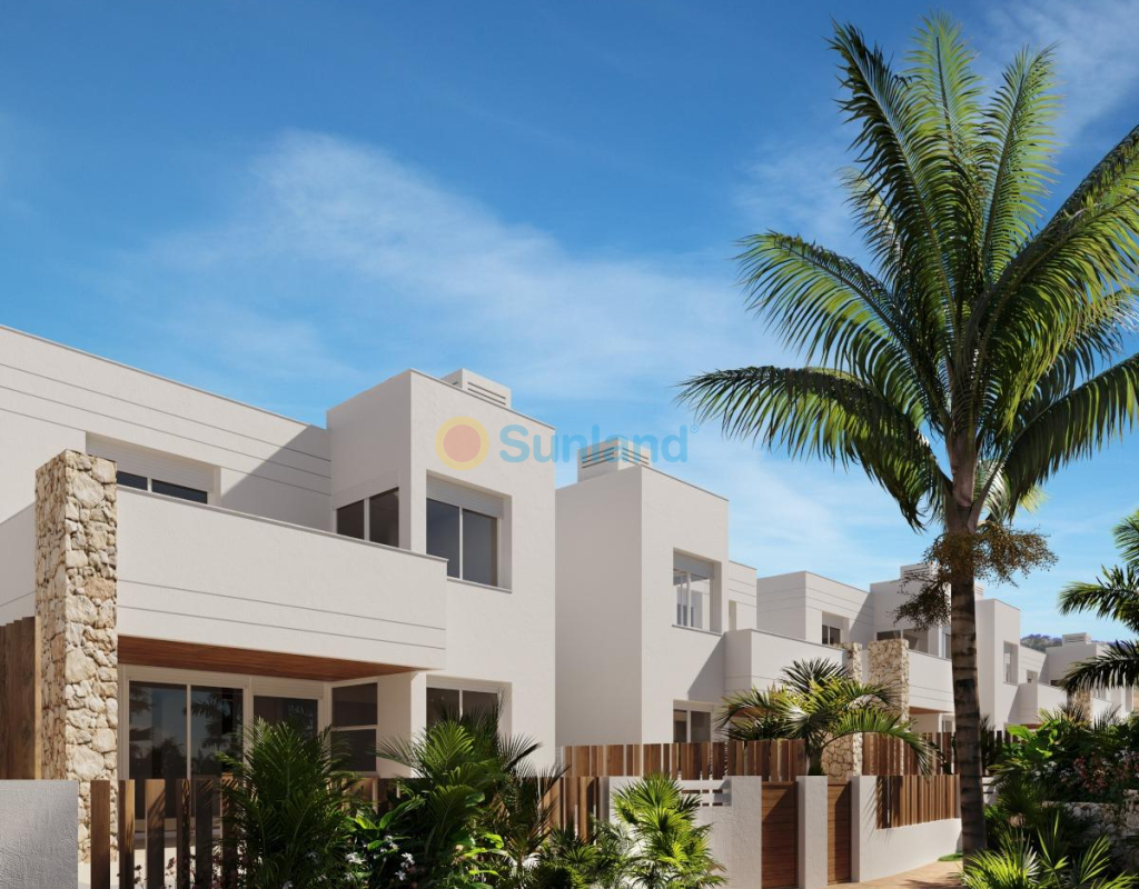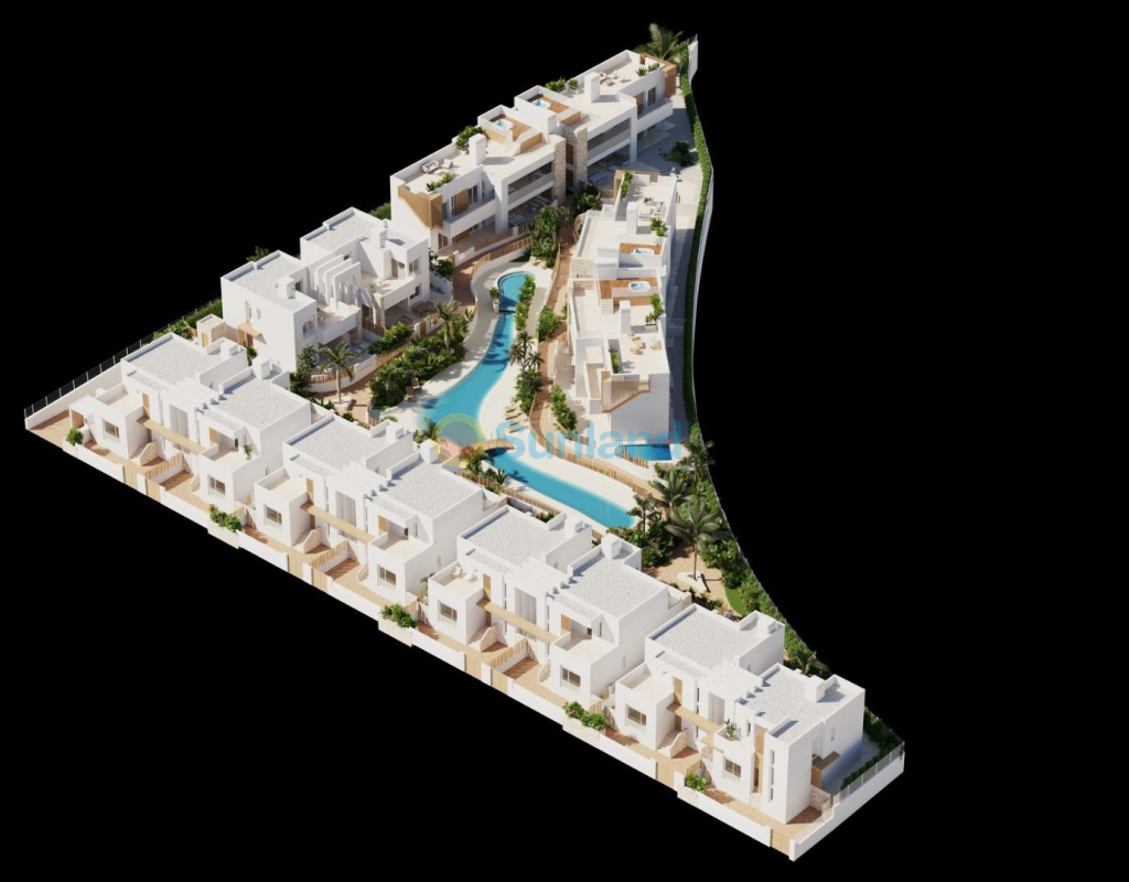 Villas y bungalows de nueva construcción a solo 250 metros de la playa en Mar de Pulpí Exclusivo proyecto residencial con villas y bungalows cerca del mar Descubra una excepcional promoción nueva situada a solo 250 metros de la playa de La Entrevista, en Mar de Pulpí, Almería. Este exclusivo complejo residencial ofrece dos opciones de vivienda diferenciadas: 10 villas independientes y 8 bungalows, cada uno de ellos diseñado para ofrecer amplios interiores y zonas exteriores de gran calidad. Situado en una de las zonas más tranquilas y pintorescas de la Costa de Almería, este proyecto es ideal para quienes buscan una vivienda moderna y confortable cerca del mar, rodeada de belleza natural y con todos los servicios esenciales. Villas de lujo con garajes subterráneos y terrazas privadas Las villas cuentan con tres amplios dormitorios, cada uno con su propio cuarto de baño en suite. En la planta baja se encuentra un generoso dormitorio, mientras que la planta superior incluye dos dormitorios más con acceso a terrazas privadas. El garaje subterráneo, conectado directamente a la villa, ofrece espacio para al menos dos vehículos y bicicletas, con iluminación y ventilación naturales, además de un generoso espacio de almacenamiento. Elegante bungalows con jardines privados o soláriums Elija entre bungalows en planta baja con jardines privados u opciones en la planta superior con soláriums privados. Cada bungalow incluye dos dormitorios, dos baños y una piscina privada o jacuzzi. También cuentan con ascensores, lo que mejora la accesibilidad y el confort. Los dormitorios principales incluyen vestidores y amplios armarios empotrados, mientras que las amplias terrazas con zona de bar hacen que el entretenimiento y el relax sean un placer. Confort, estilo y características premium Todas las viviendas de la promoción están equipadas con: Ventanas de doble acristalamiento con protección solar y rotura de puente térmico Calefacción eléctrica por suelo radiante en todos los baños Aire acondicionado (frío y calor) Persianas motorizadas Baños modernos con muebles suspendidos, espejos y mamparas de ducha Producción de agua caliente con sistemas aerotérmicos de bajo consumo La comunidad residencial también cuenta con una piscina comunitaria de varios niveles, que ofrece un espacio compartido para el descanso y el disfrute. Ubicación privilegiada en la Costa de Almería Situado a solo 250 m de la playa de arena y a solo 3 km de San Juan de los Terreros, los residentes pueden disfrutar de una amplia gama de servicios, como supermercados, restaurantes, tiendas y servicios esenciales. Distancias a puntos de interés: Playas de La Entrevista: 0,25 km San Juan de los Terreros: 3 km Campo de golf El Aguilón: 7 km Centro de Águilas y puerto deportivo: 12 km Aeropuerto de Murcia-Corvera: 95 km Aeropuerto de Almería: 115 km Asegúrese la casa de sus sueños junto al mar Tanto si elige una villa como un bungalow, esta urbanización ofrece una combinación perfecta de calidad, ubicación y estilo de vida. Póngase en contacto con nosotros hoy mismo para obtener más información o concertar una visita: su casa ideal en la costa le espera en Mar de Pulpí.