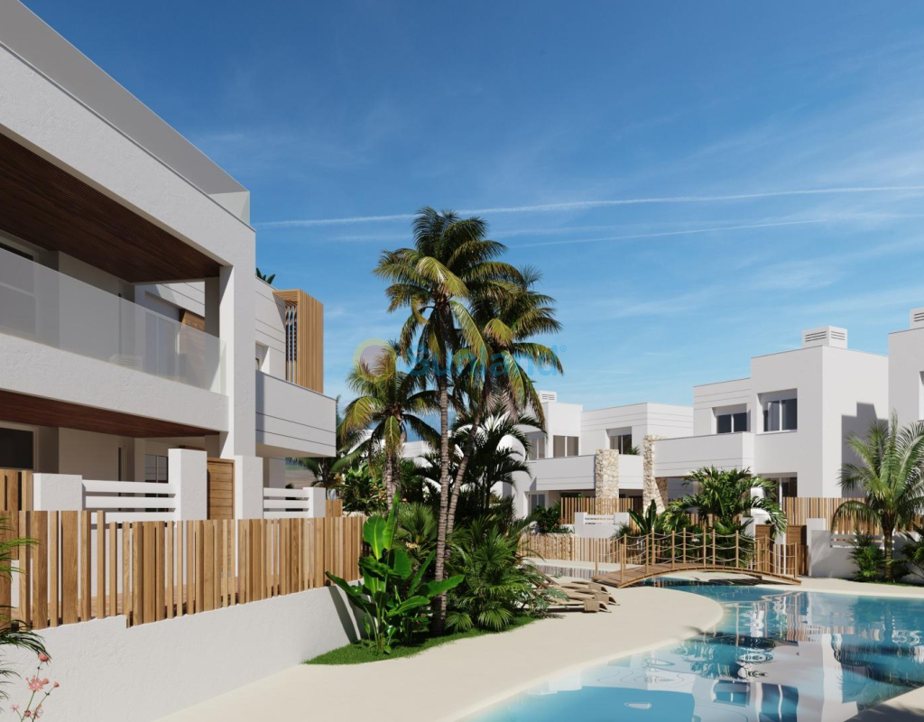 Villas y bungalows de nueva construcción a solo 250 metros de la playa en Mar de Pulpí Exclusivo proyecto residencial con villas y bungalows cerca del mar Descubra una excepcional promoción nueva situada a solo 250 metros de la playa de La Entrevista, en Mar de Pulpí, Almería. Este exclusivo complejo residencial ofrece dos opciones de vivienda diferenciadas: 10 villas independientes y 8 bungalows, cada uno de ellos diseñado para ofrecer amplios interiores y zonas exteriores de gran calidad. Situado en una de las zonas más tranquilas y pintorescas de la Costa de Almería, este proyecto es ideal para quienes buscan una vivienda moderna y confortable cerca del mar, rodeada de belleza natural y con todos los servicios esenciales. Villas de lujo con garajes subterráneos y terrazas privadas Las villas cuentan con tres amplios dormitorios, cada uno con su propio cuarto de baño en suite. En la planta baja se encuentra un generoso dormitorio, mientras que la planta superior incluye dos dormitorios más con acceso a terrazas privadas. El garaje subterráneo, conectado directamente a la villa, ofrece espacio para al menos dos vehículos y bicicletas, con iluminación y ventilación naturales, además de un generoso espacio de almacenamiento. Elegante bungalows con jardines privados o soláriums Elija entre bungalows en planta baja con jardines privados u opciones en la planta superior con soláriums privados. Cada bungalow incluye dos dormitorios, dos baños y una piscina privada o jacuzzi. También cuentan con ascensores, lo que mejora la accesibilidad y el confort. Los dormitorios principales incluyen vestidores y amplios armarios empotrados, mientras que las amplias terrazas con zona de bar hacen que el entretenimiento y el relax sean un placer. Confort, estilo y características premium Todas las viviendas de la promoción están equipadas con: Ventanas de doble acristalamiento con protección solar y rotura de puente térmico Calefacción eléctrica por suelo radiante en todos los baños Aire acondicionado (frío y calor) Persianas motorizadas Baños modernos con muebles suspendidos, espejos y mamparas de ducha Producción de agua caliente con sistemas aerotérmicos de bajo consumo La comunidad residencial también cuenta con una piscina comunitaria de varios niveles, que ofrece un espacio compartido para el descanso y el disfrute. Ubicación privilegiada en la Costa de Almería Situado a solo 250 m de la playa de arena y a solo 3 km de San Juan de los Terreros, los residentes pueden disfrutar de una amplia gama de servicios, como supermercados, restaurantes, tiendas y servicios esenciales. Distancias a puntos de interés: Playas de La Entrevista: 0,25 km San Juan de los Terreros: 3 km Campo de golf El Aguilón: 7 km Centro de Águilas y puerto deportivo: 12 km Aeropuerto de Murcia-Corvera: 95 km Aeropuerto de Almería: 115 km Asegúrese la casa de sus sueños junto al mar Tanto si elige una villa como un bungalow, esta urbanización ofrece una combinación perfecta de calidad, ubicación y estilo de vida. Póngase en contacto con nosotros hoy mismo para obtener más información o concertar una visita: su casa ideal en la costa le espera en Mar de Pulpí.